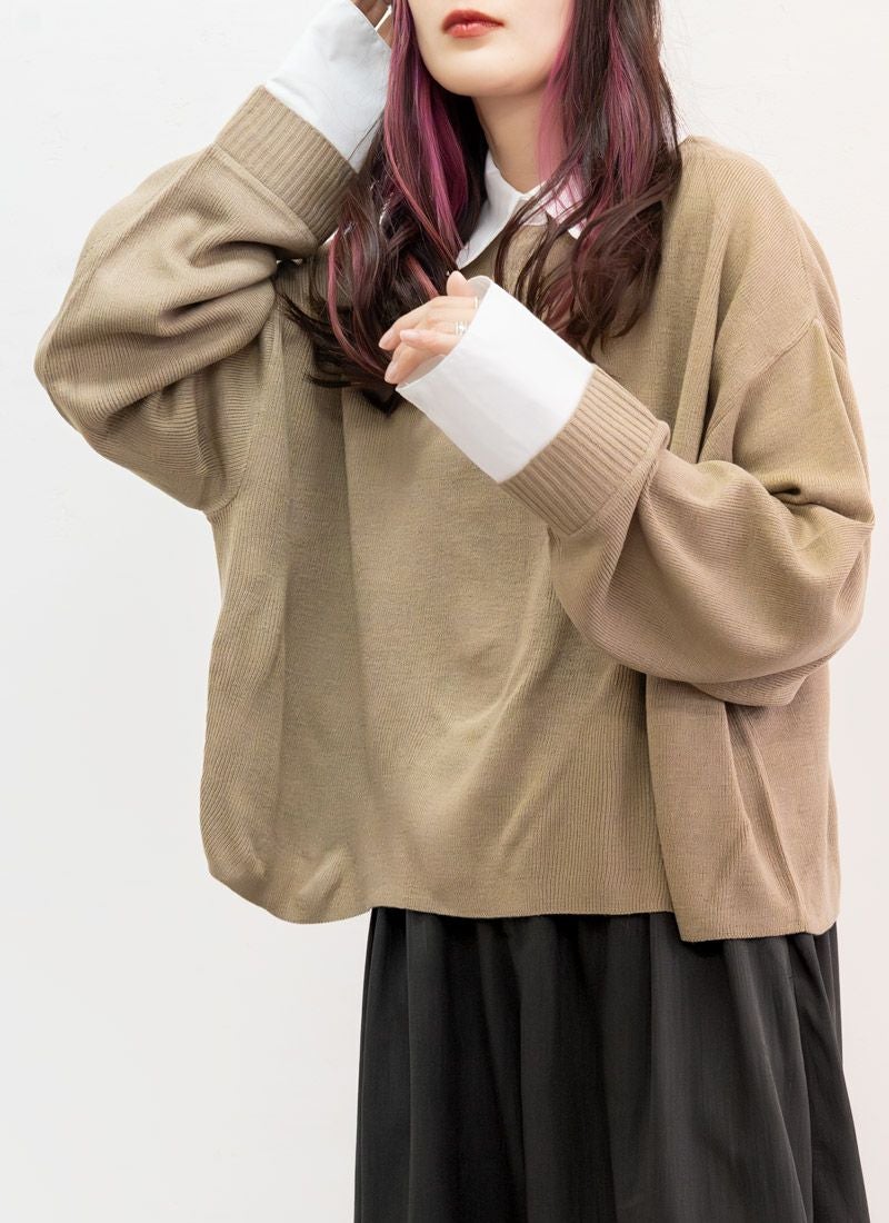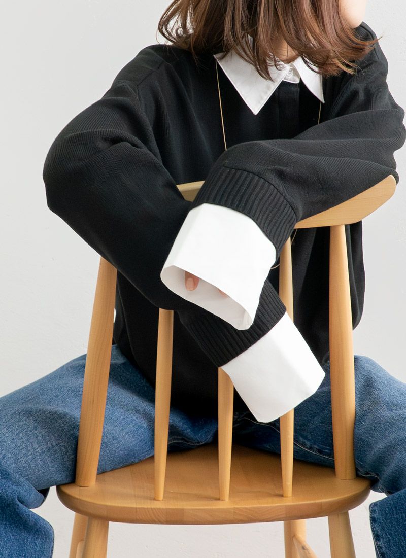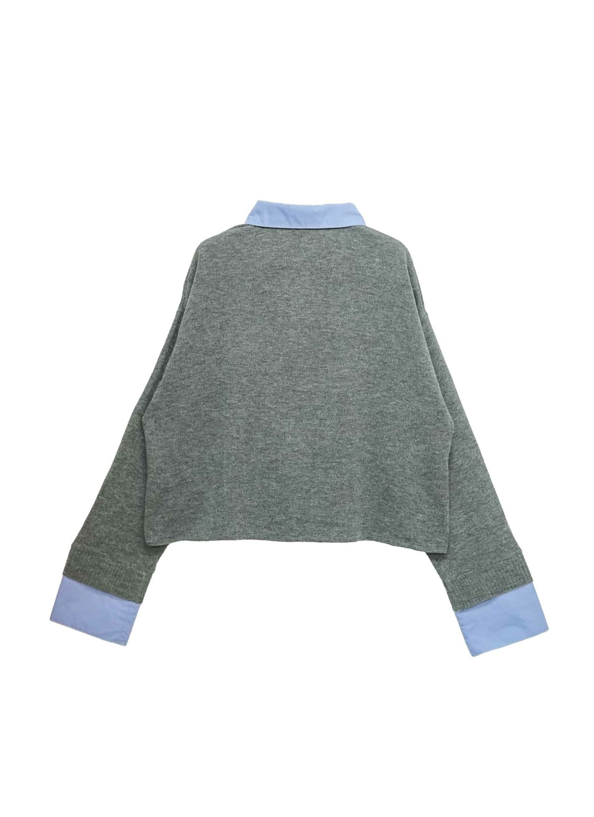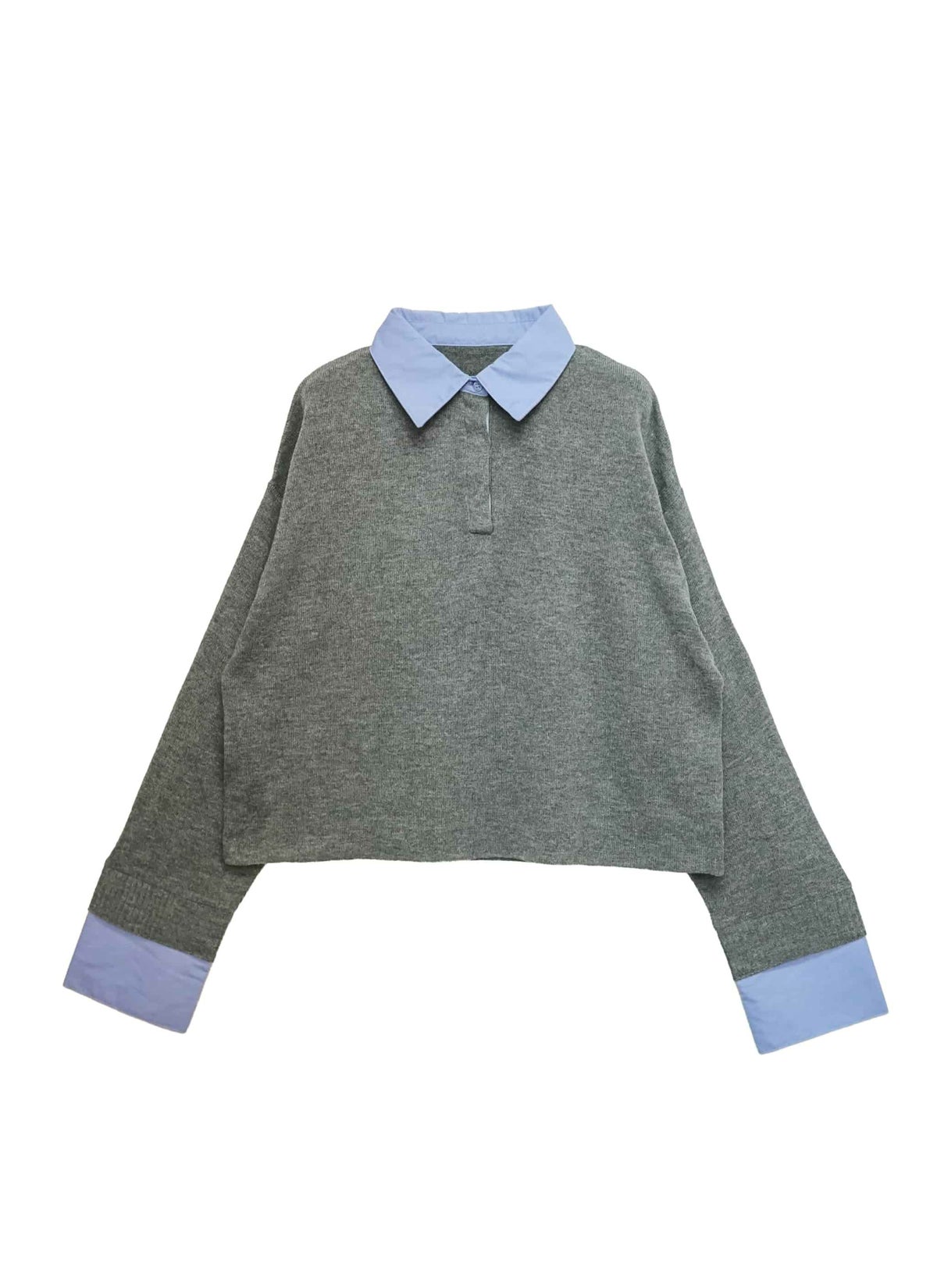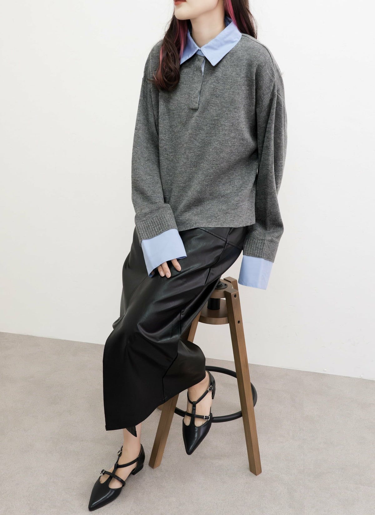revoam【シャツ生地の襟をレイヤードしたニットポロ】 【20%OFF】衿付きポロニット