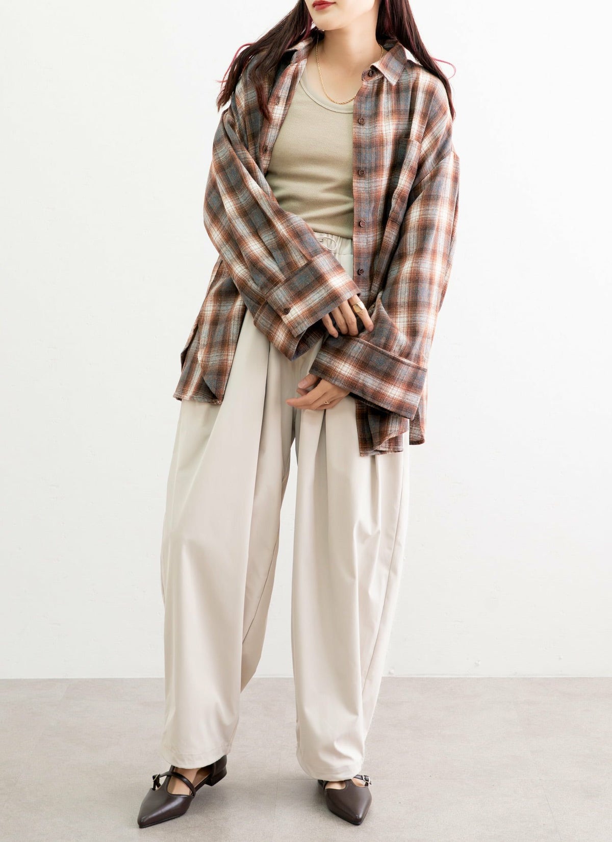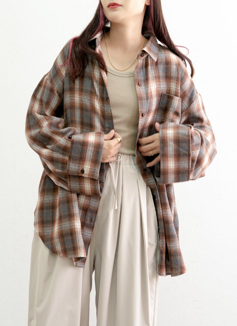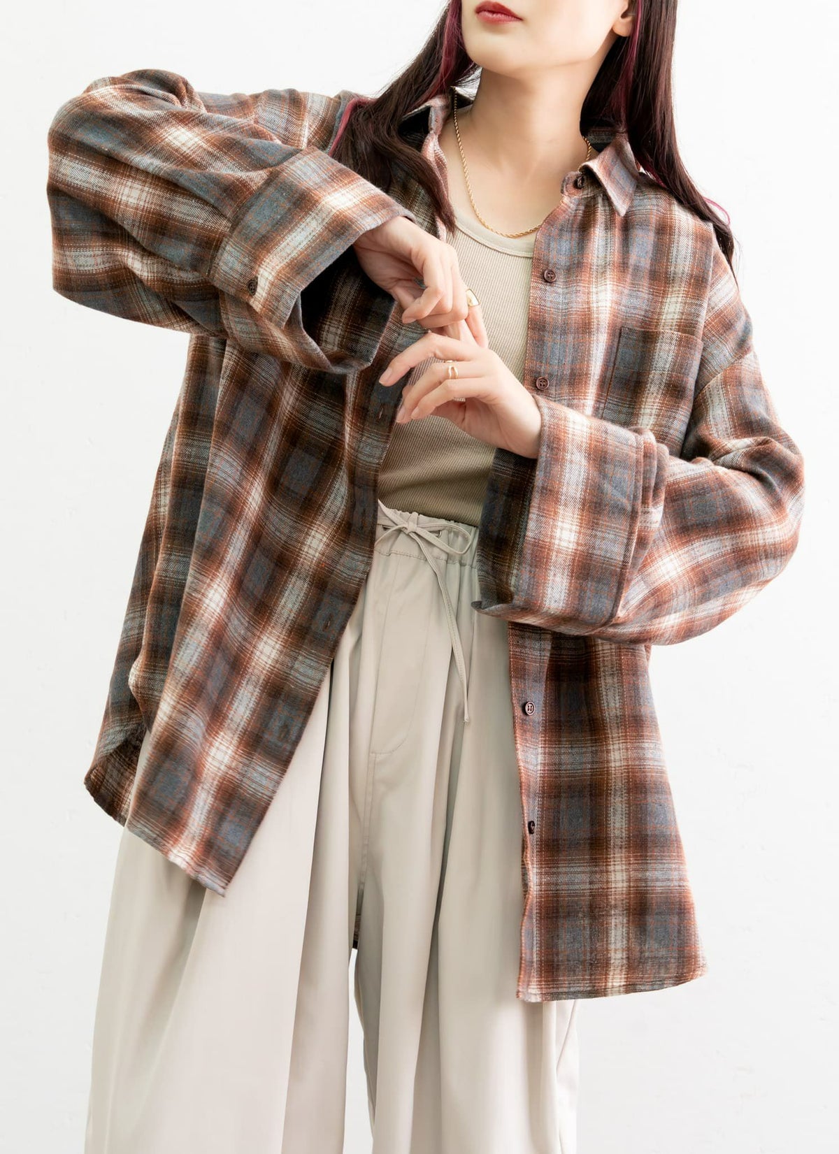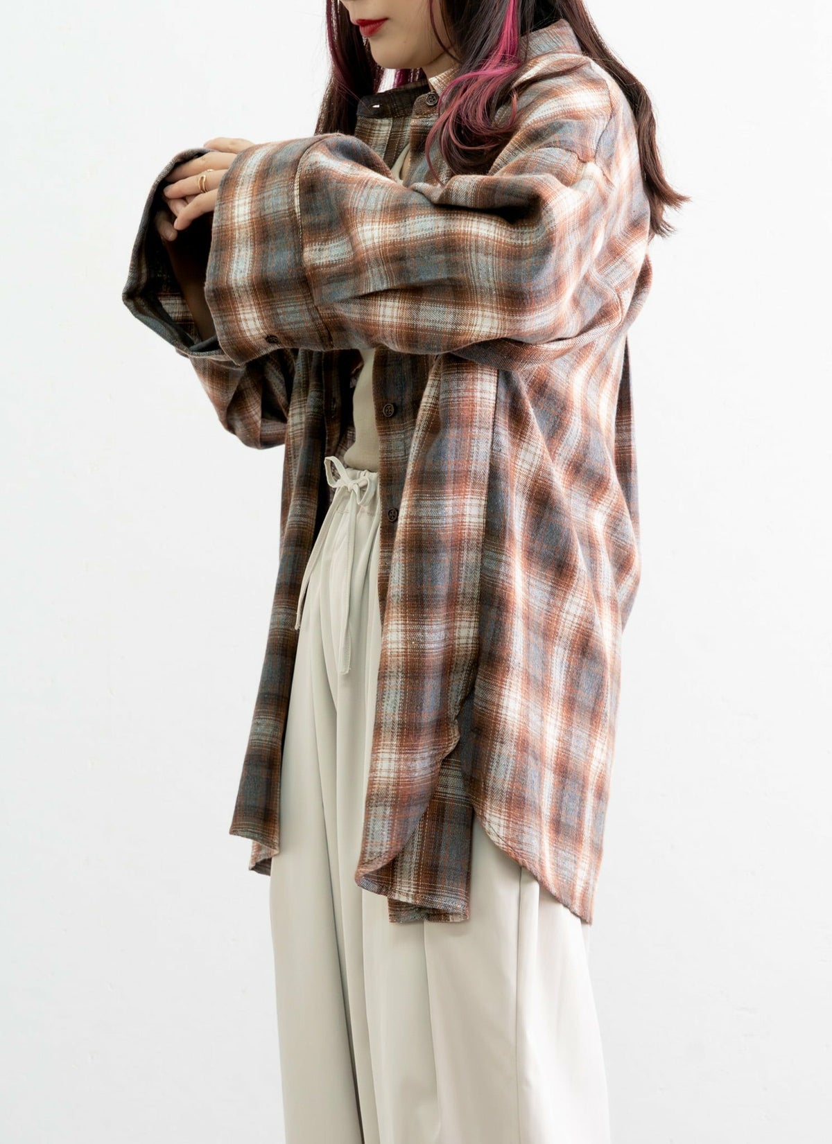 revoam【ゆったりと広がるワイドスリーブがポイントのチェックシャツ】 【10%OFF】ワイドスリーブチェックシャツ