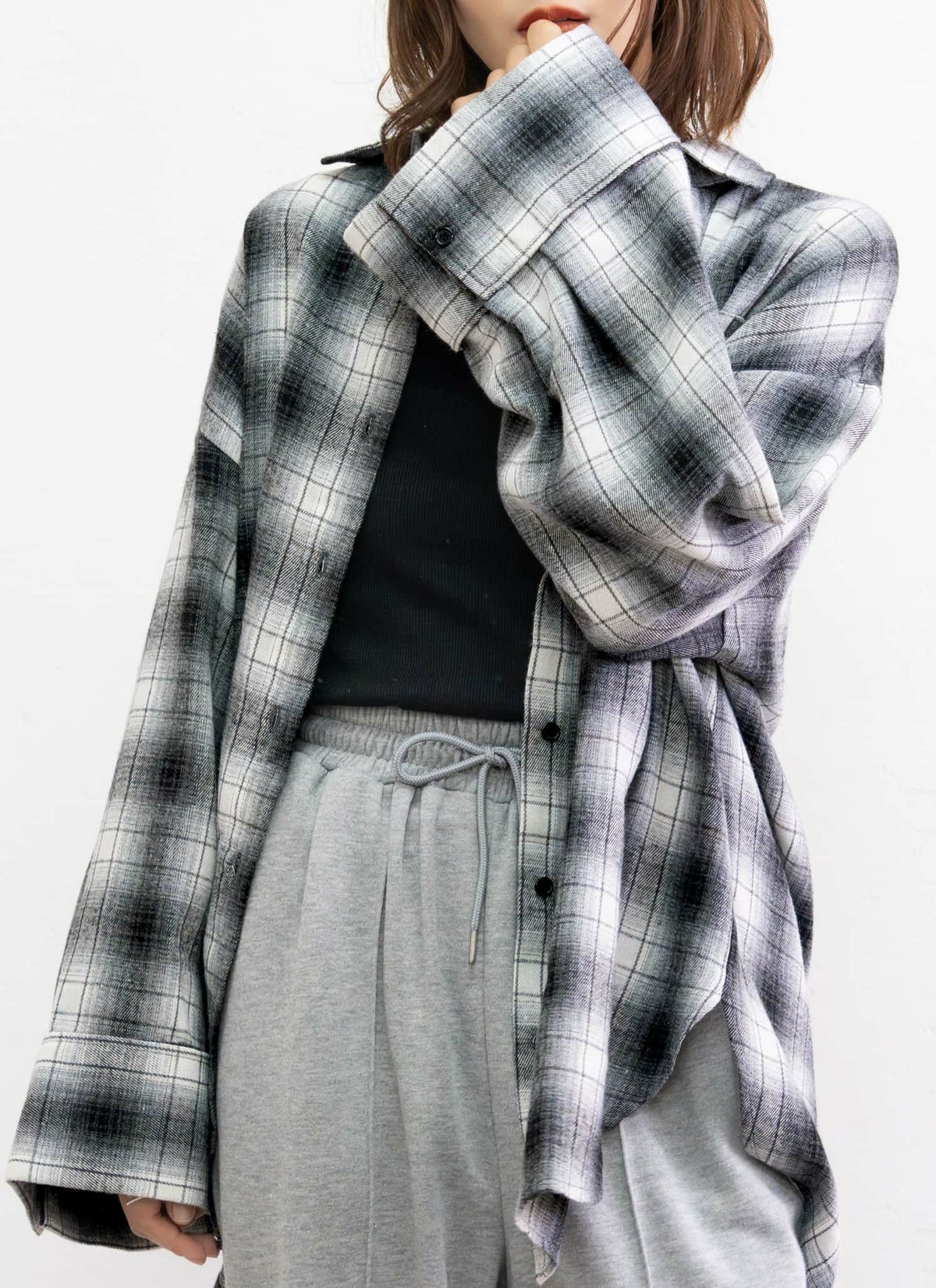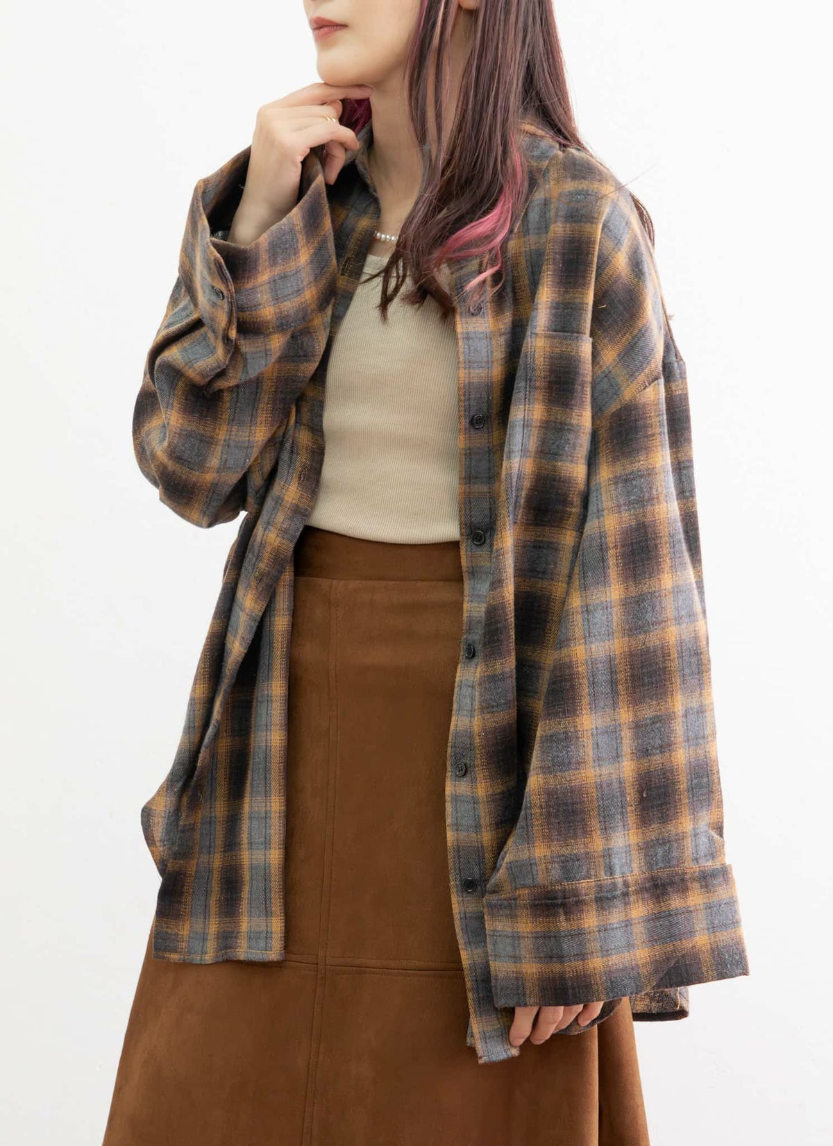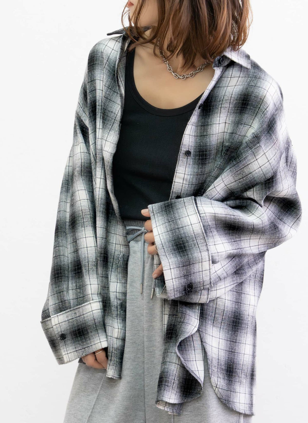 revoam【ゆったりと広がるワイドスリーブがポイントのチェックシャツ】 【10%OFF】ワイドスリーブチェックシャツ