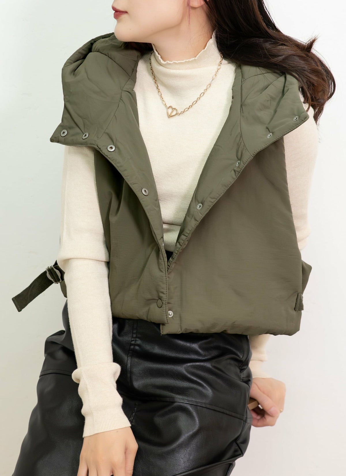 revoam【軽くて暖かい中綿ベスト】 【10%OFF】中綿フーディクロップドベスト
