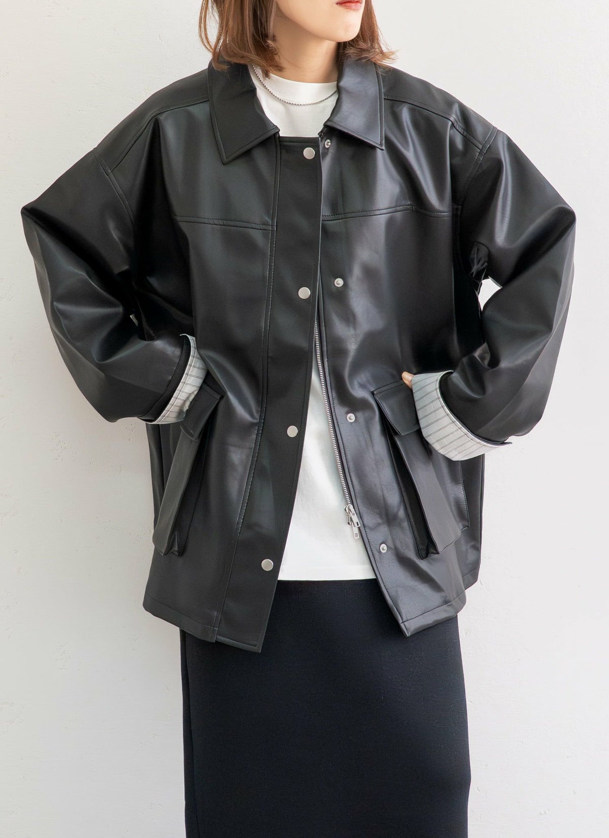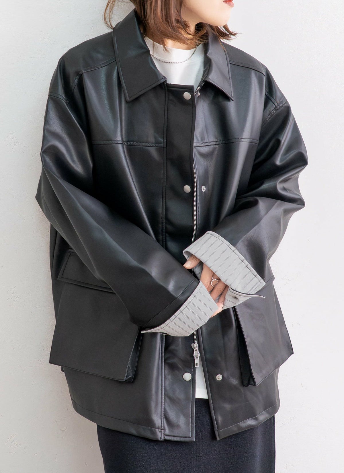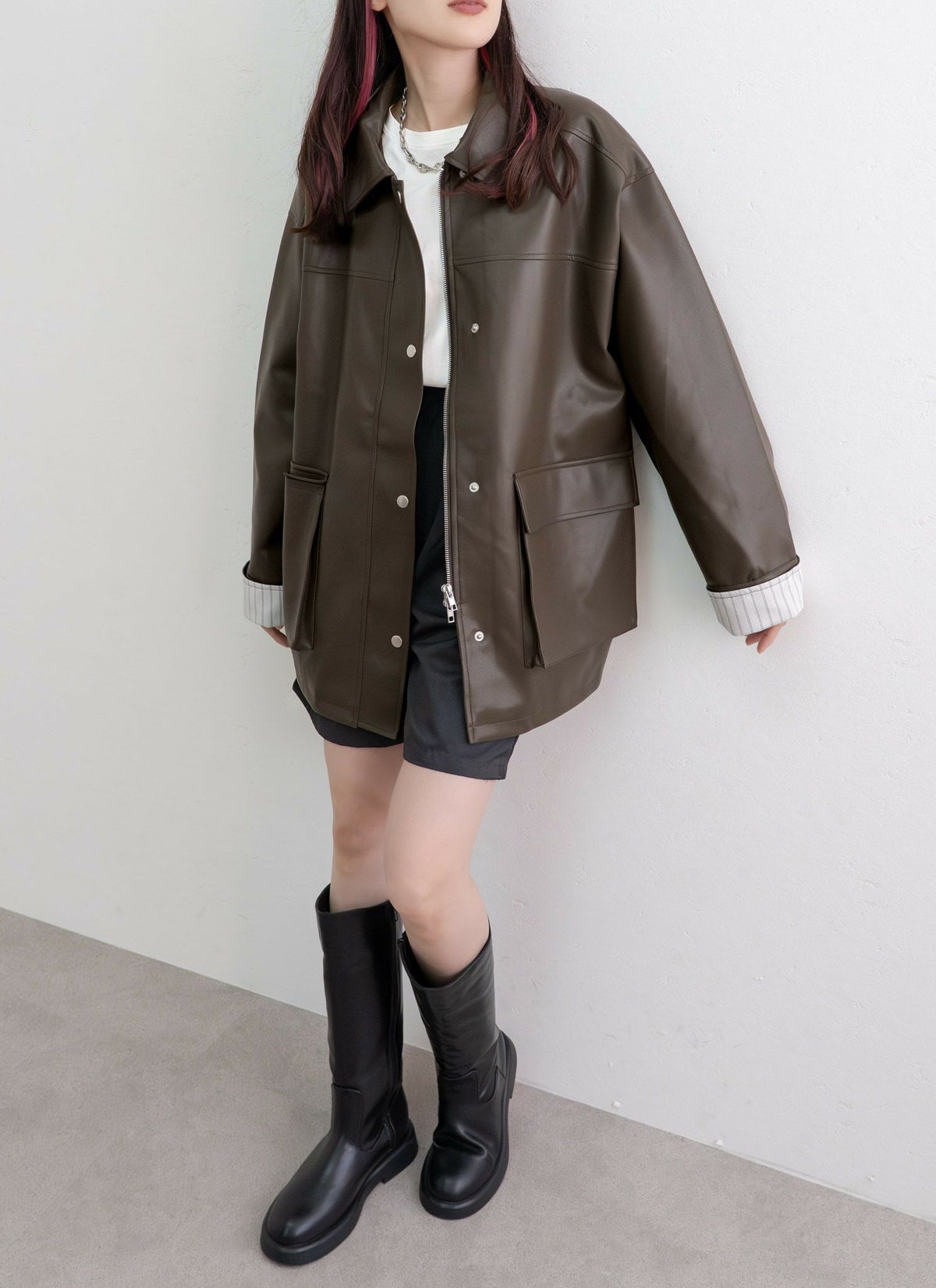 】 【10%OFF】フェイクレザーミドルカバーオール