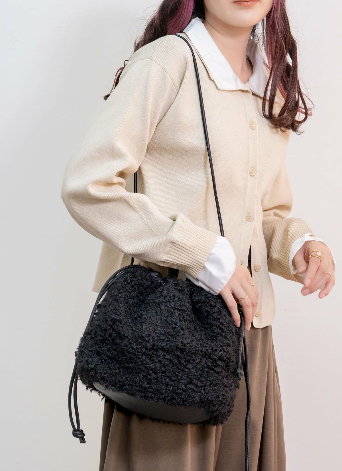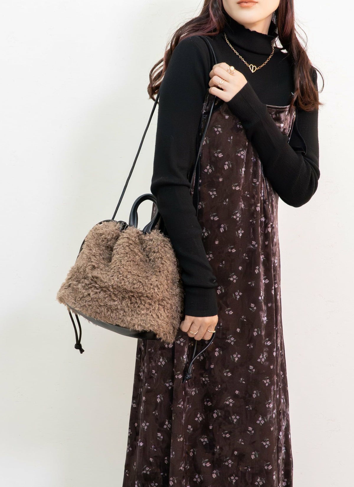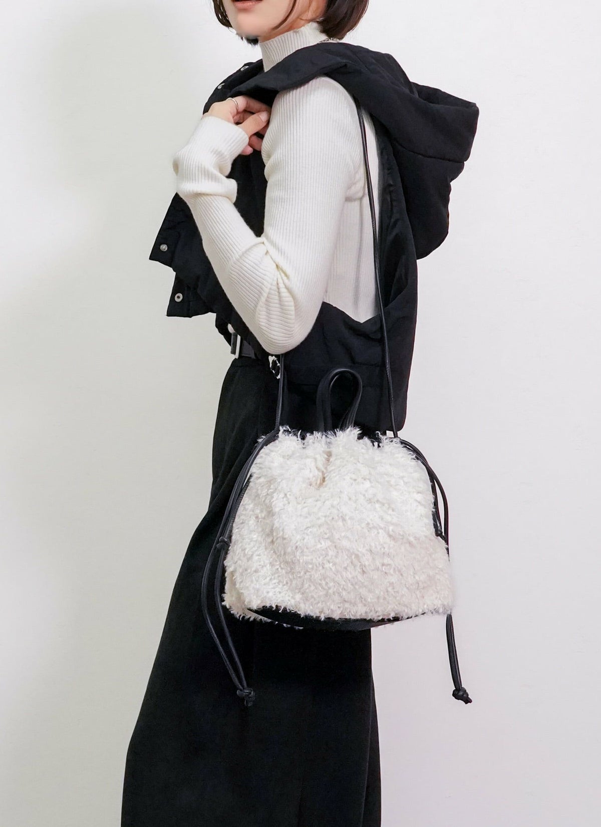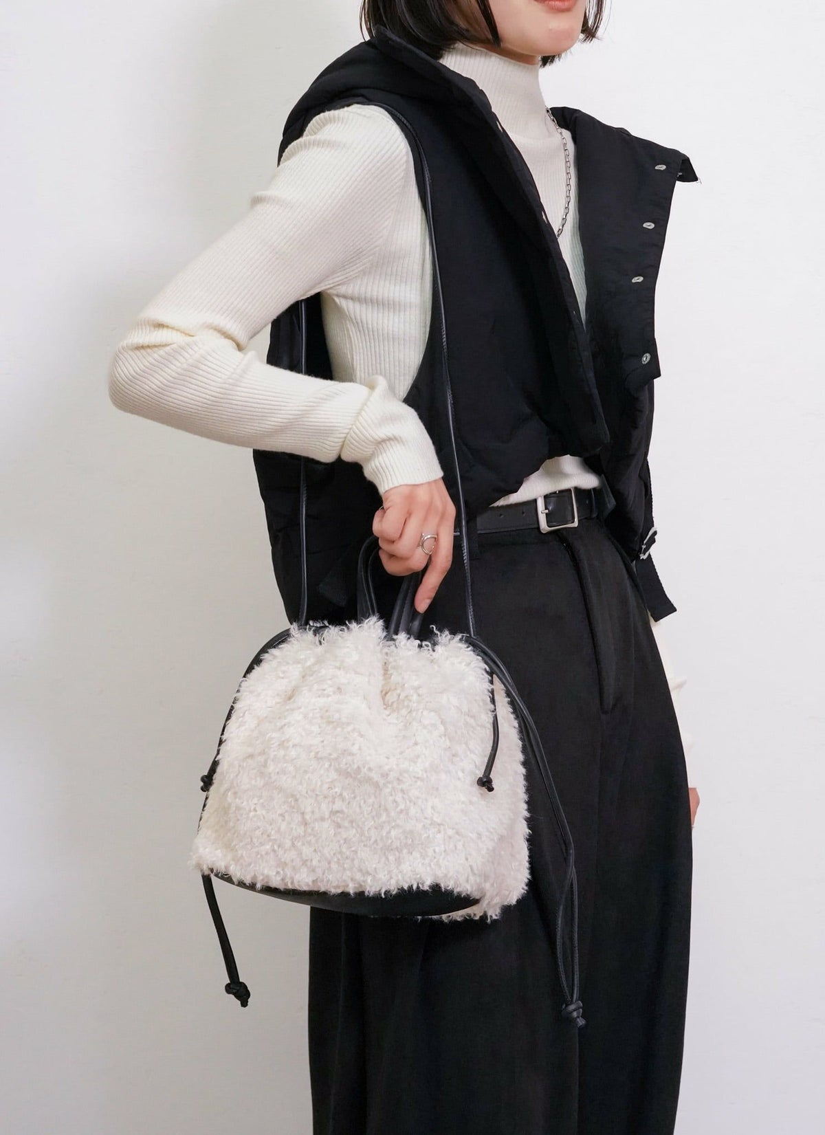 revoam【ふわふわのプードルファーが存在感たっぷりの巾着型ポシェット】 【10%OFF】プードルファー巾着ポシェット