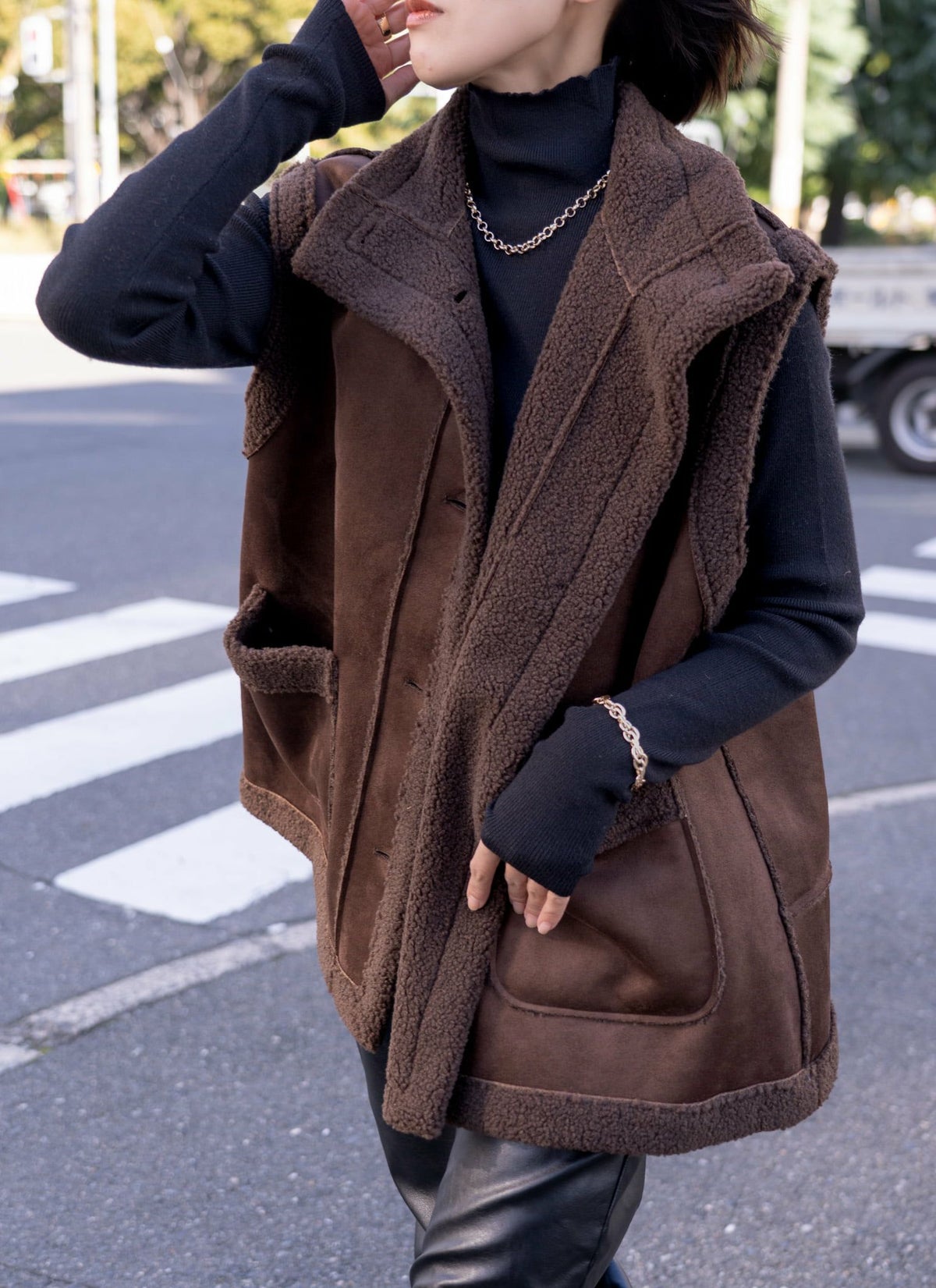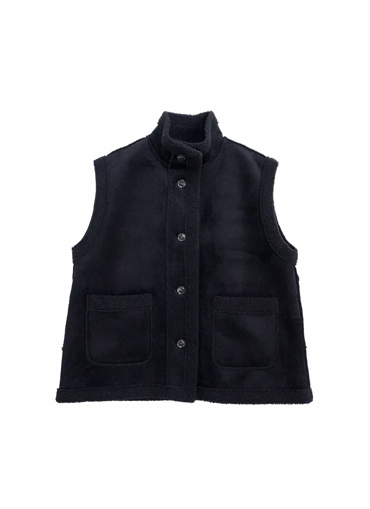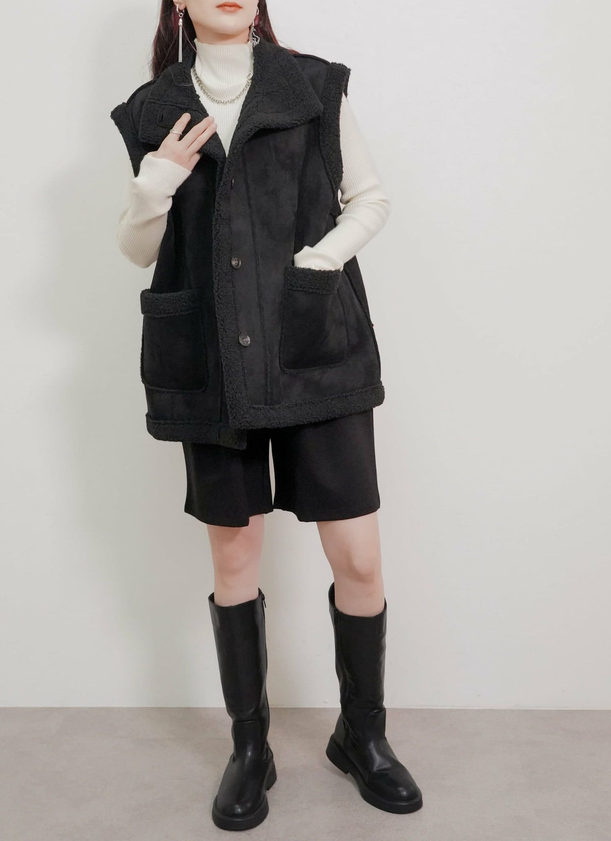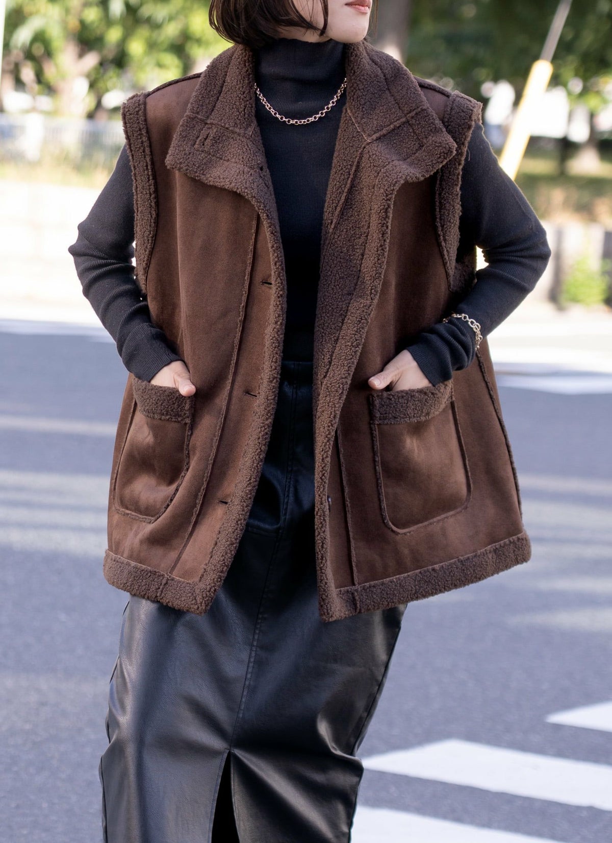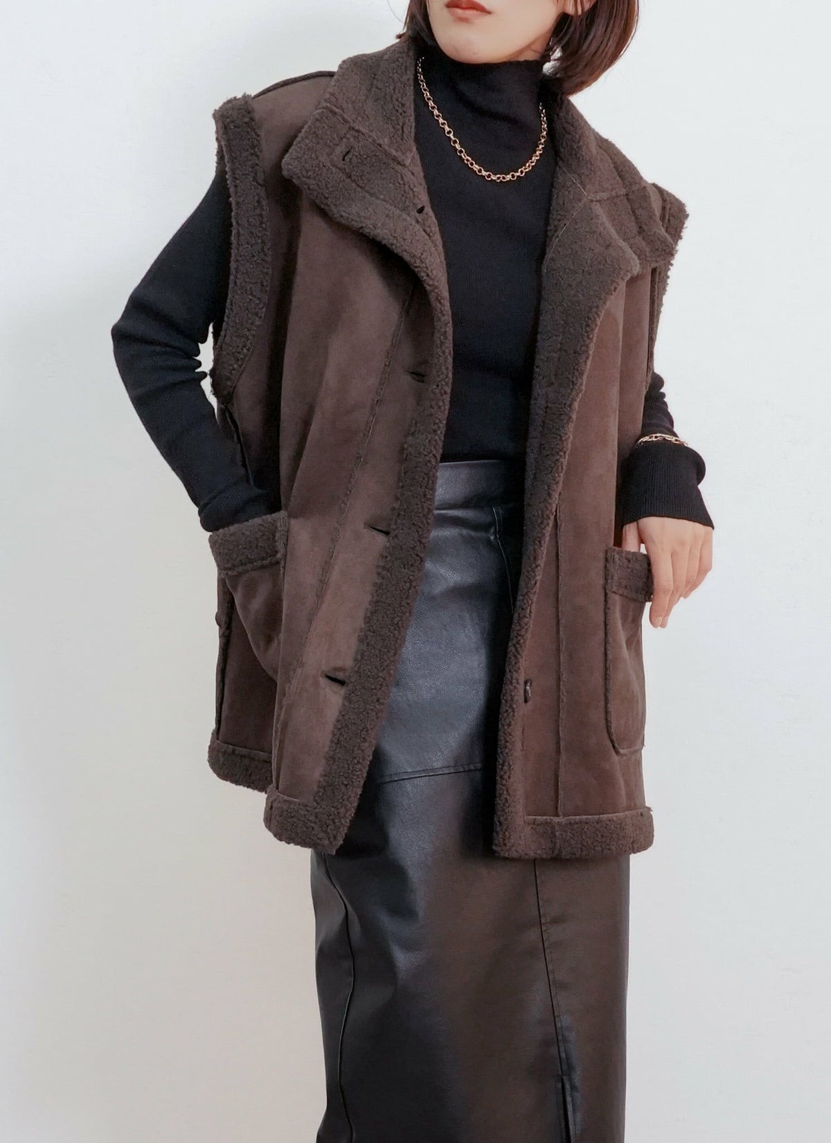 revoam【ボリューム感たっぷりなシーズンライクなムートンベスト】 【10%OFF】フェイクムートンスタンドベスト