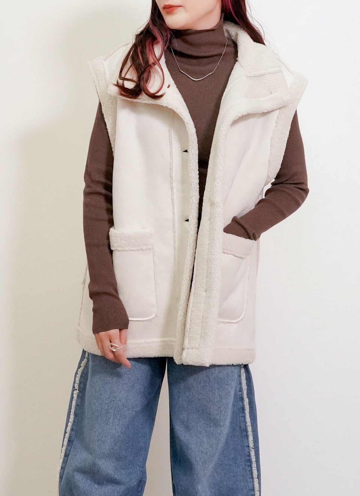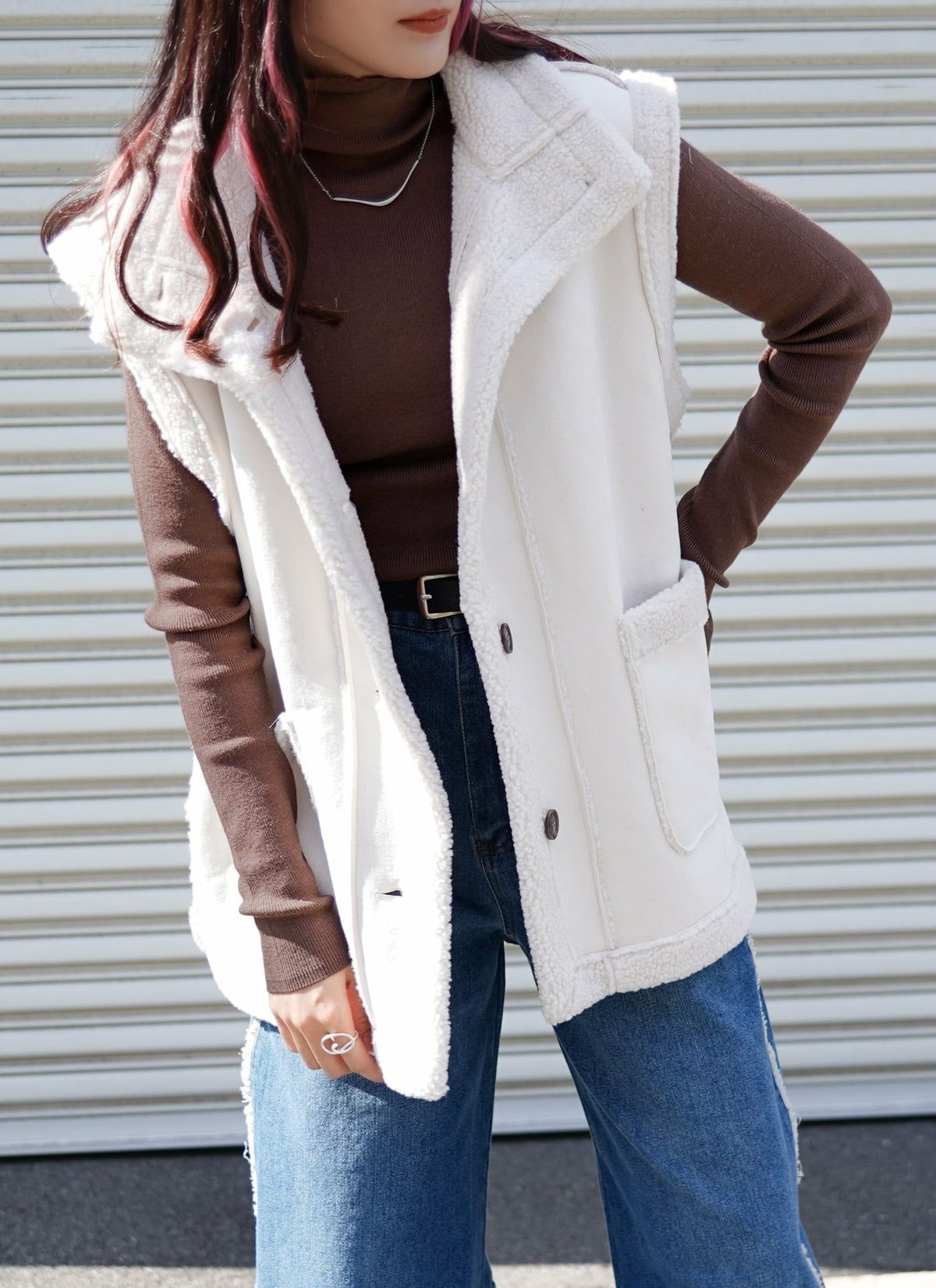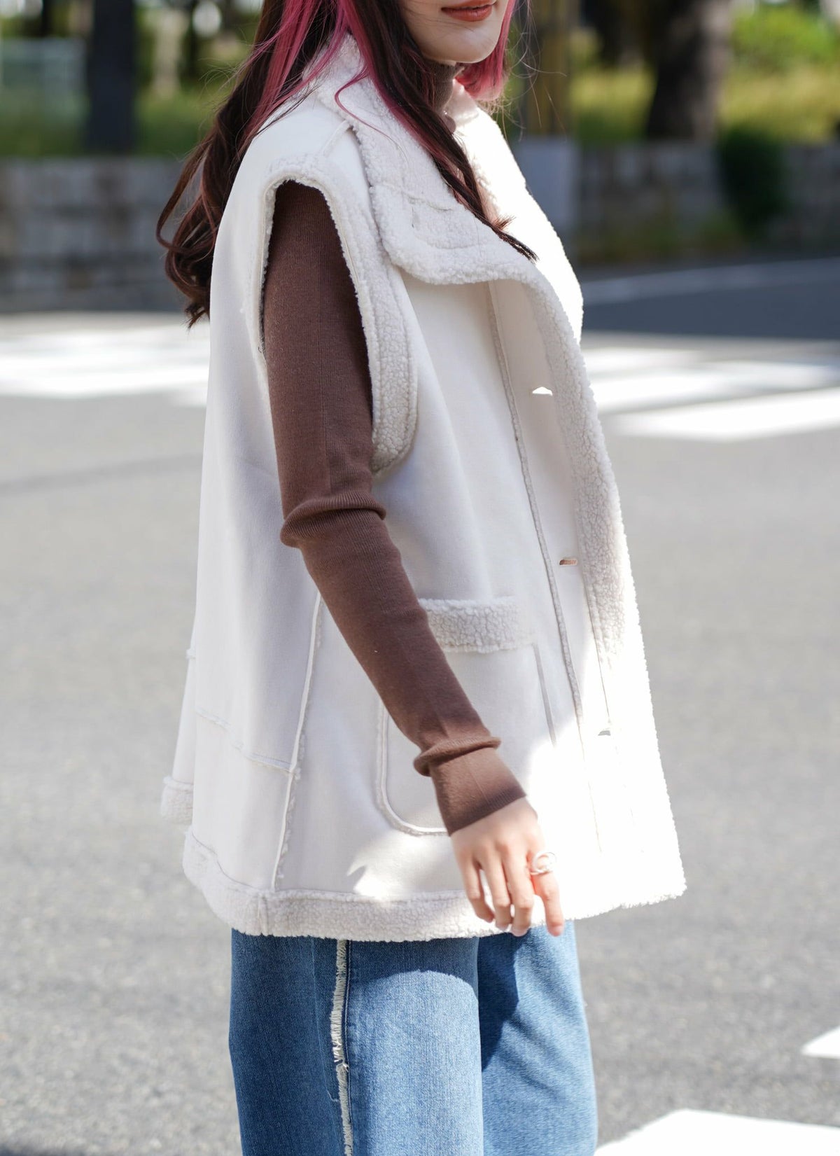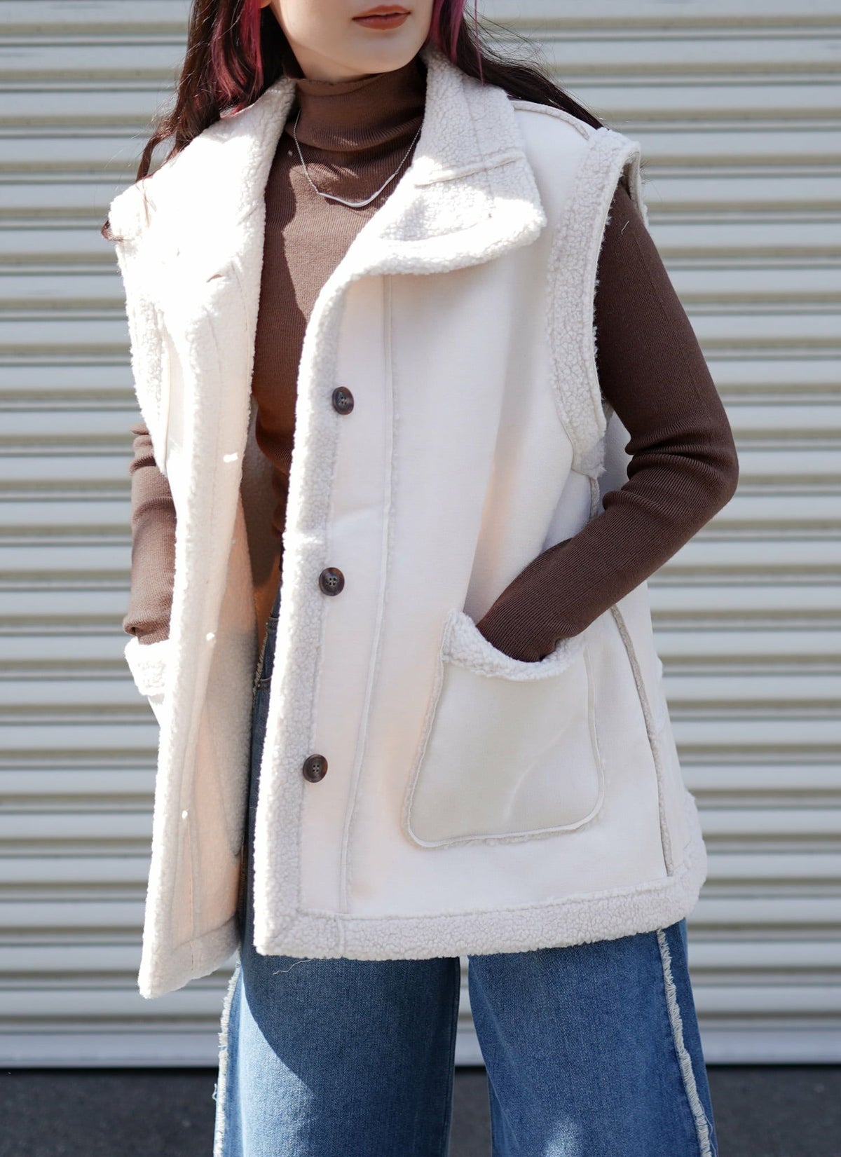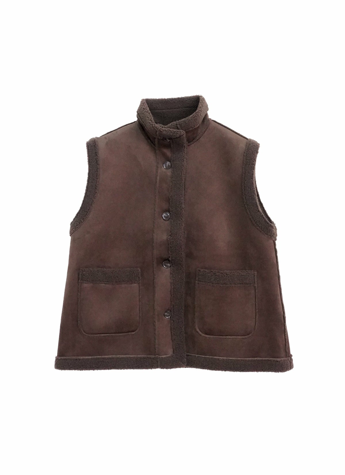 revoam【ボリューム感たっぷりなシーズンライクなムートンベスト】 【10%OFF】フェイクムートンスタンドベスト