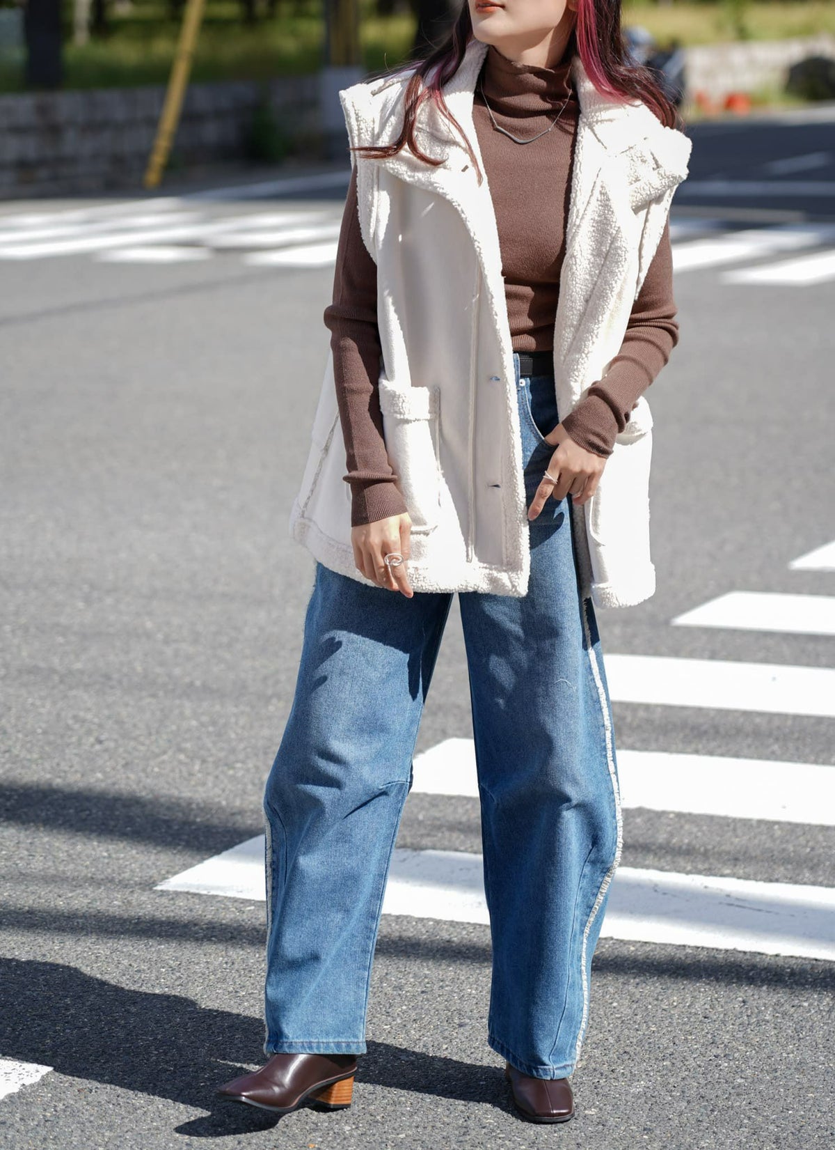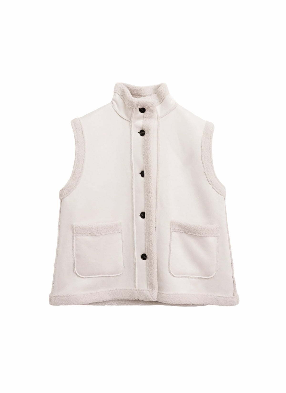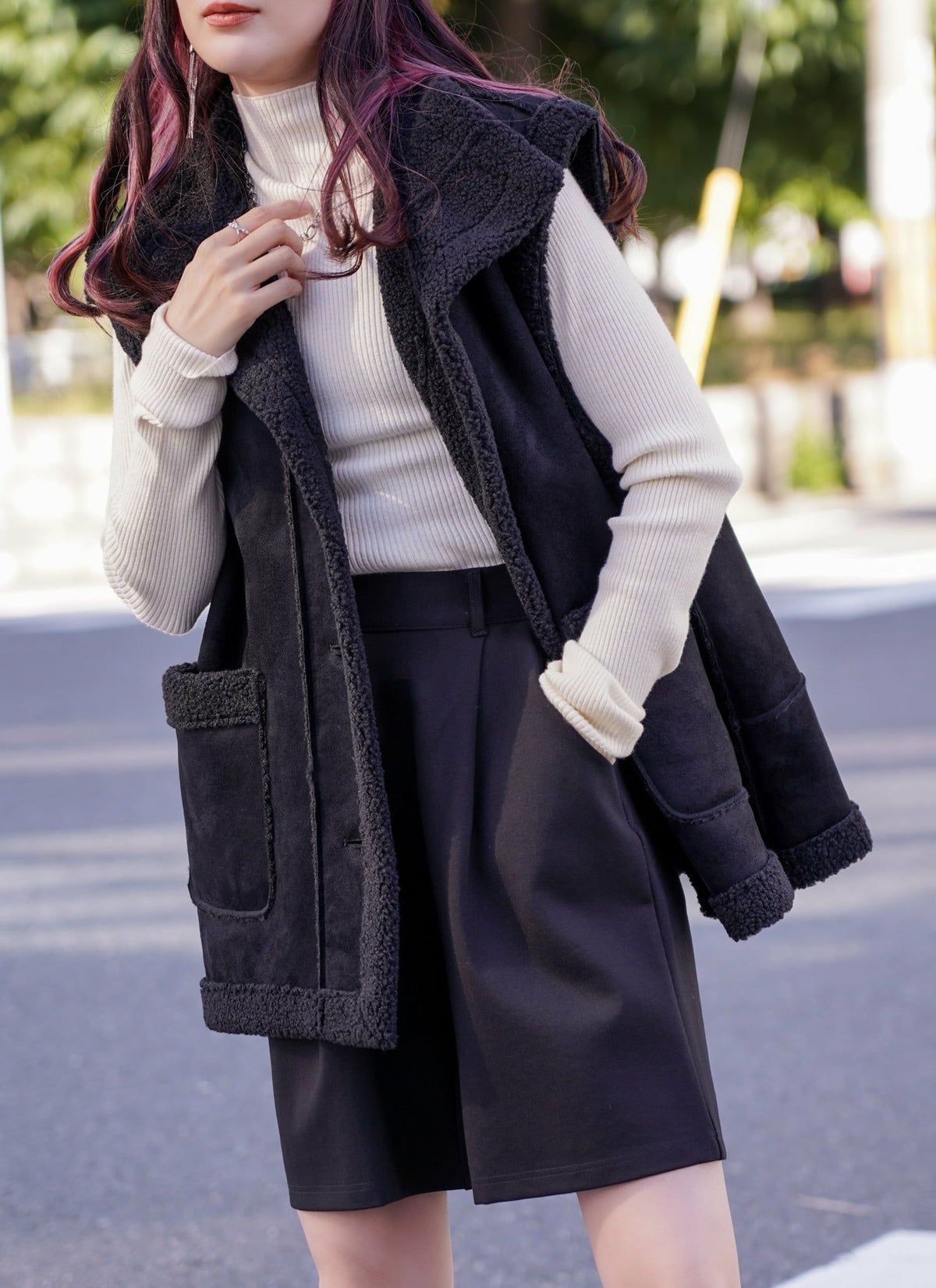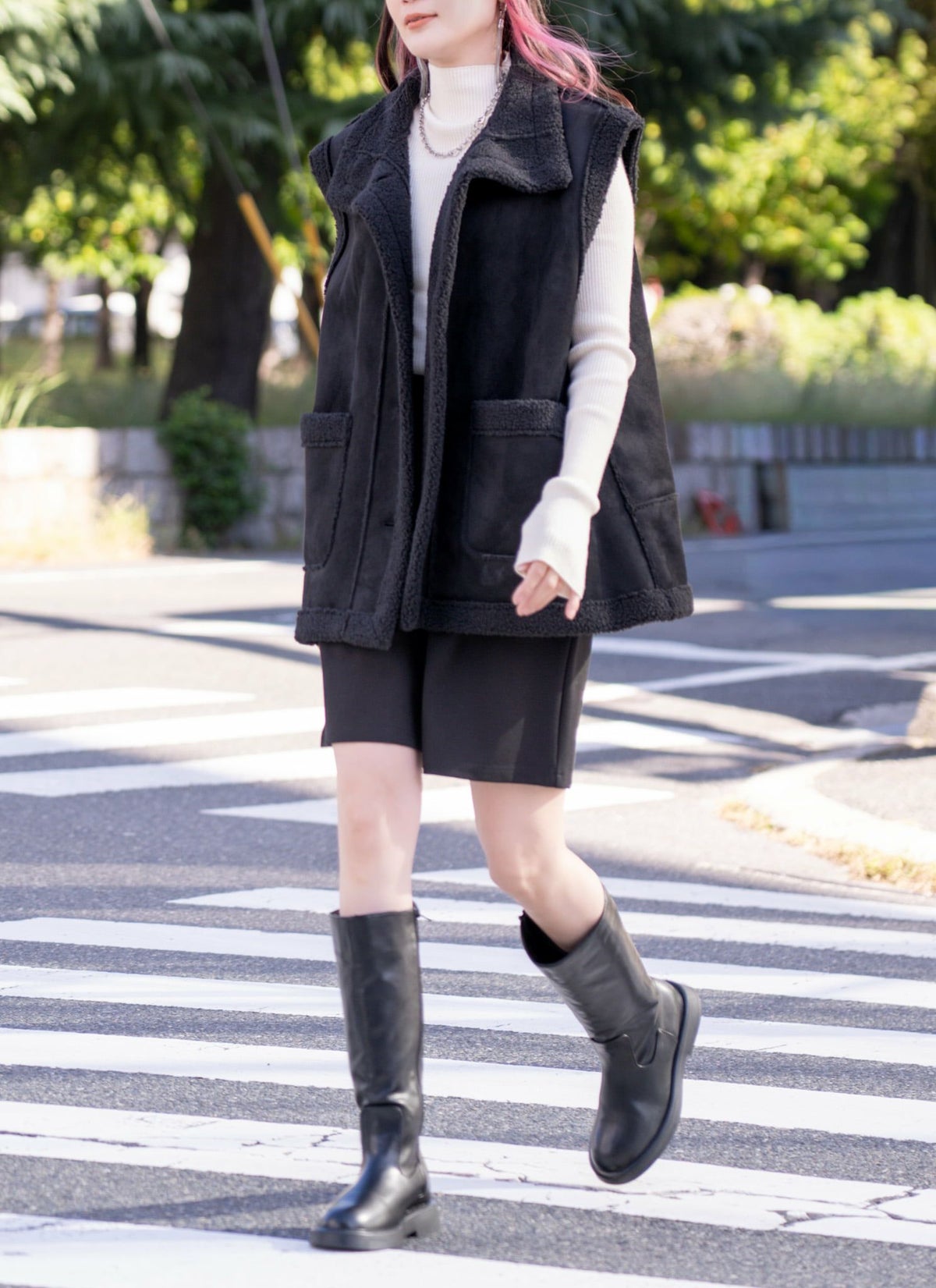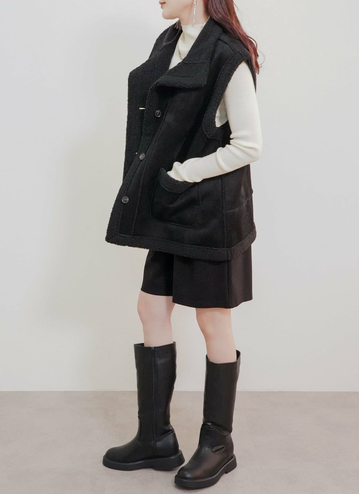 revoam【ボリューム感たっぷりなシーズンライクなムートンベスト】 【10%OFF】フェイクムートンスタンドベスト