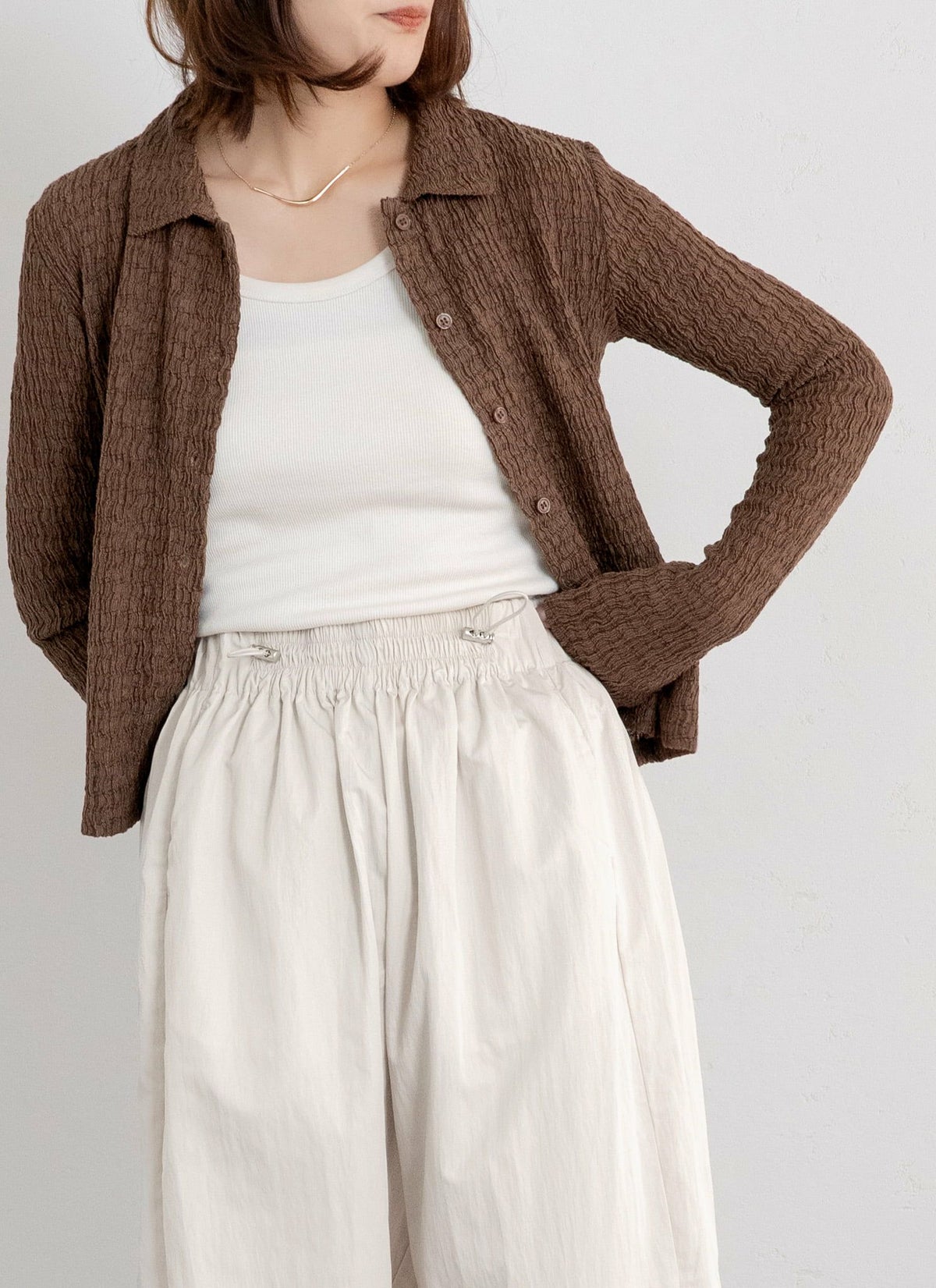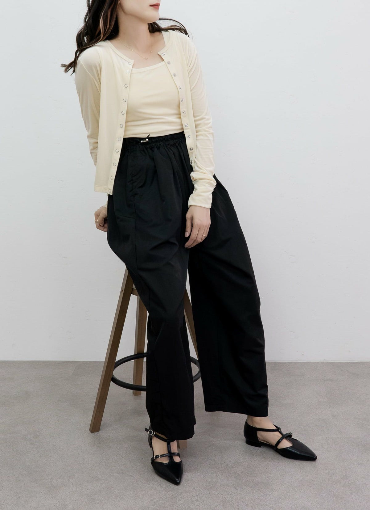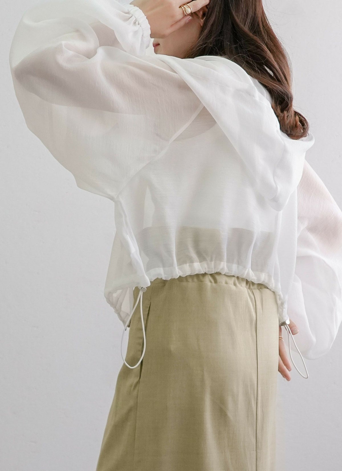 revoam【ソフトな肌触りで、シワになりにくいショート丈マンパ】 【10%OFF】裾ドロストショート丈シアーマンパ