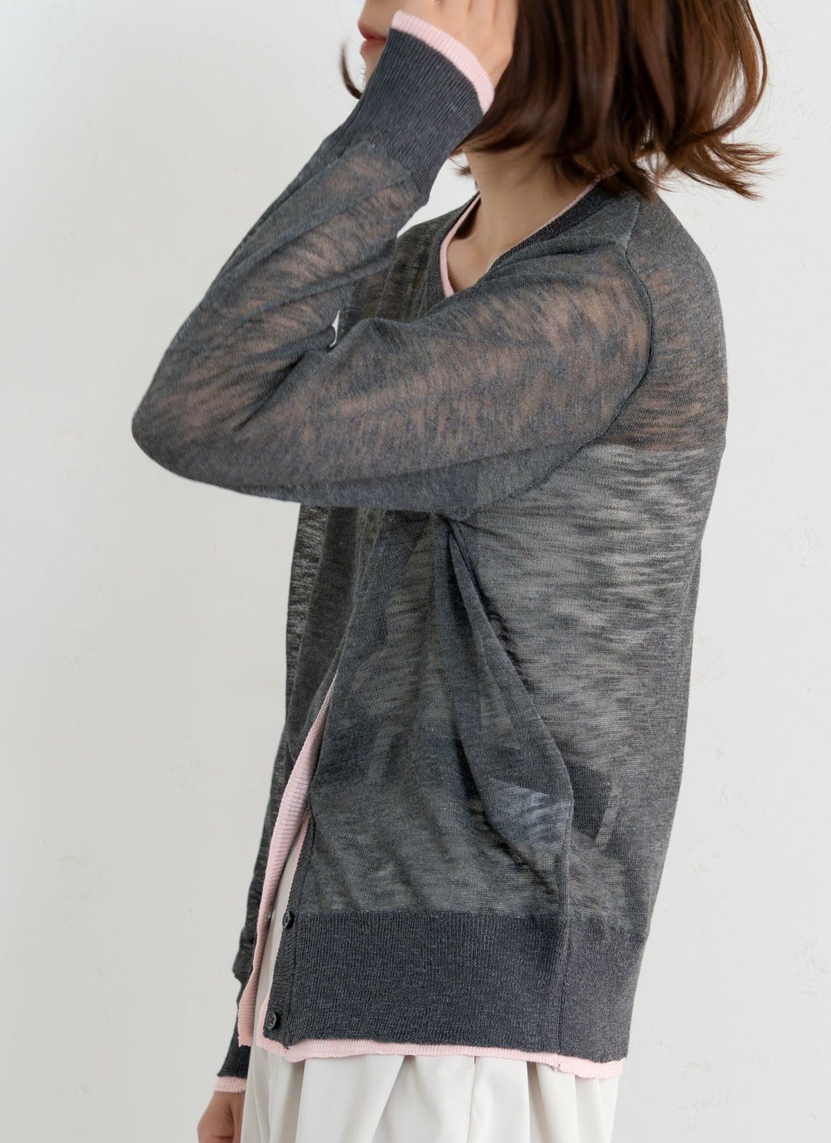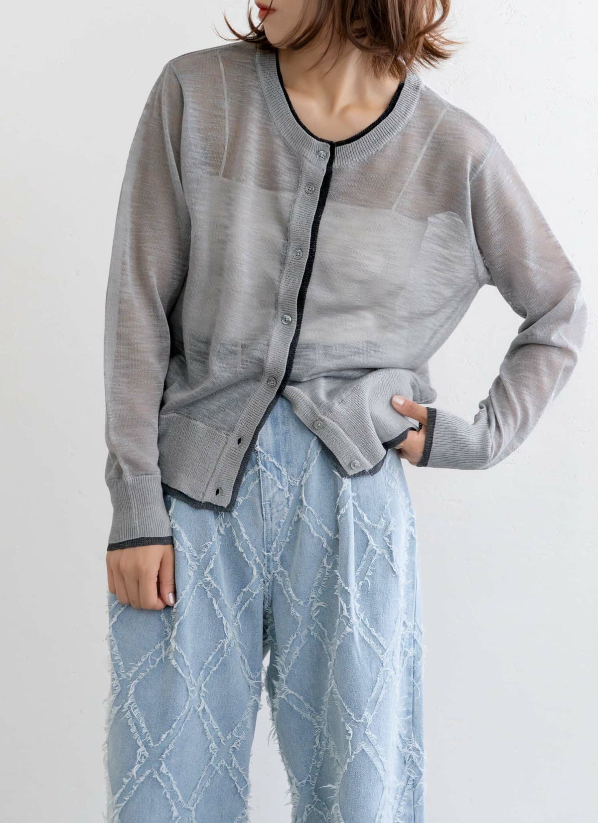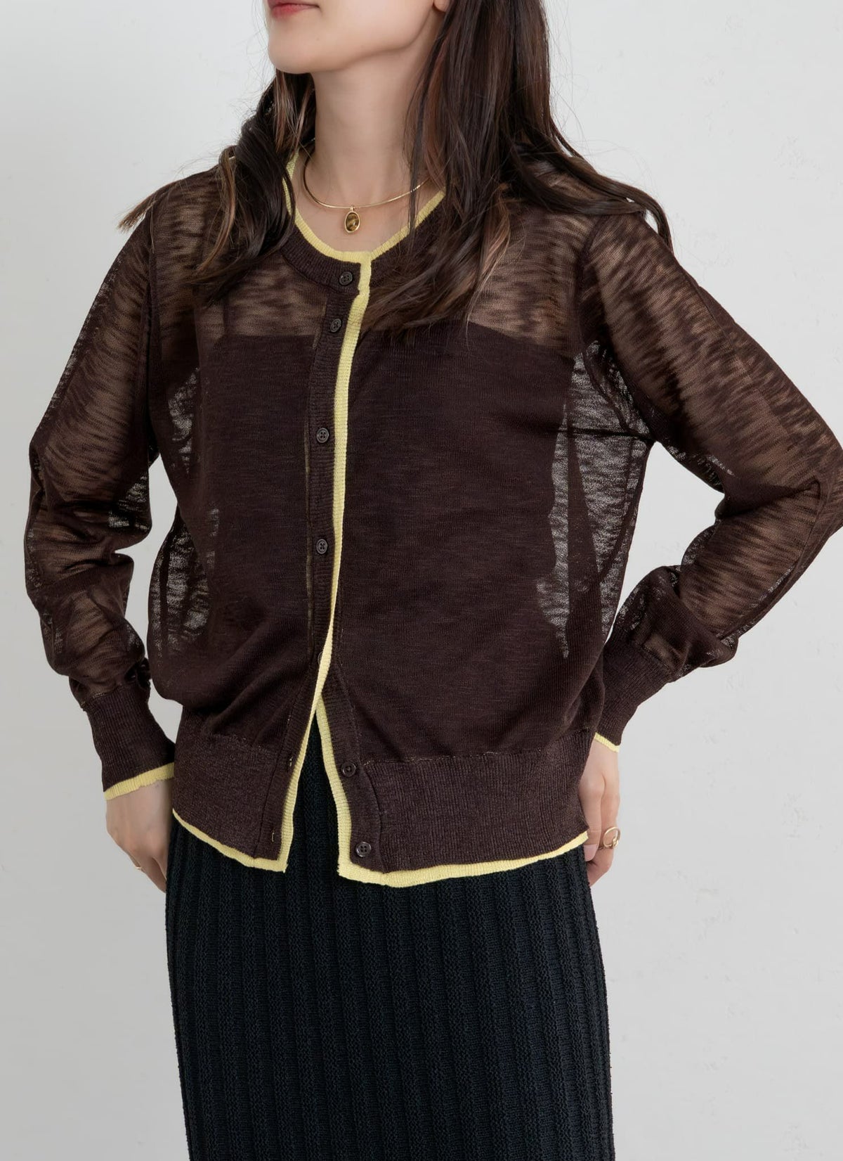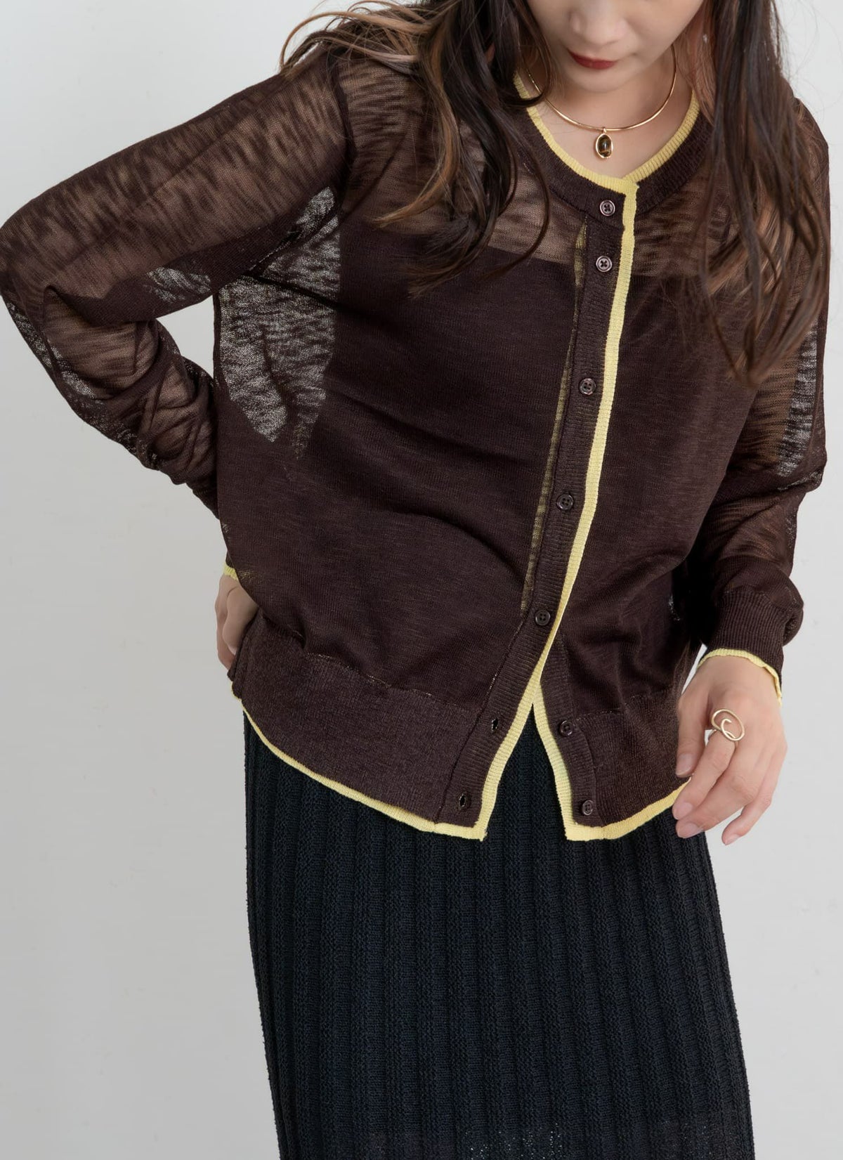 revoam【程よい透け感が女性らしい、配色シアーニットカーディガン】 【10%OFF】シアーニットカーデ