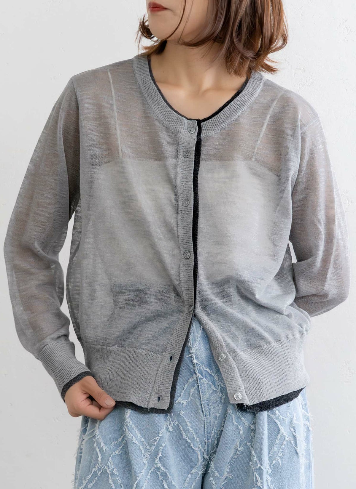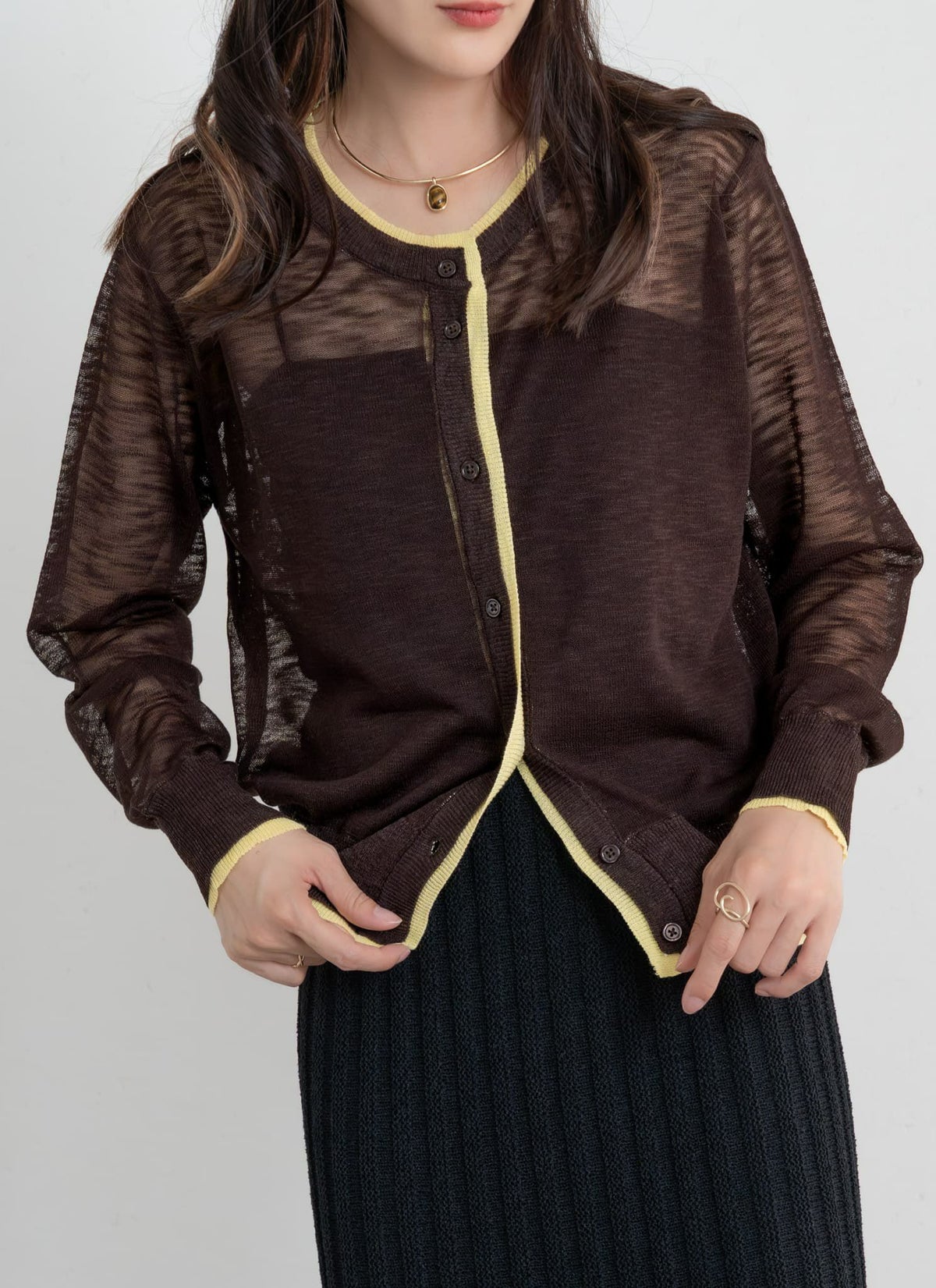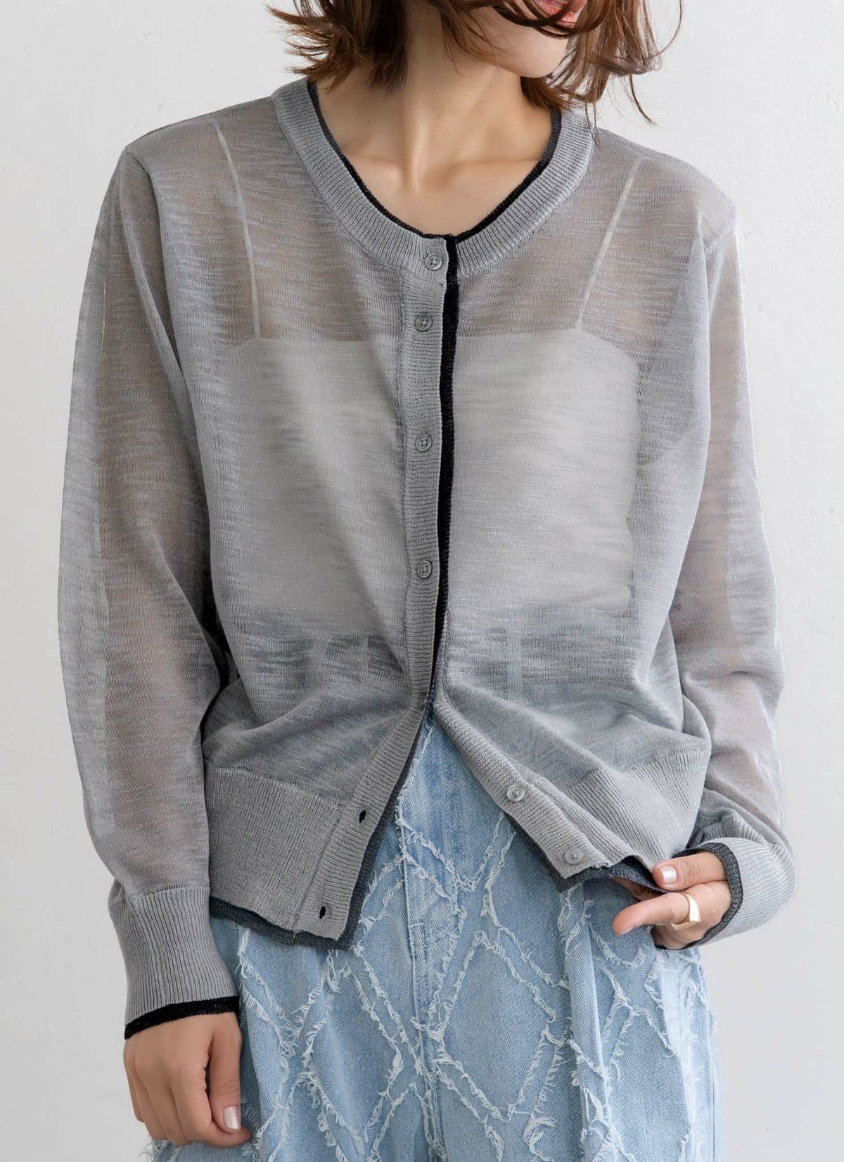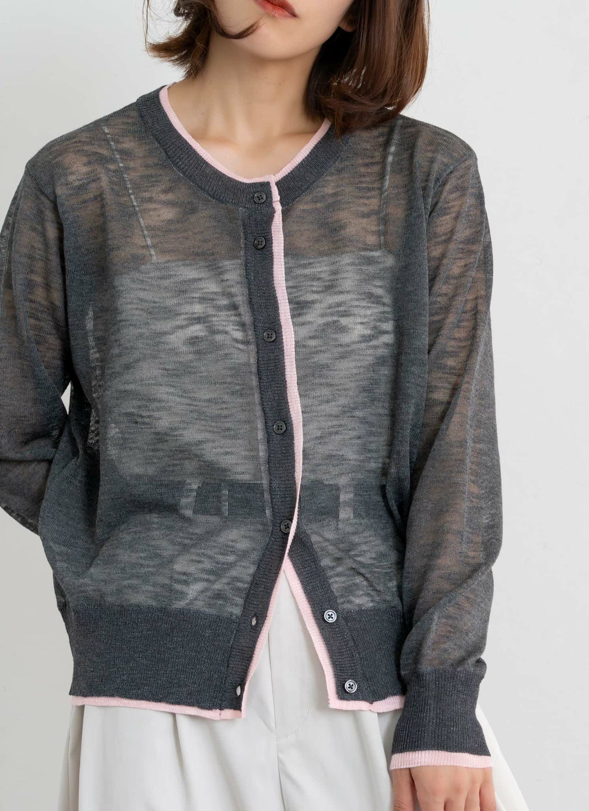 revoam【程よい透け感が女性らしい、配色シアーニットカーディガン】 【10%OFF】シアーニットカーデ