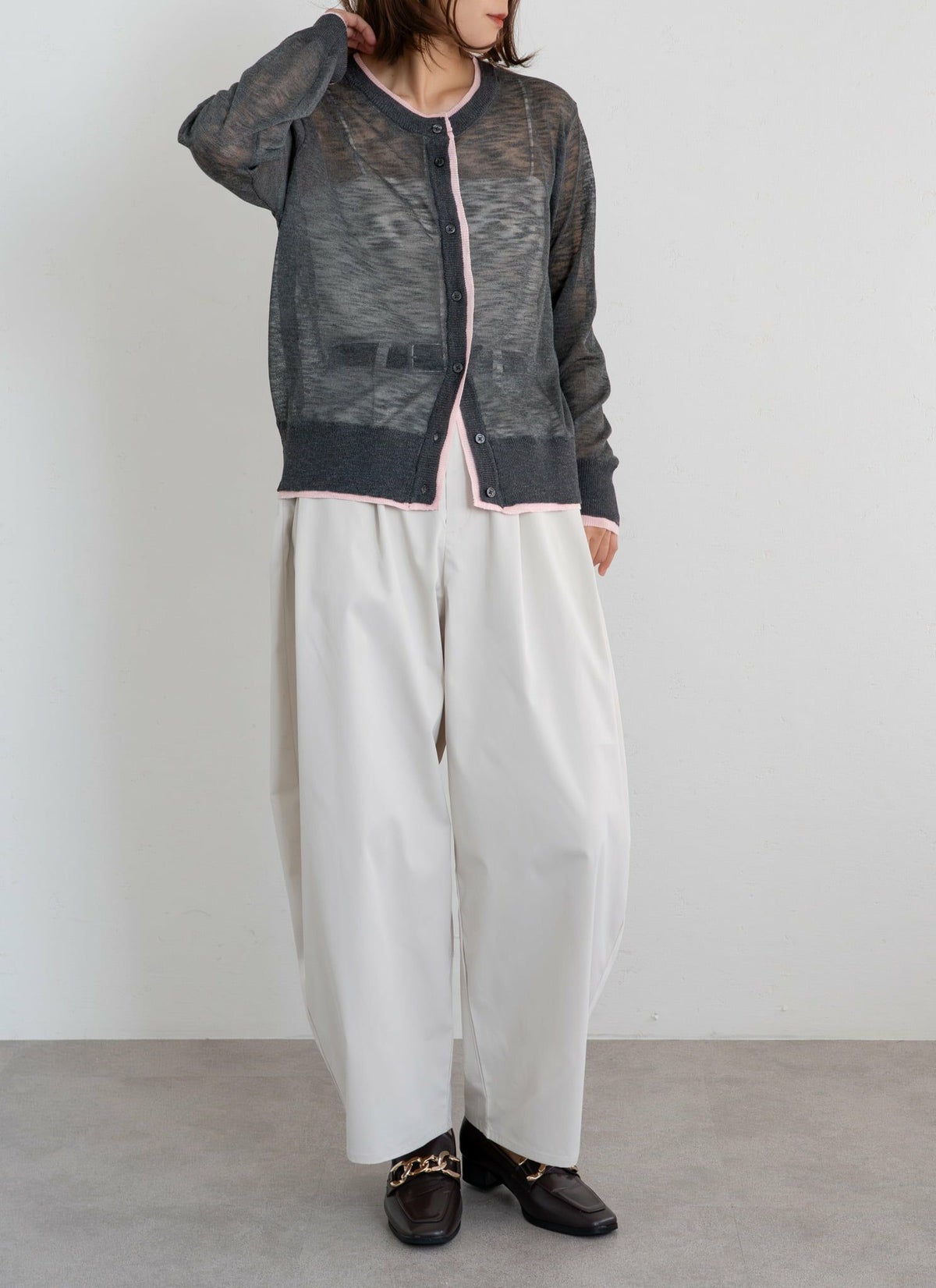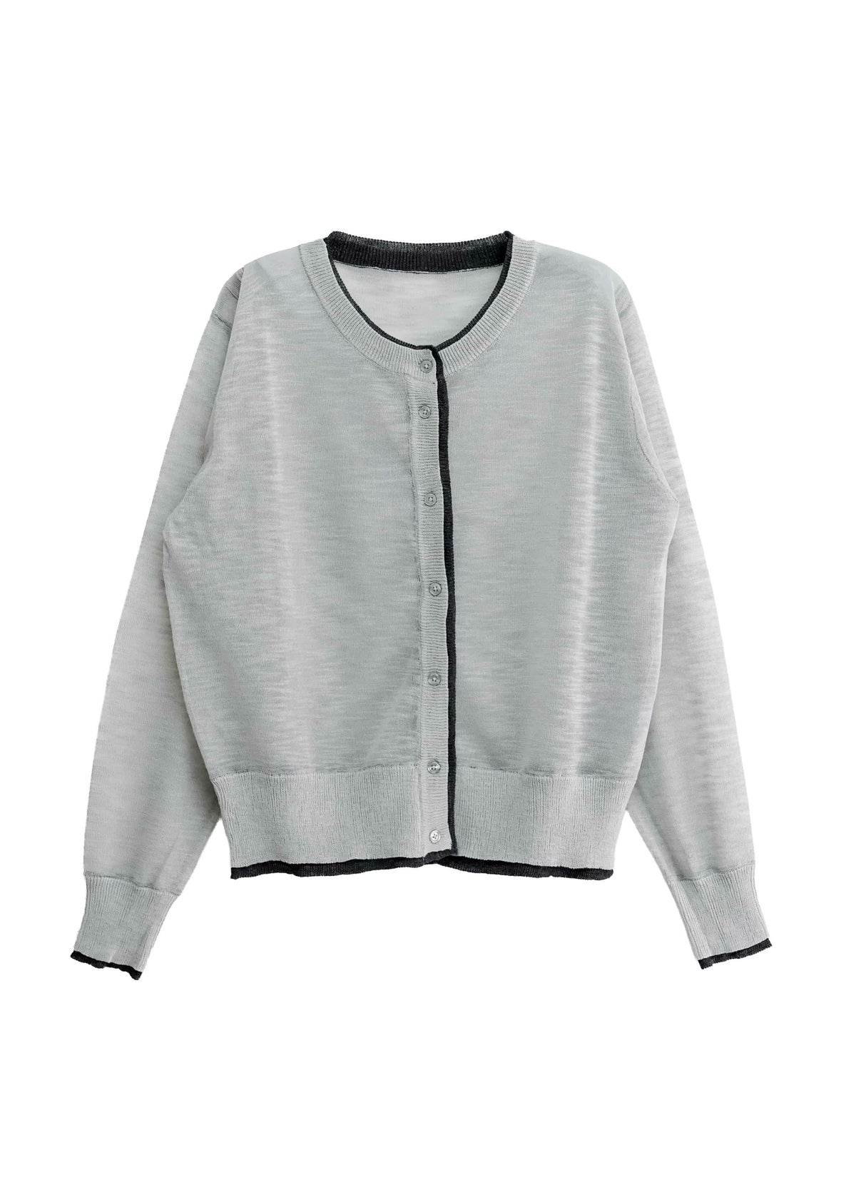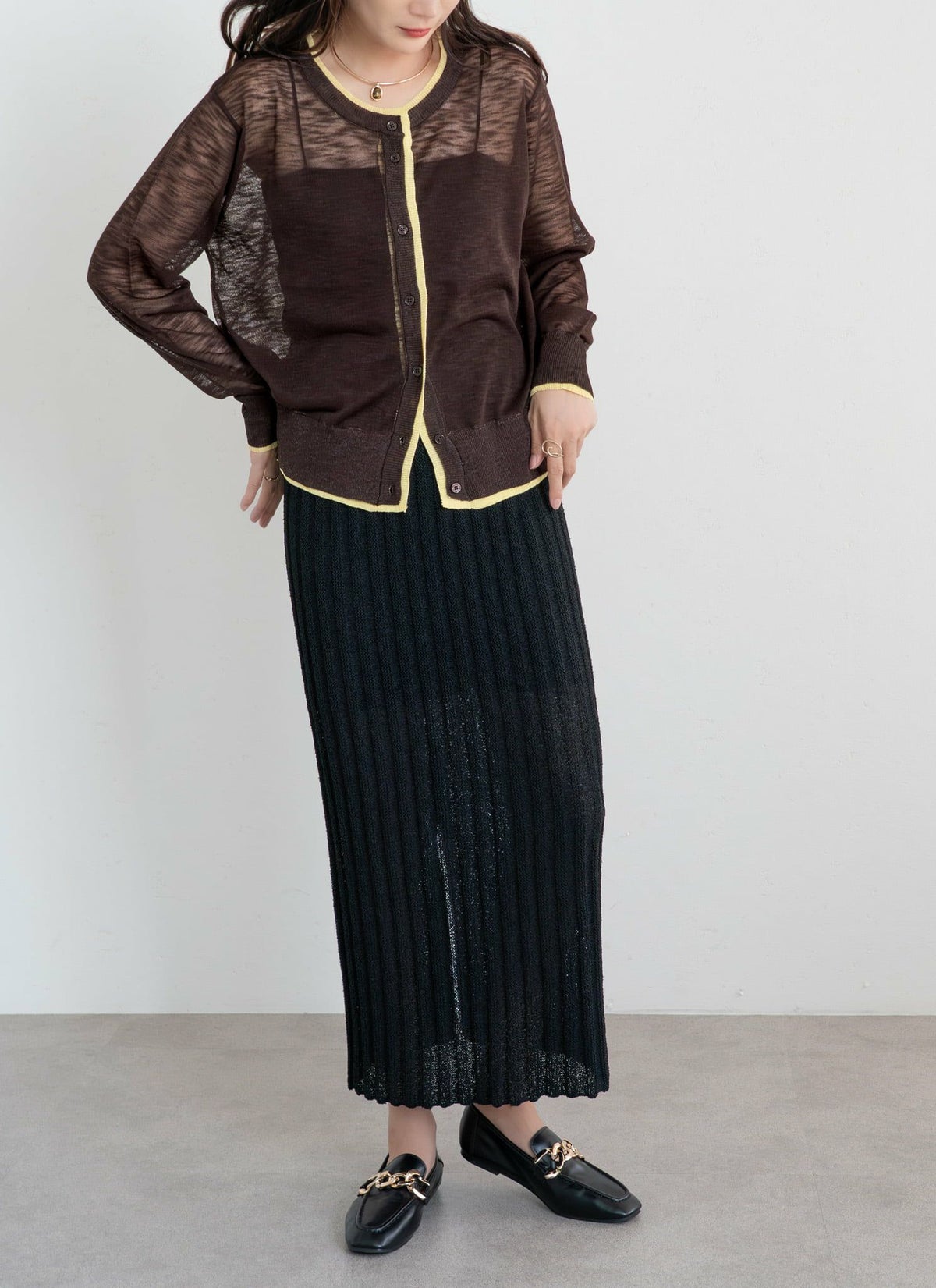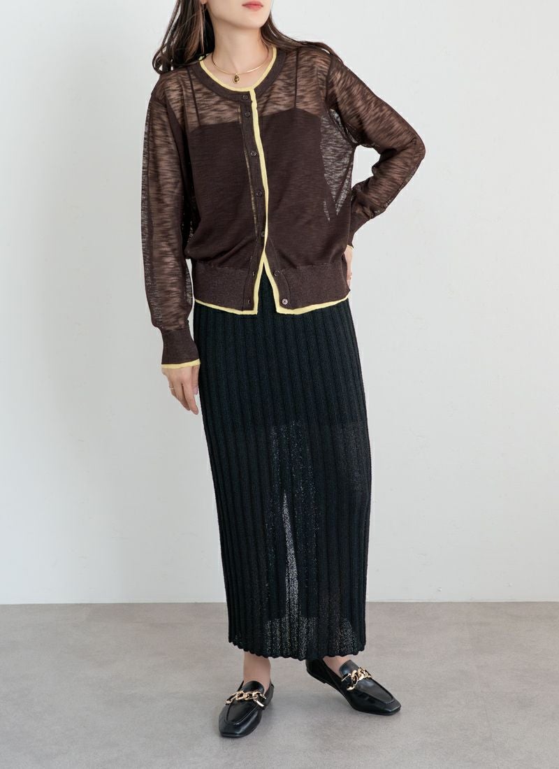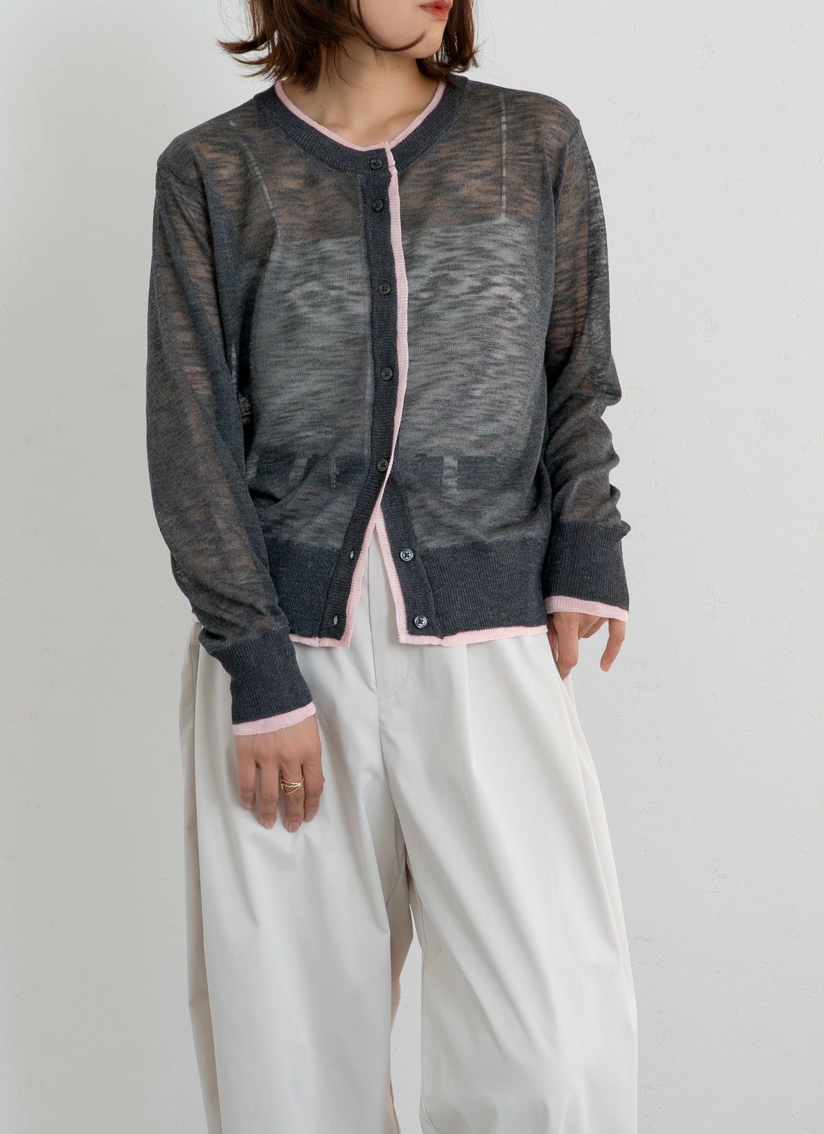 revoam【程よい透け感が女性らしい、配色シアーニットカーディガン】 【10%OFF】シアーニットカーデ