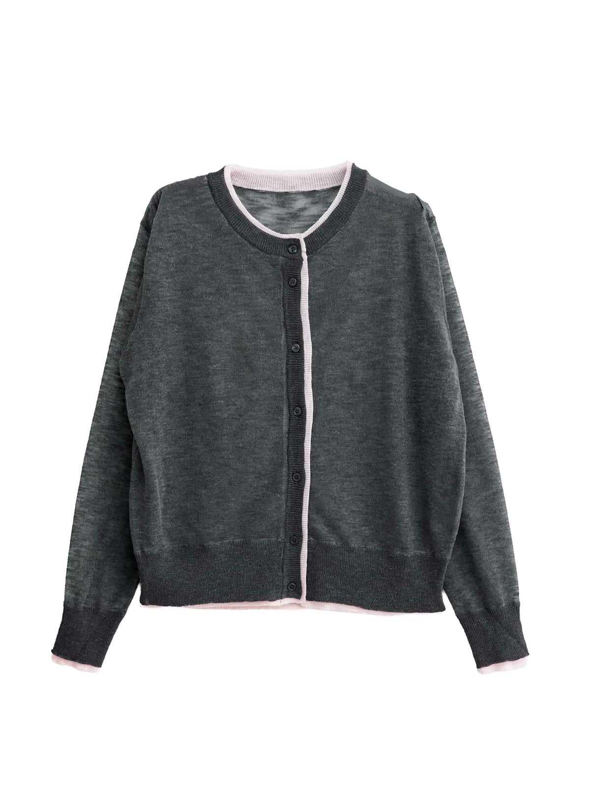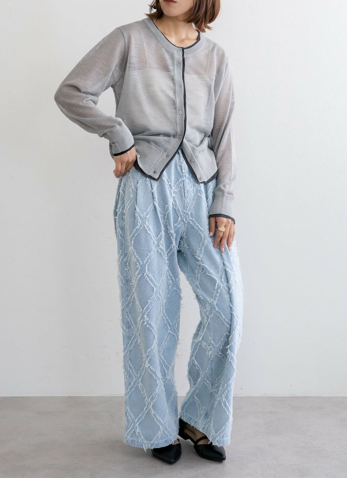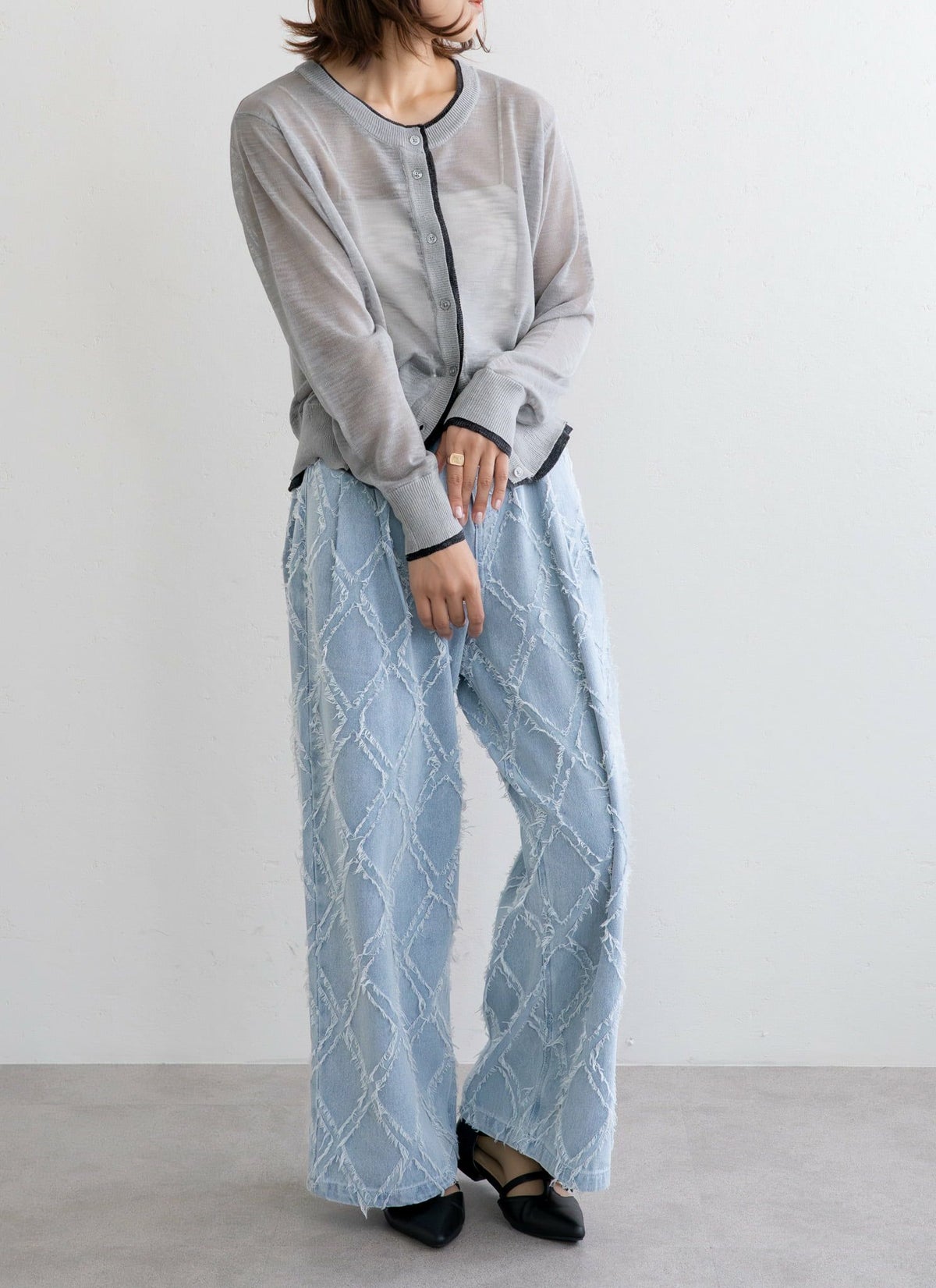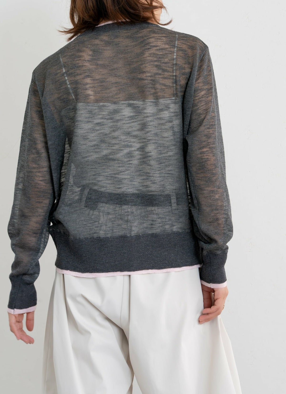 revoam【程よい透け感が女性らしい、配色シアーニットカーディガン】 【10%OFF】シアーニットカーデ
