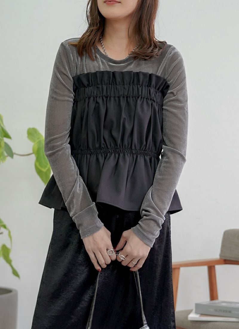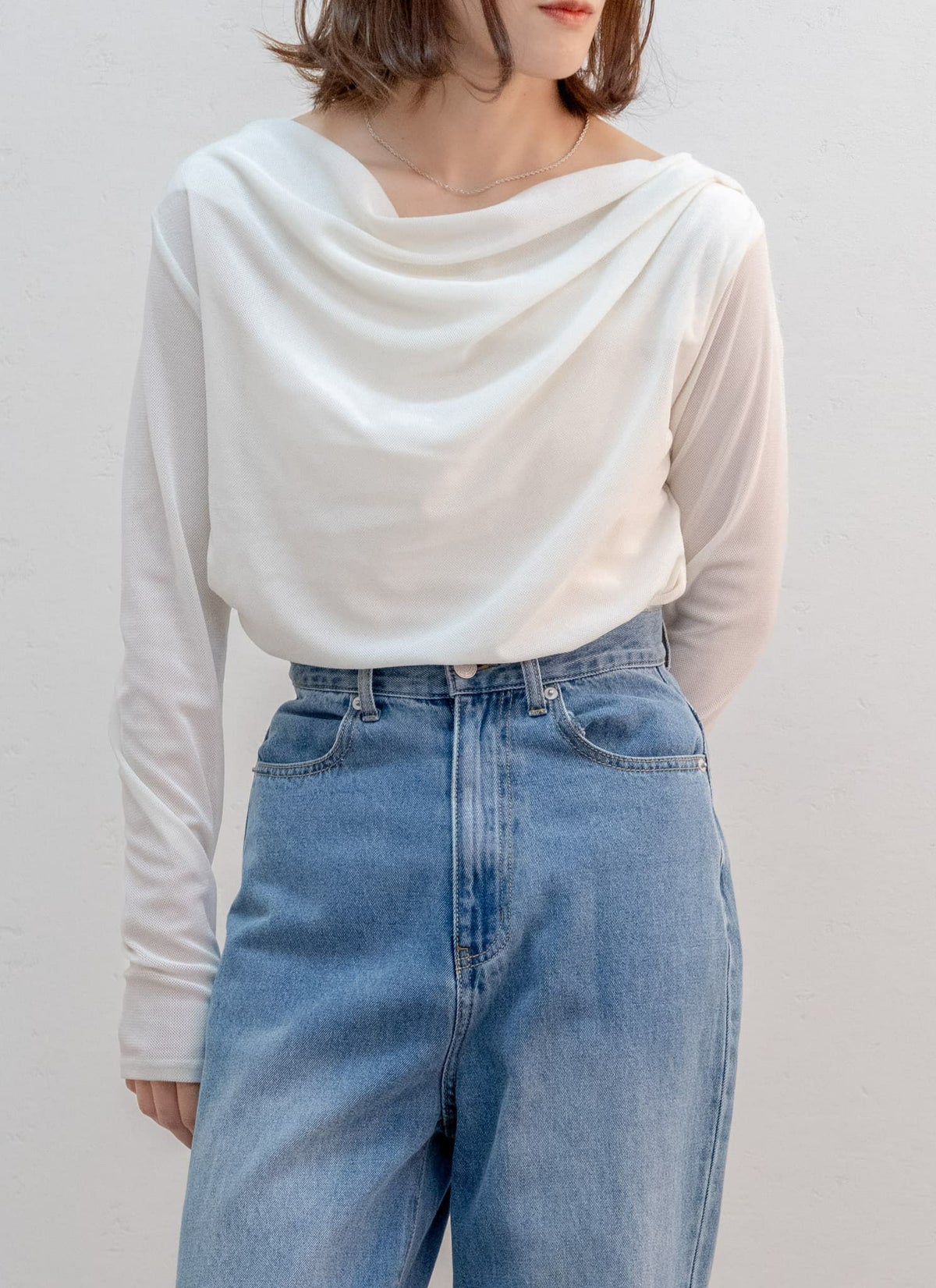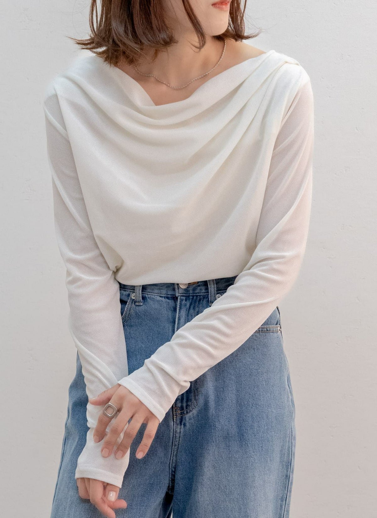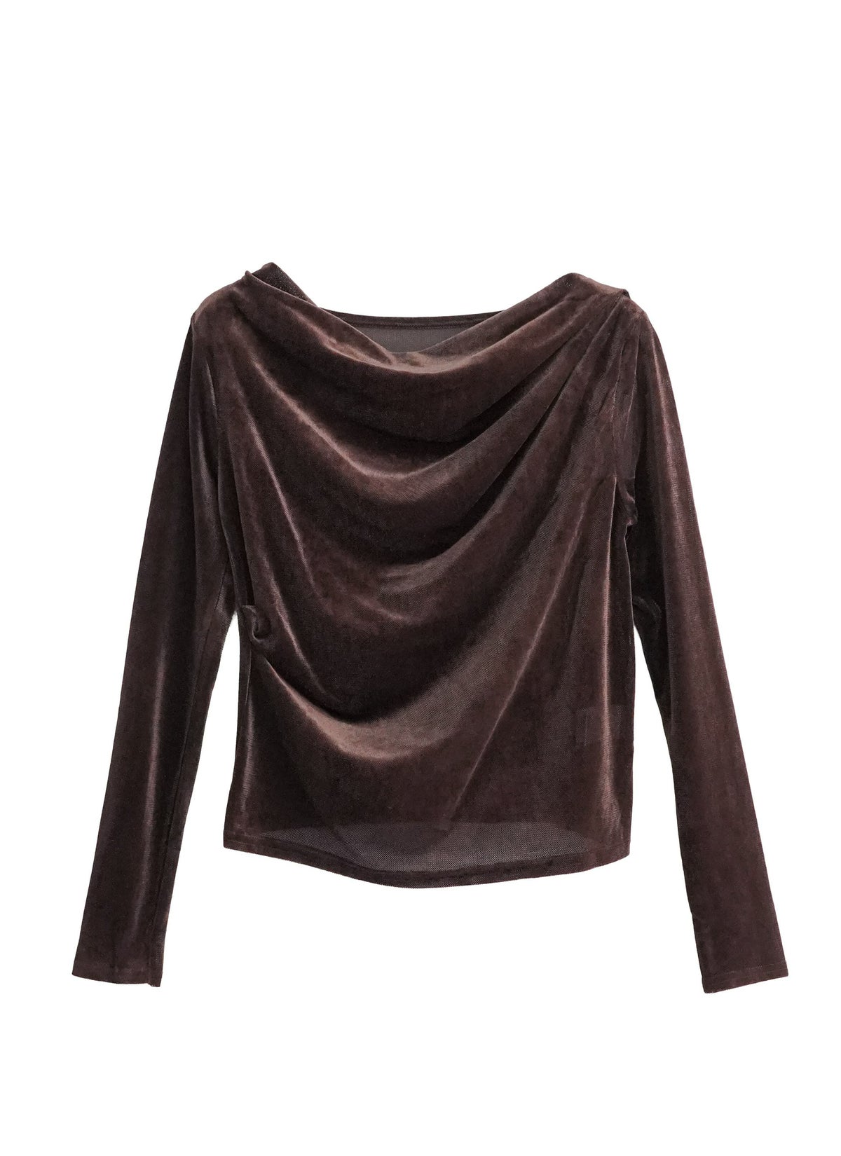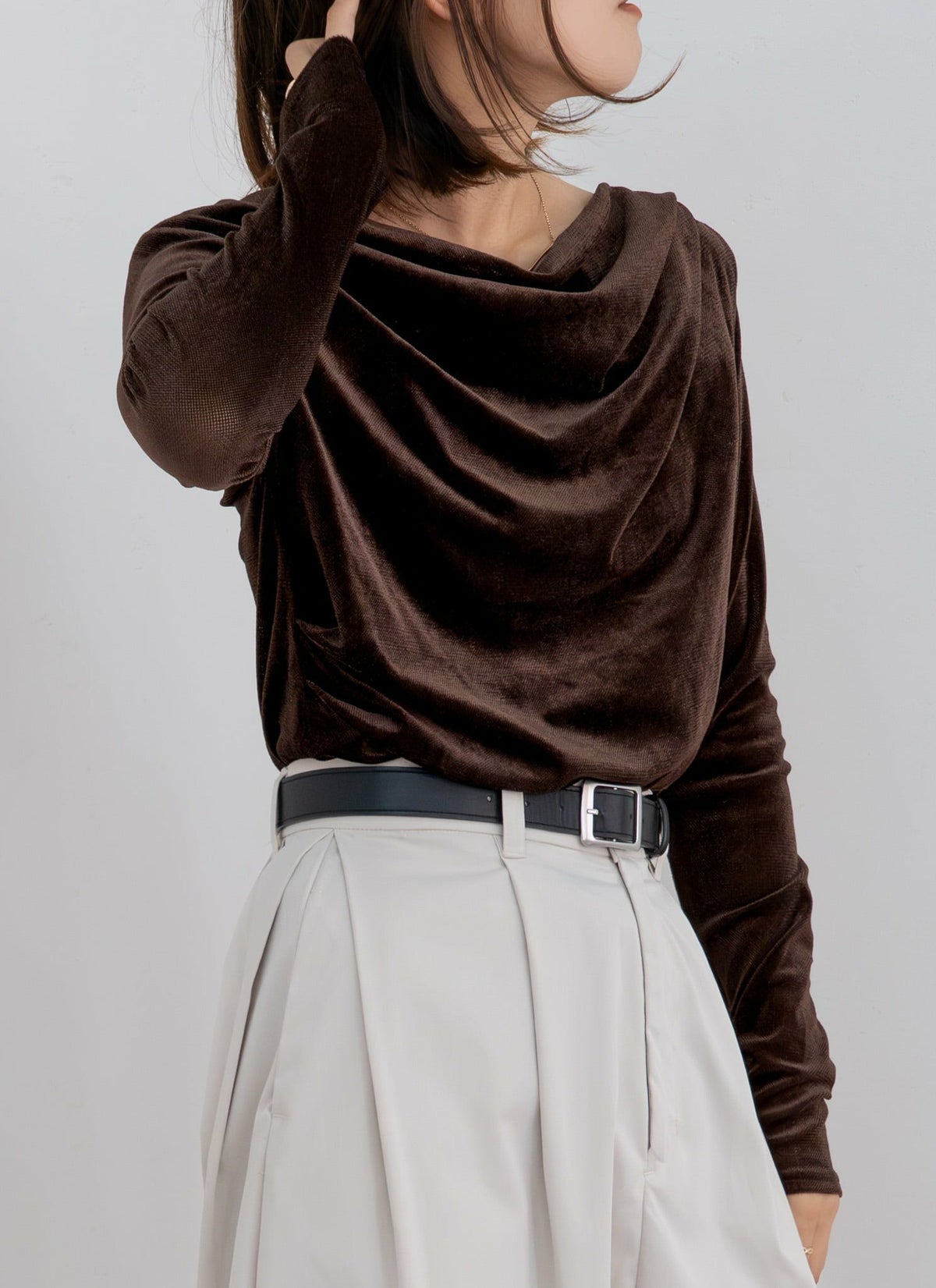 revoam【光を柔らかく受けるシアーベロアが、上品なドレープを演出するトップス】 【20%OFF】シアーベロアドレーププルオーバー