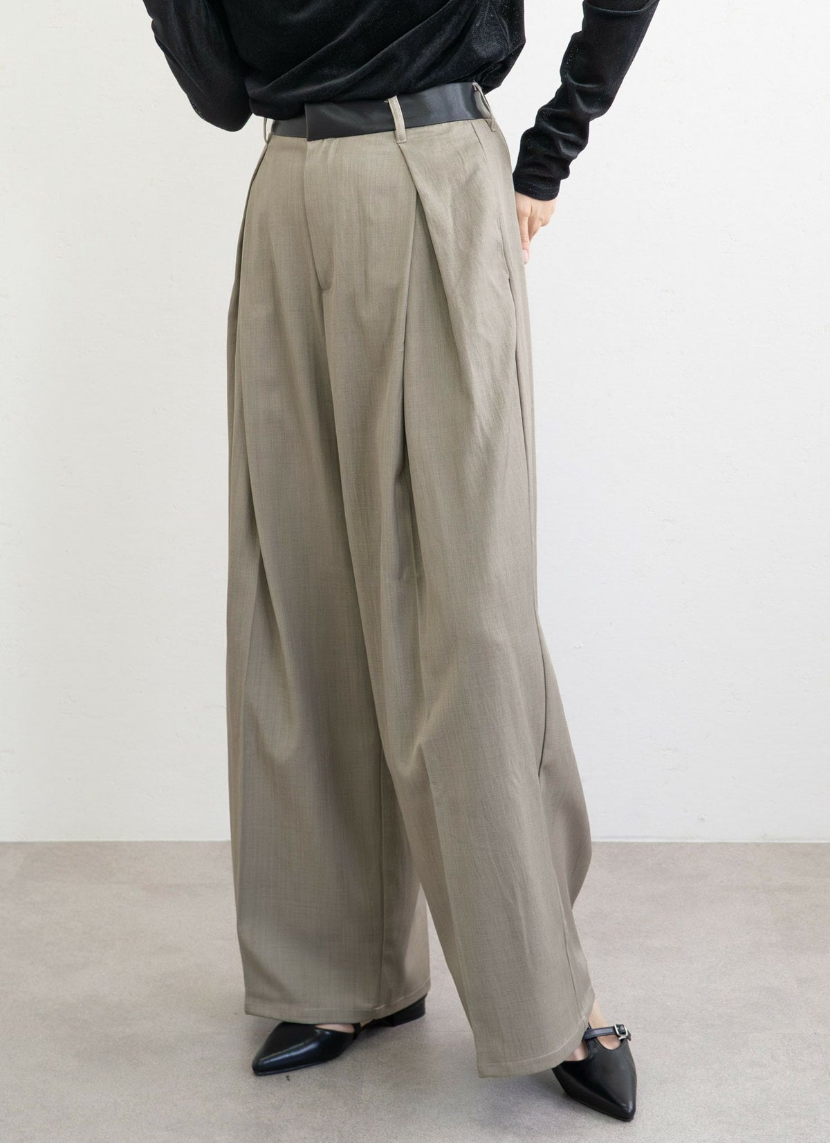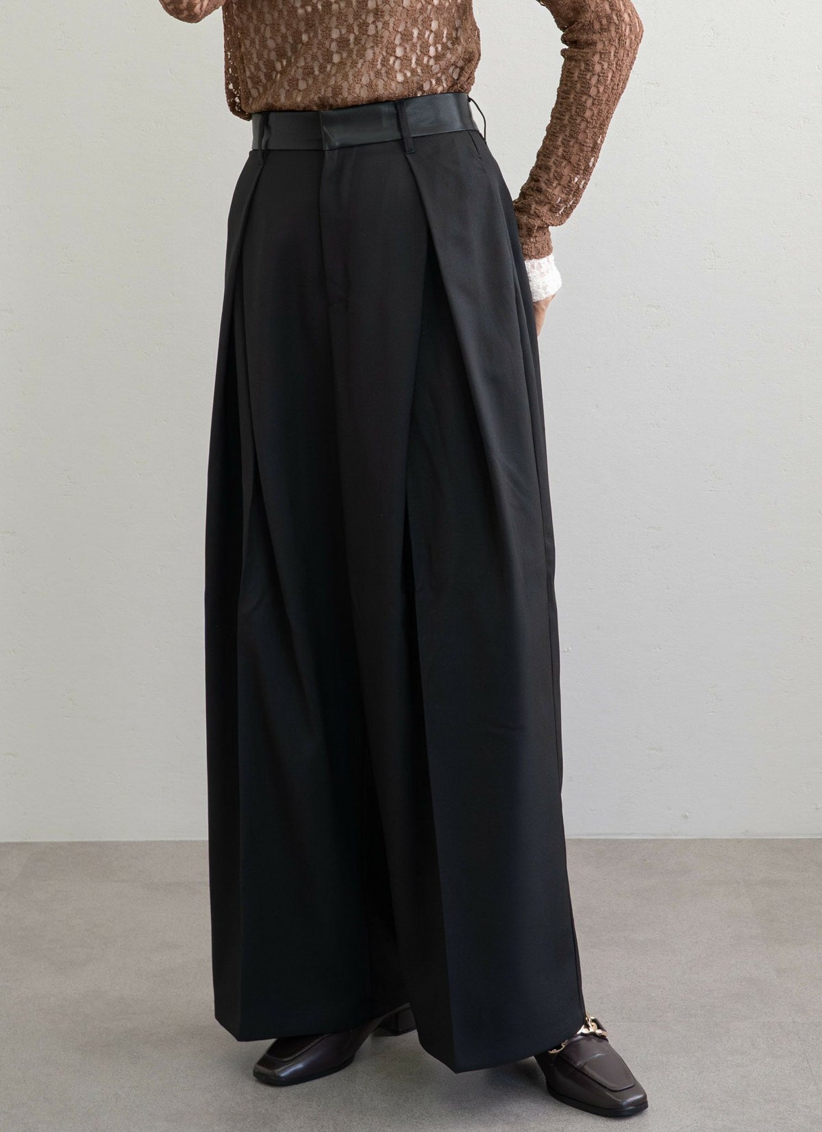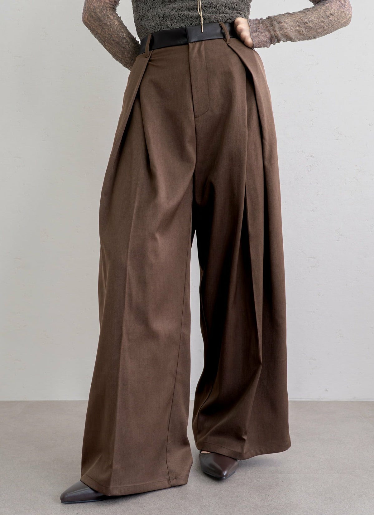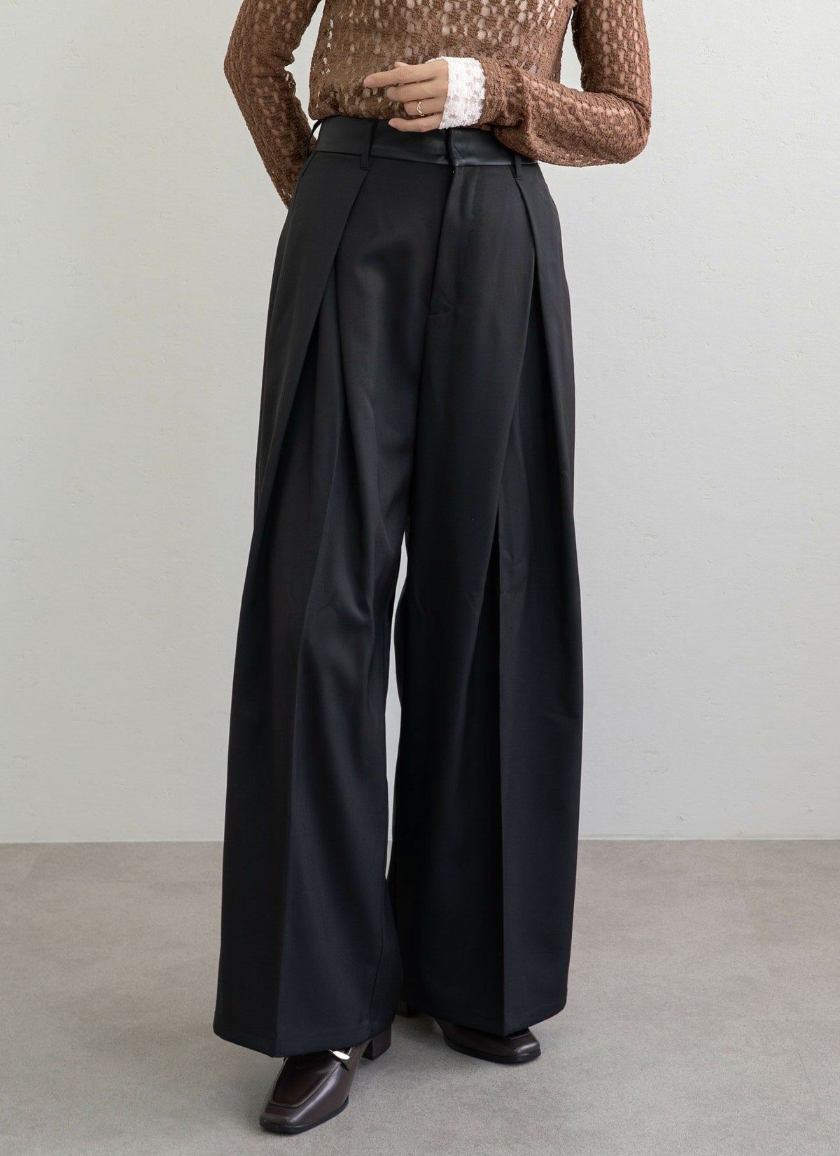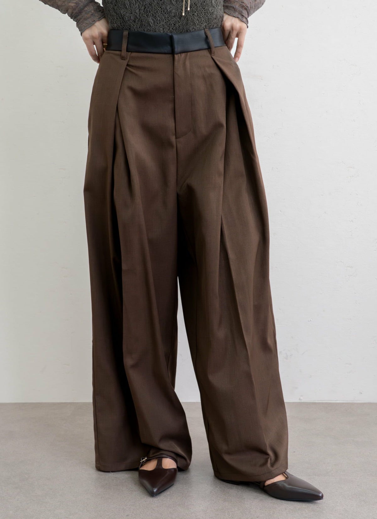 revoam【ウエストのレザーがポイントのタックパンツ】 【20%OFF】ウエストレザータックパンツ