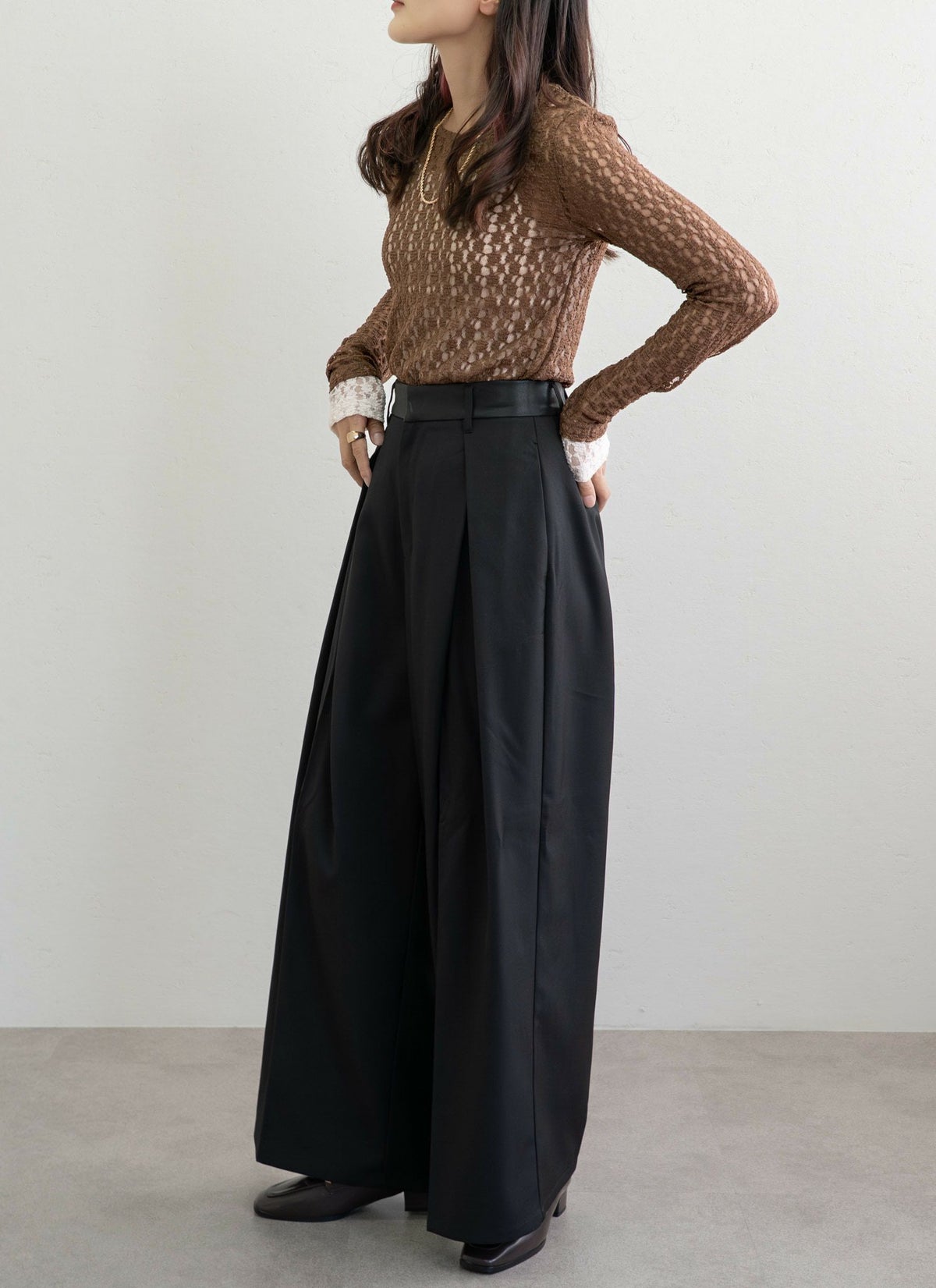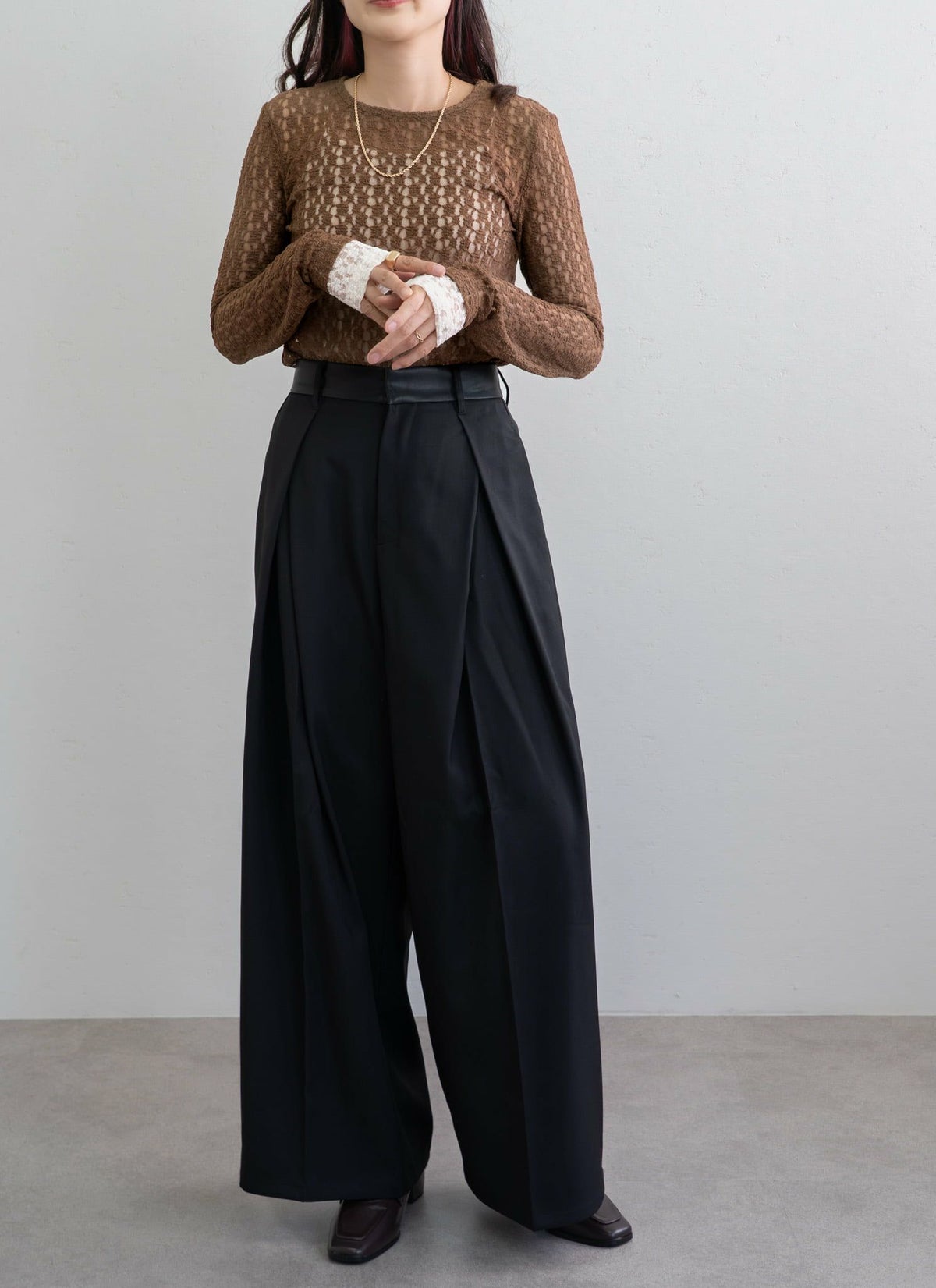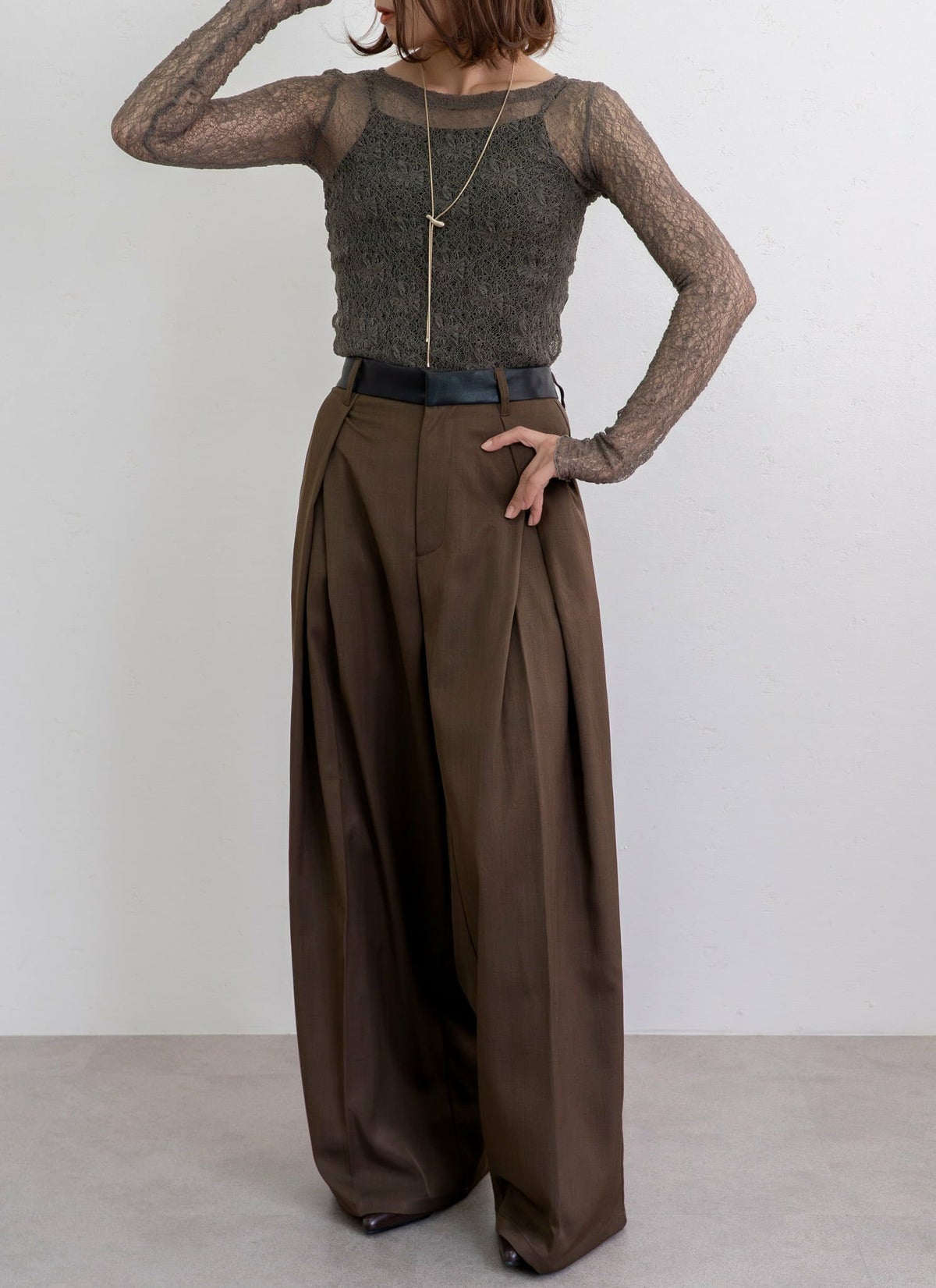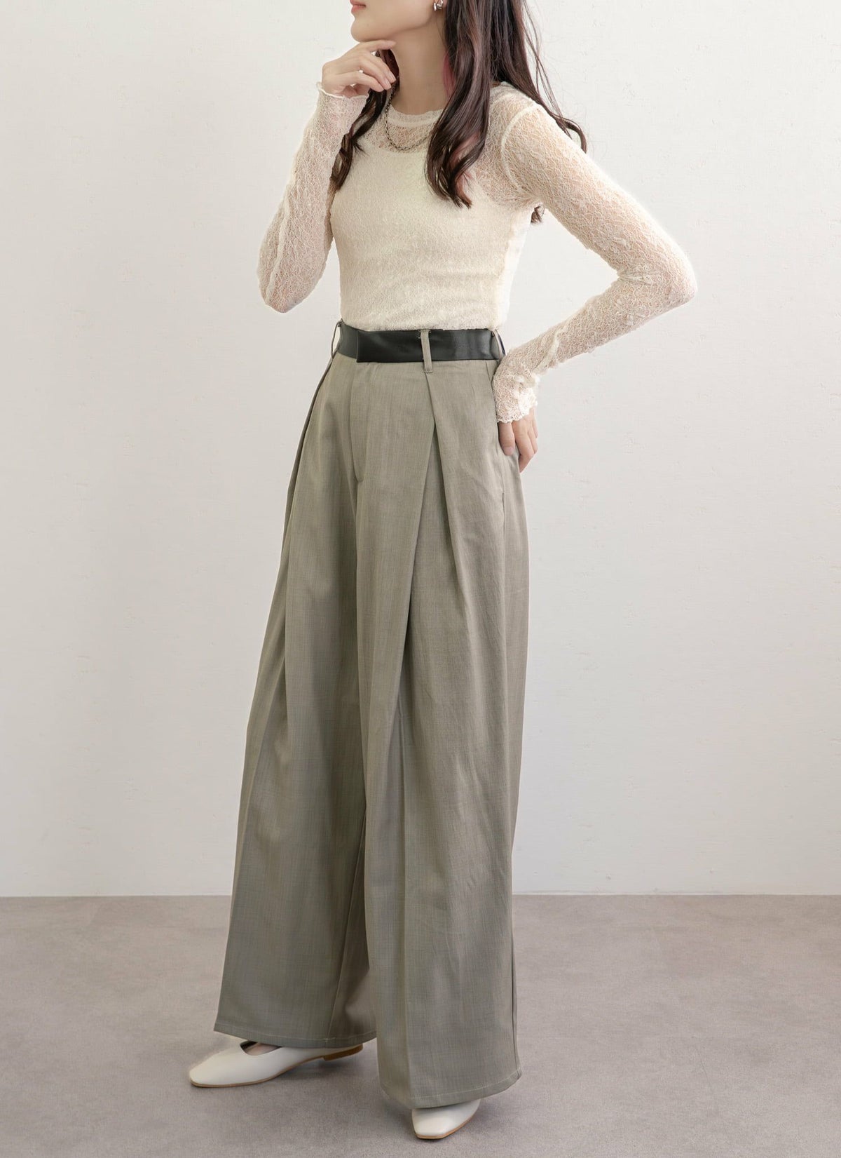 revoam【ウエストのレザーがポイントのタックパンツ】 【20%OFF】ウエストレザータックパンツ