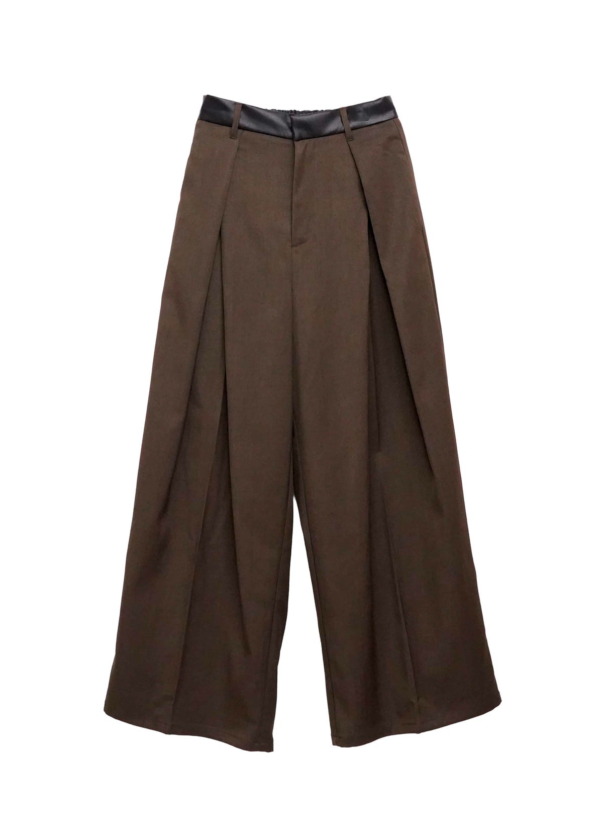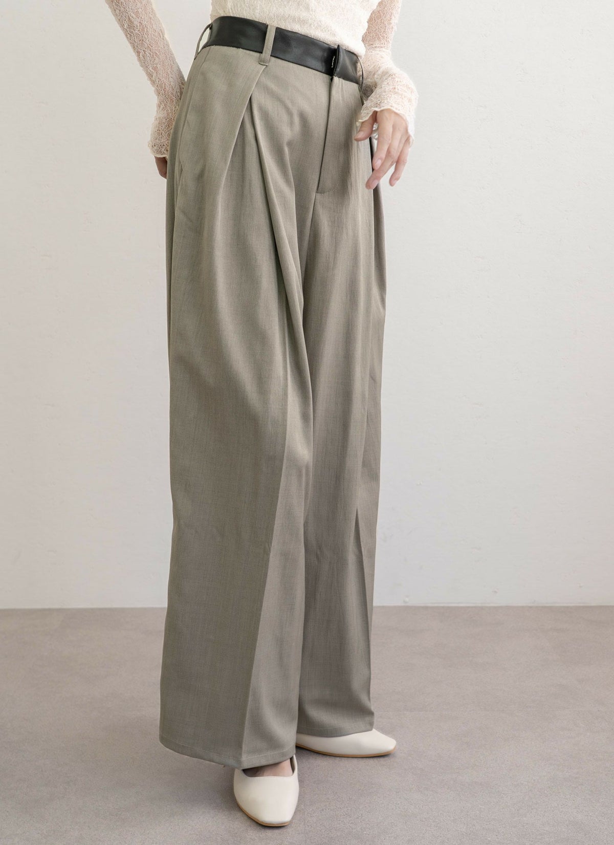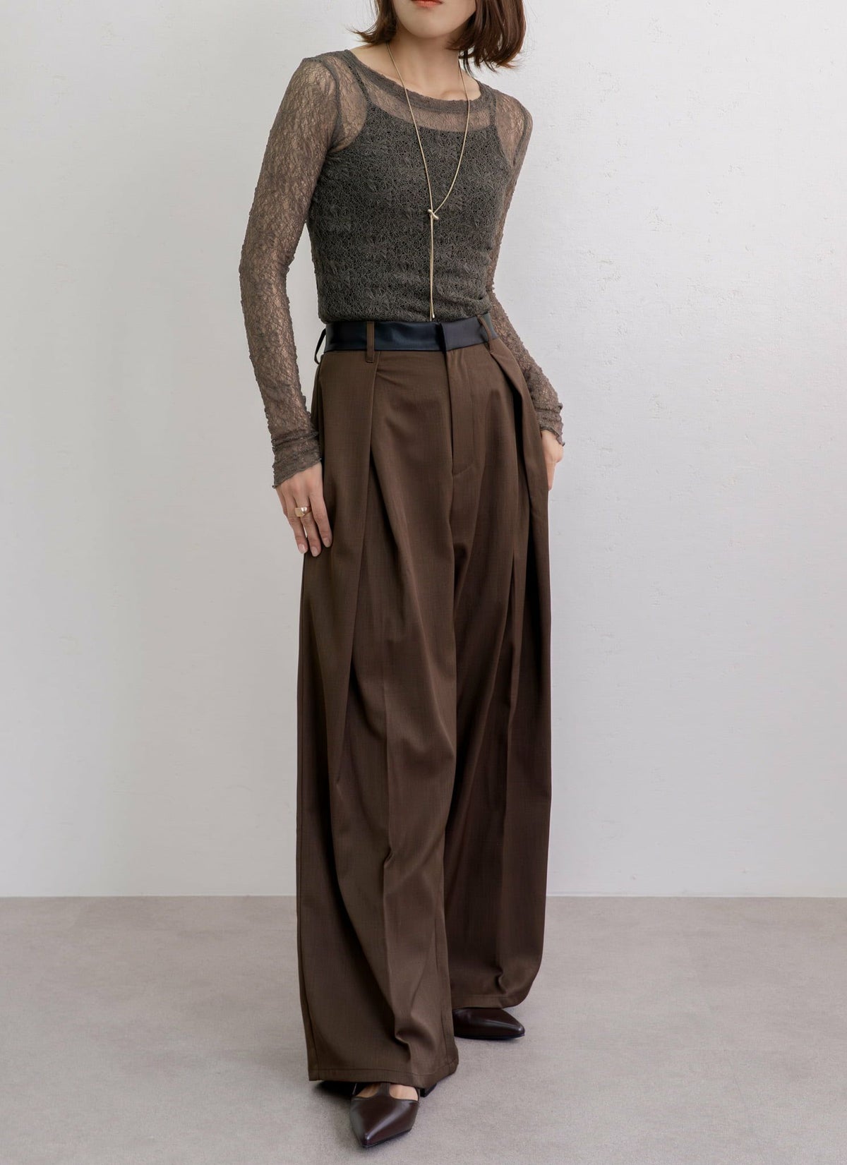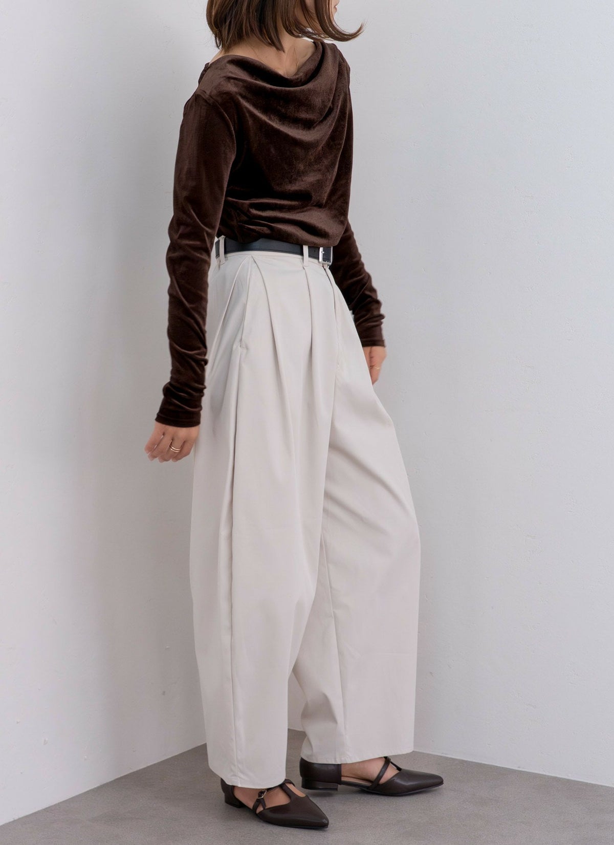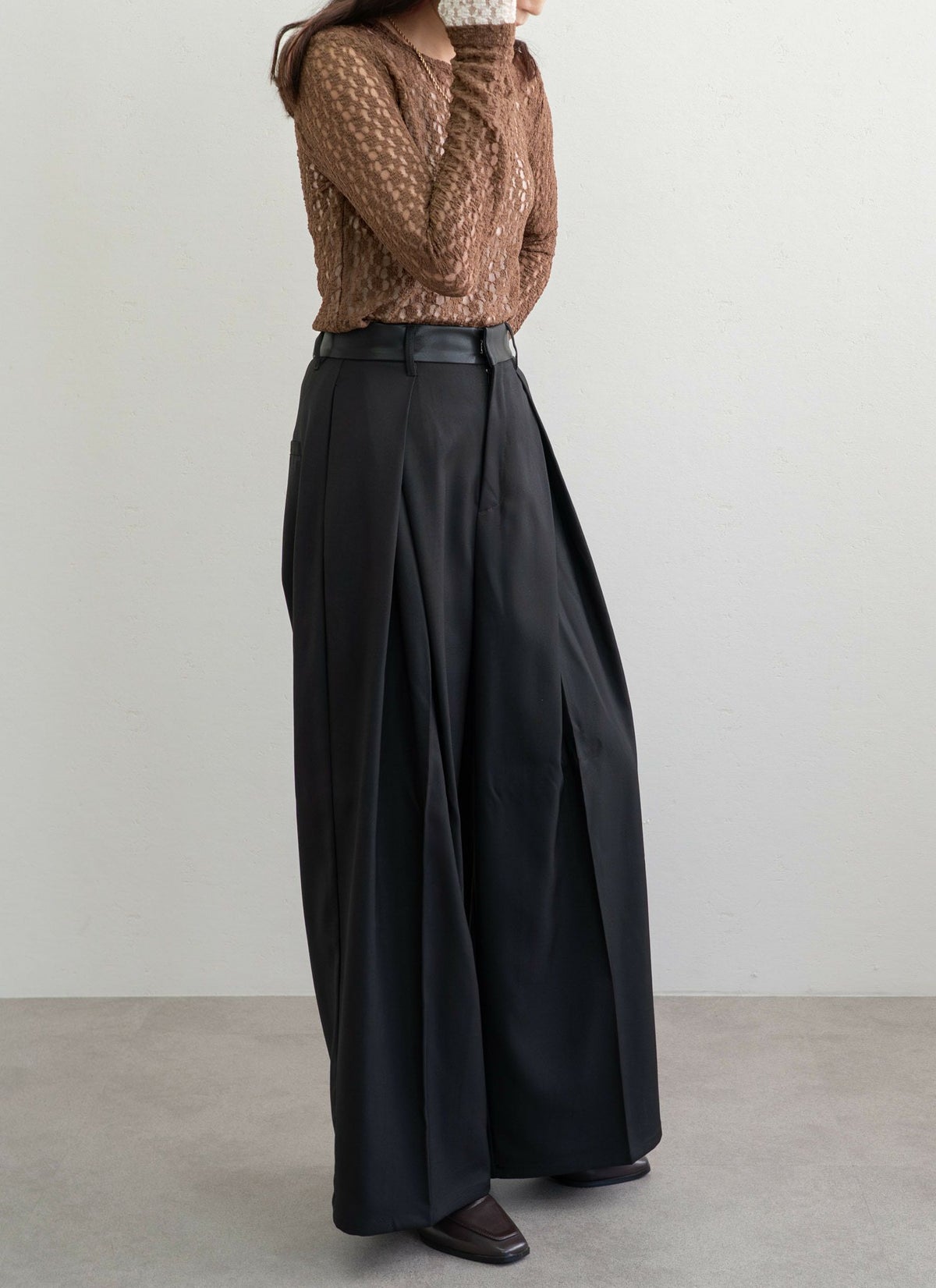 revoam【ウエストのレザーがポイントのタックパンツ】 【20%OFF】ウエストレザータックパンツ