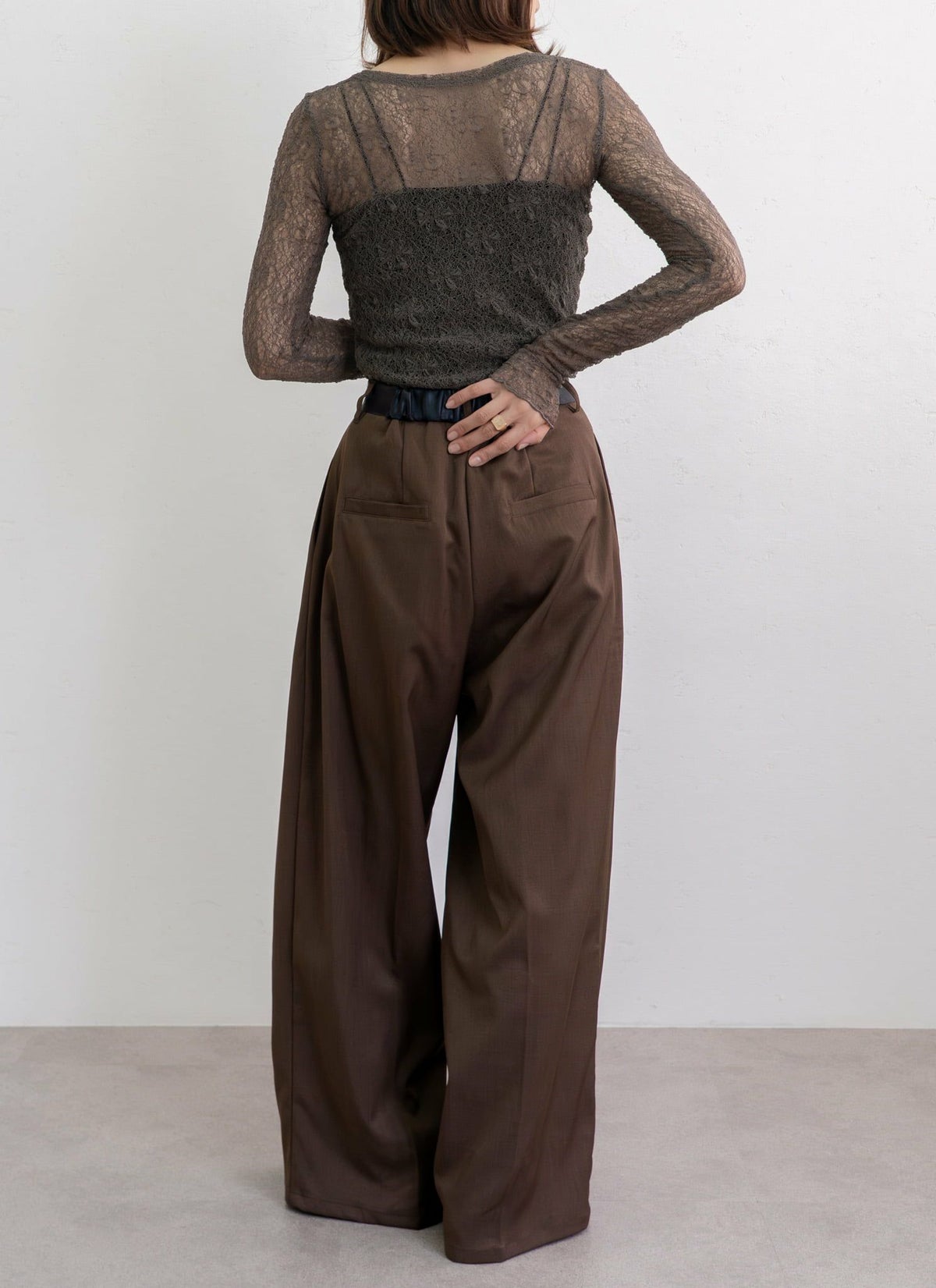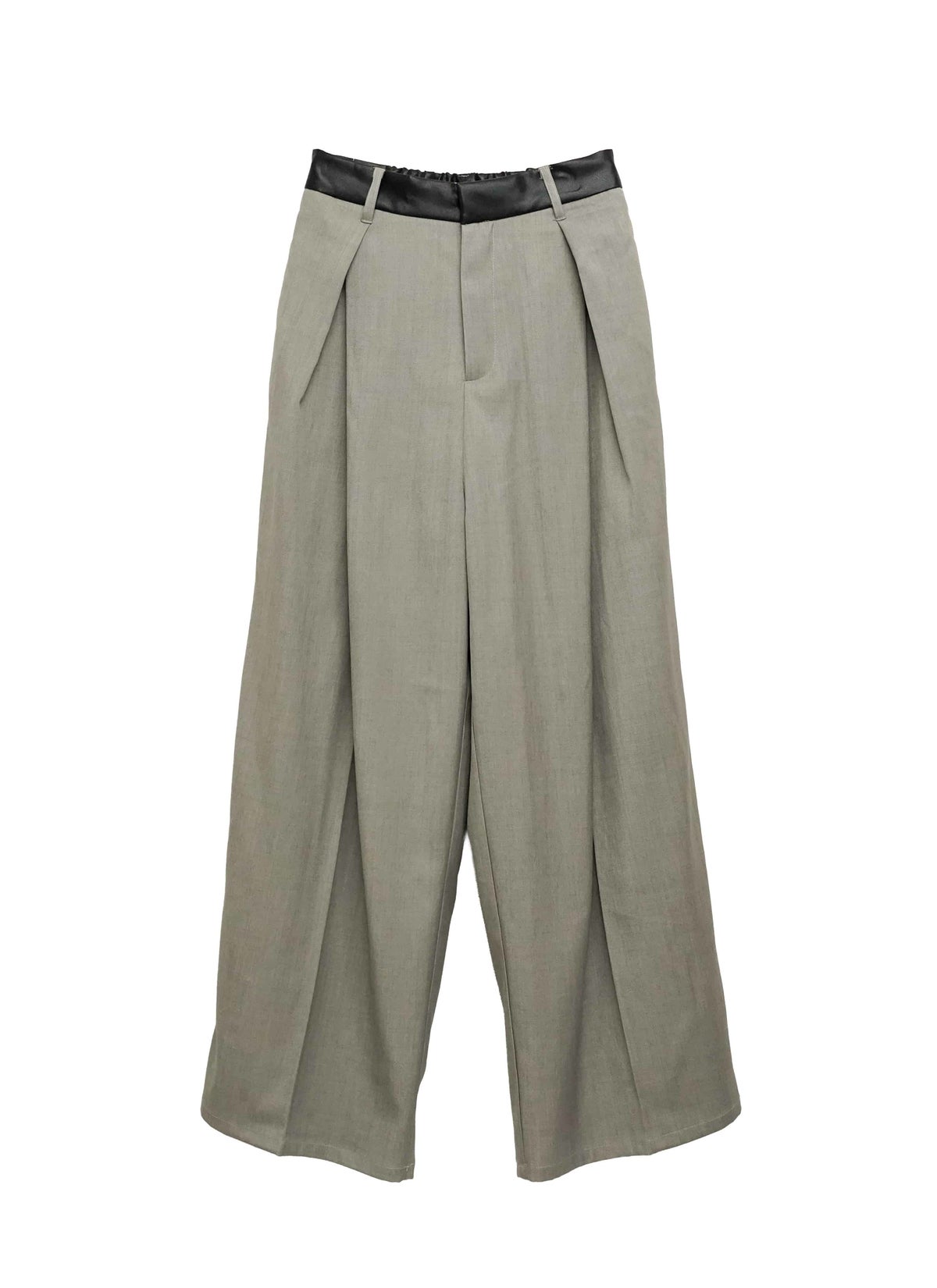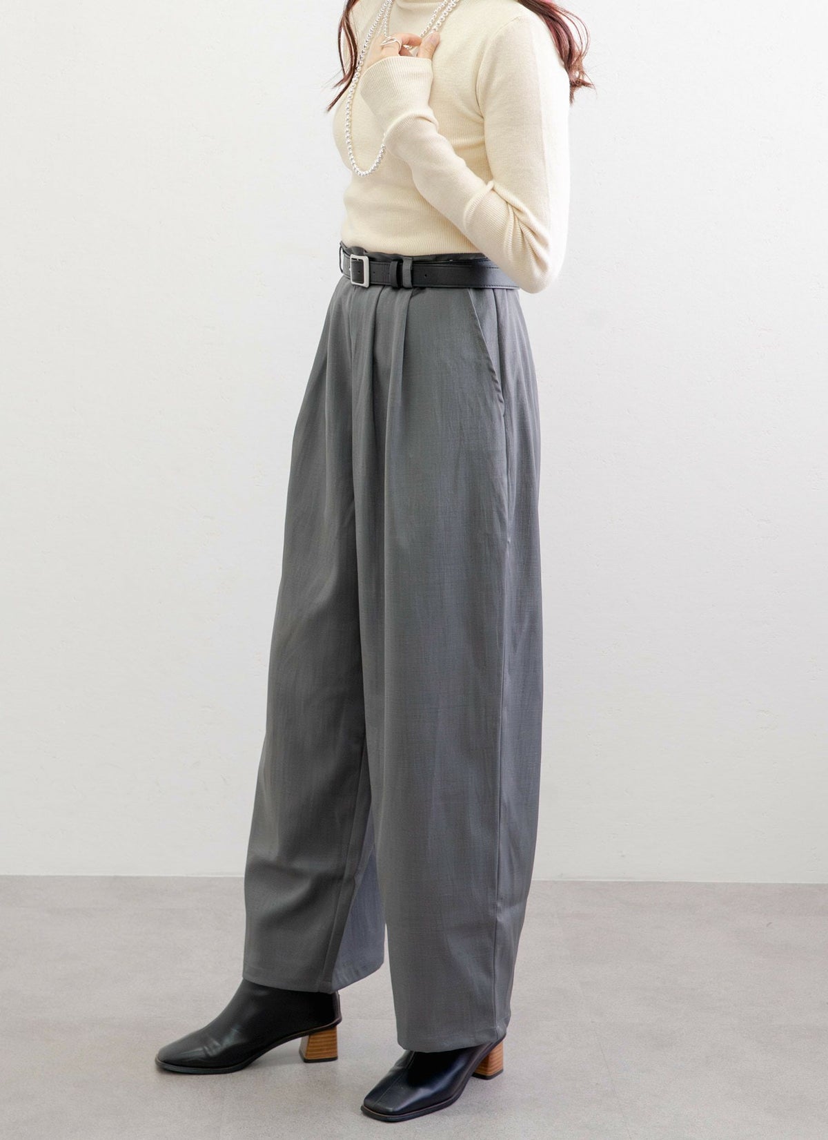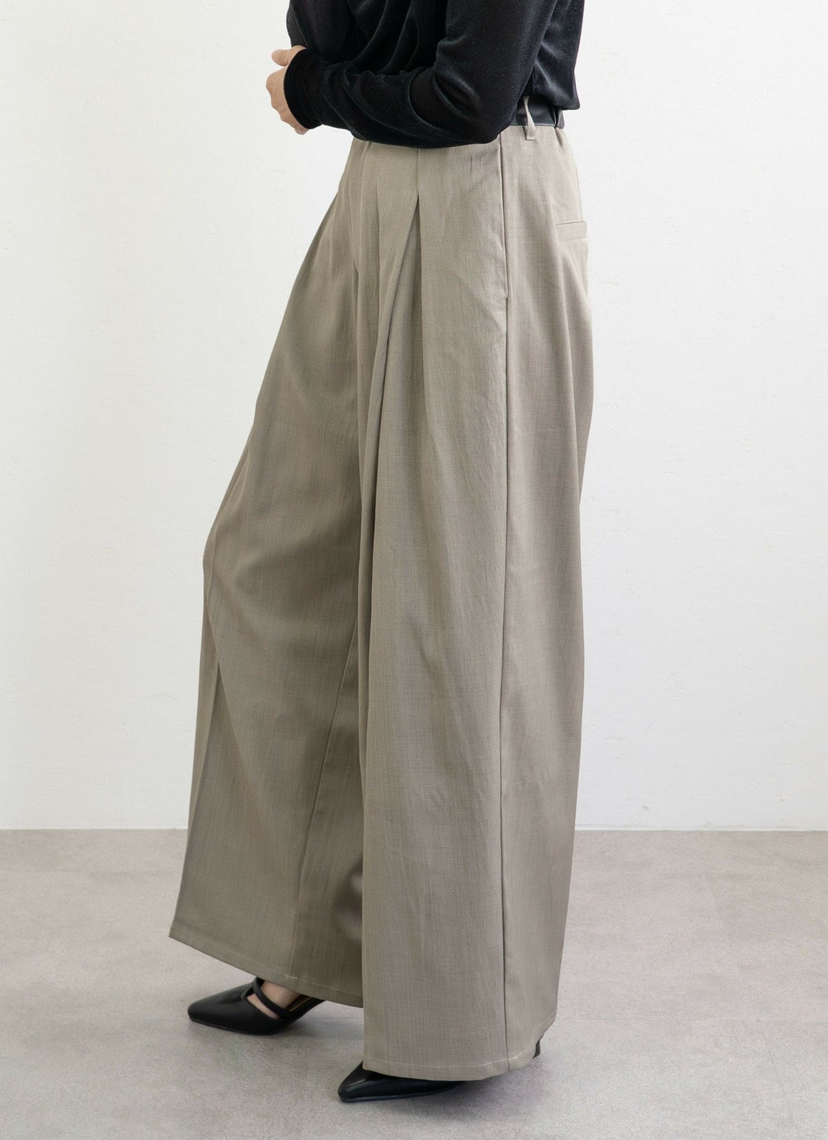 revoam【ウエストのレザーがポイントのタックパンツ】 【20%OFF】ウエストレザータックパンツ