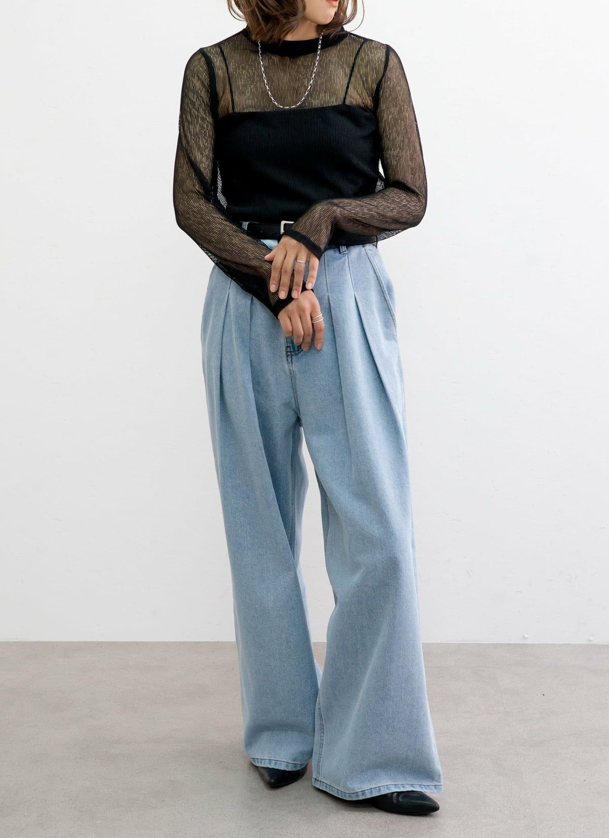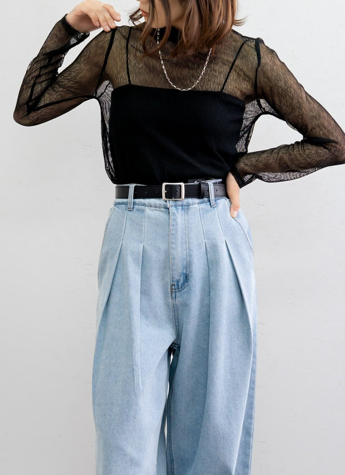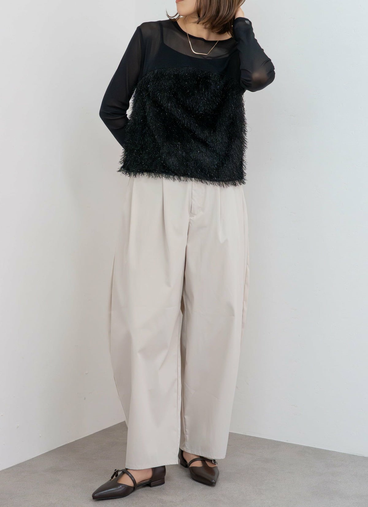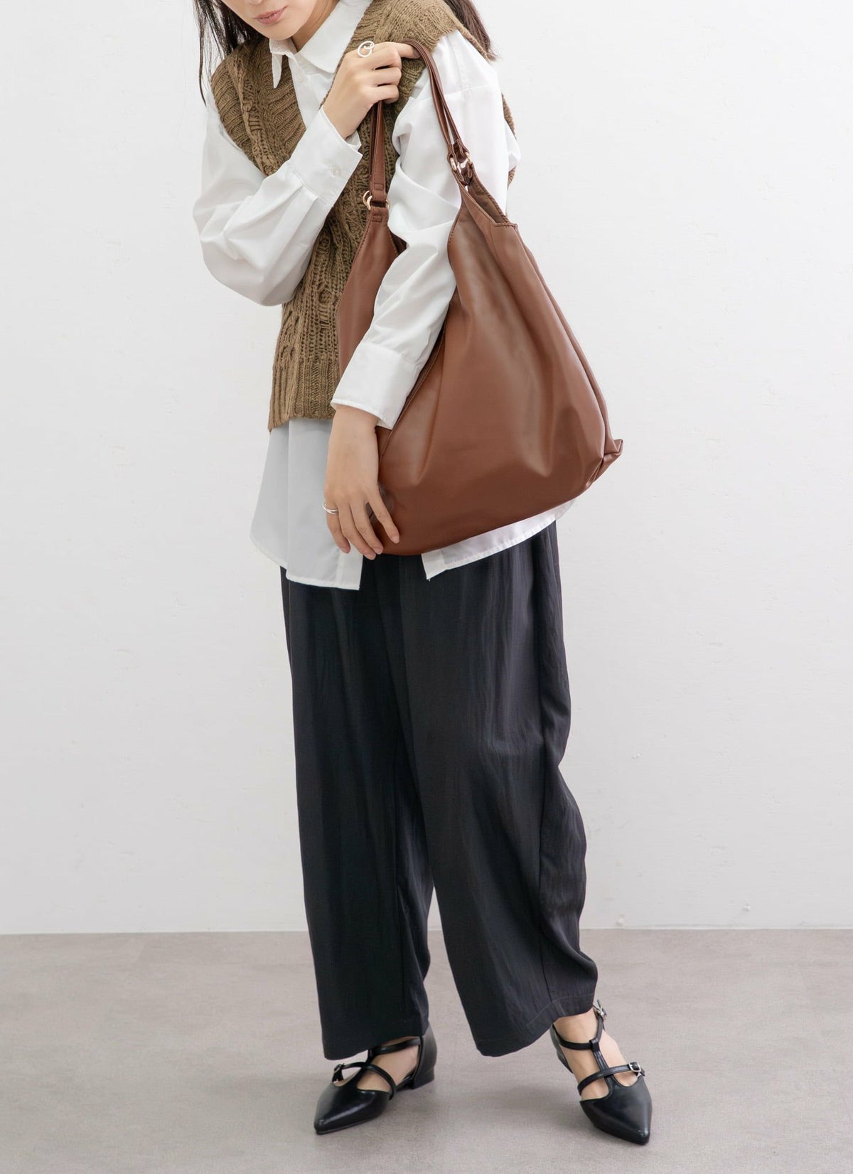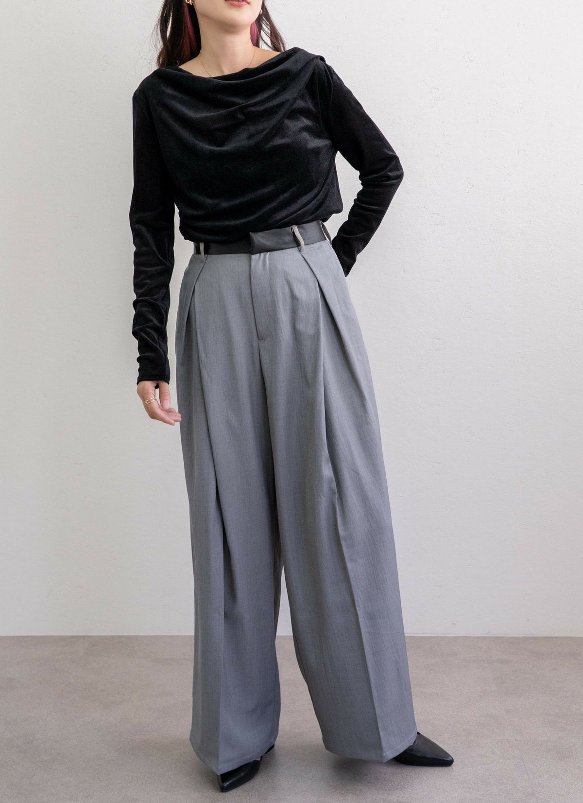revoam【ウエストのレザーがポイントのタックパンツ】 【20%OFF】ウエストレザータックパンツ