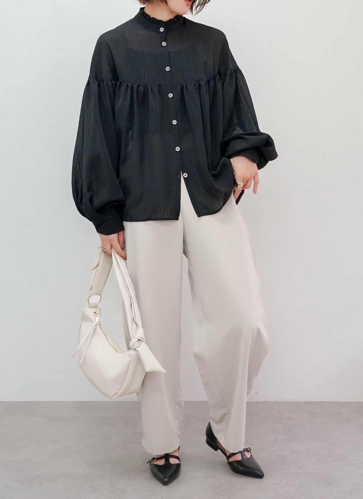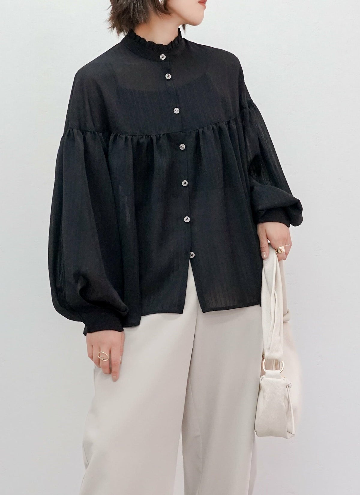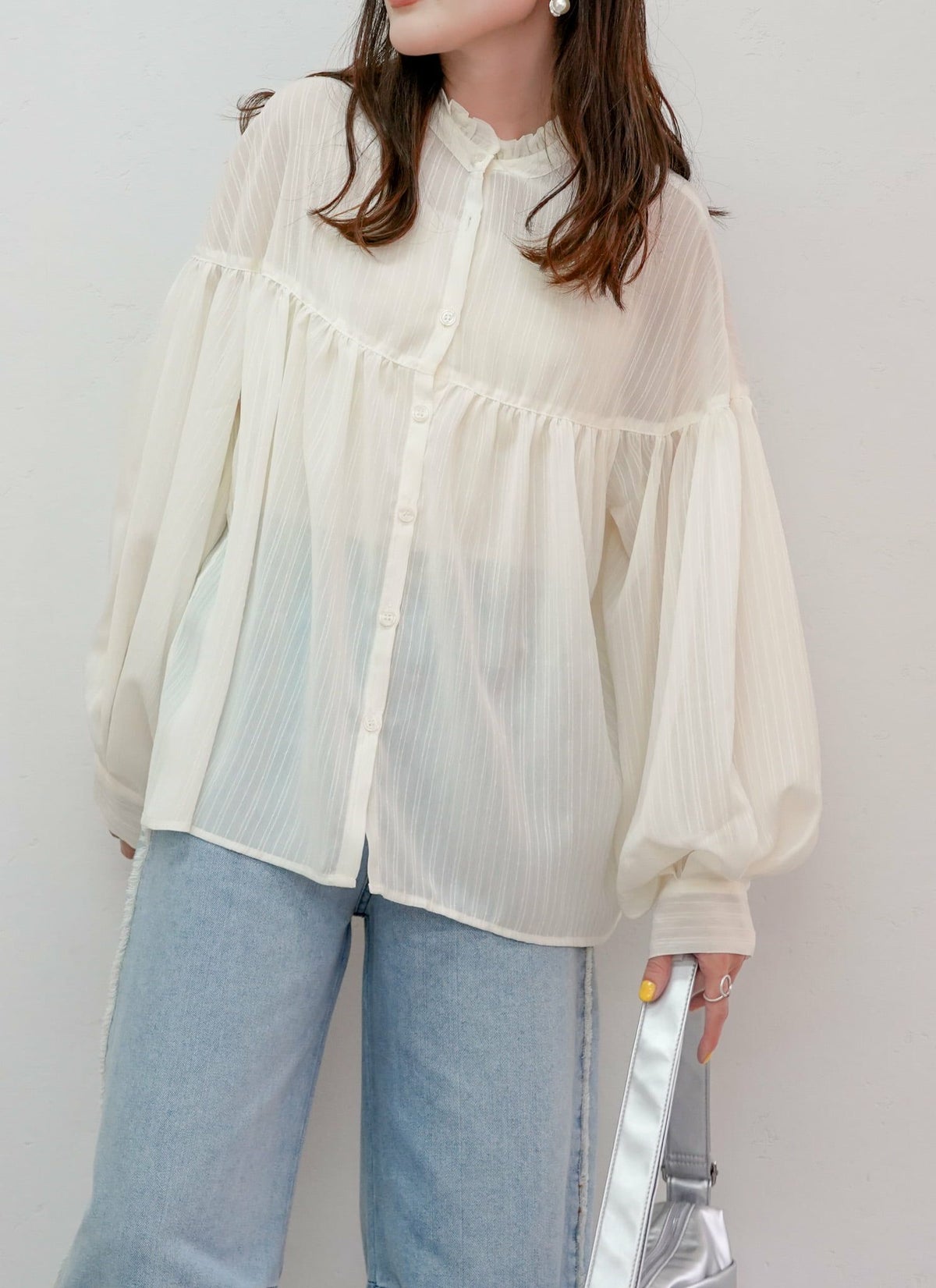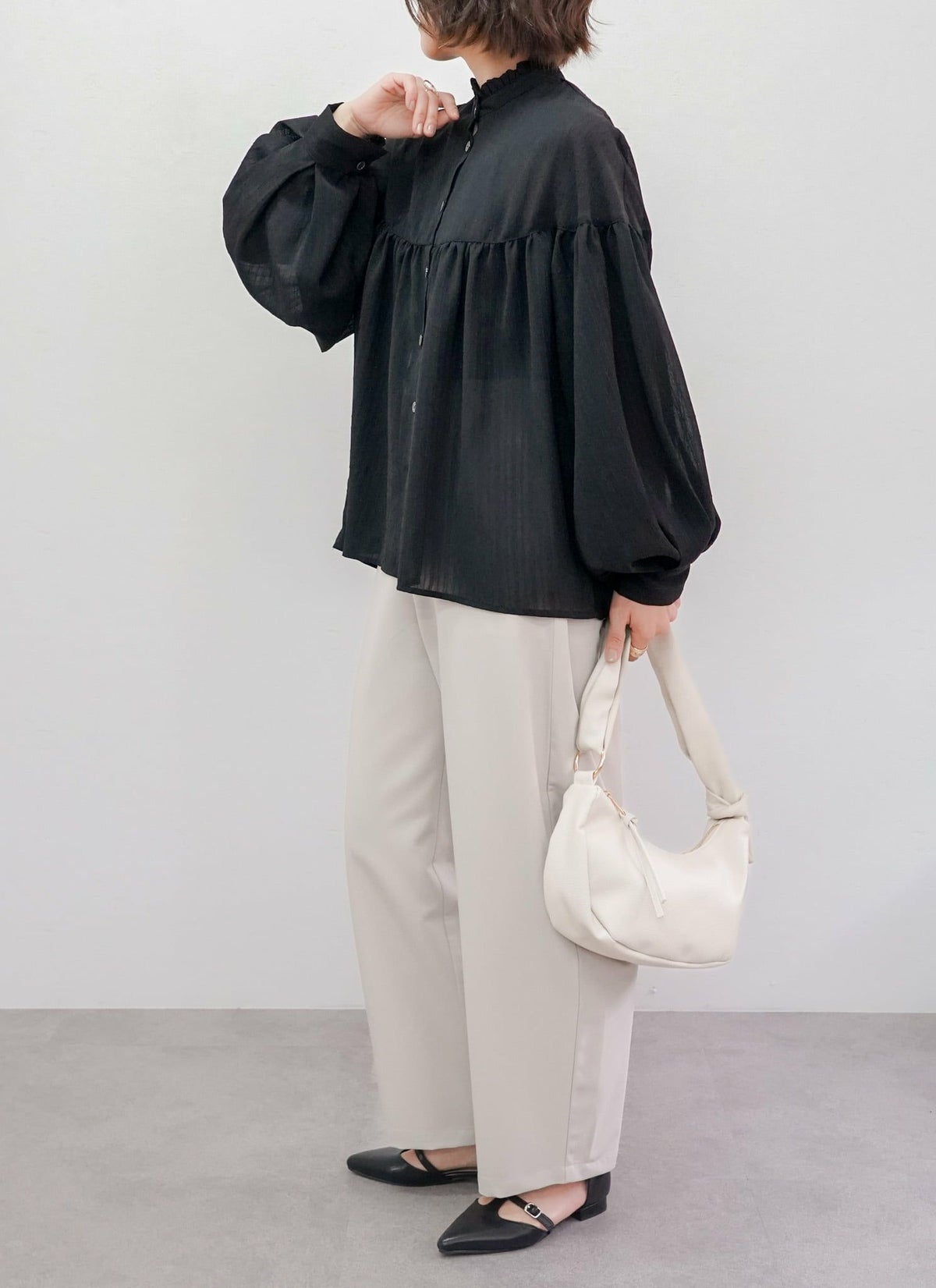 revoam【シアー素材でトレンド感UP! 着回ししやすいフリルブラウス】 【10%OFF】シフォンギャザーブラウス