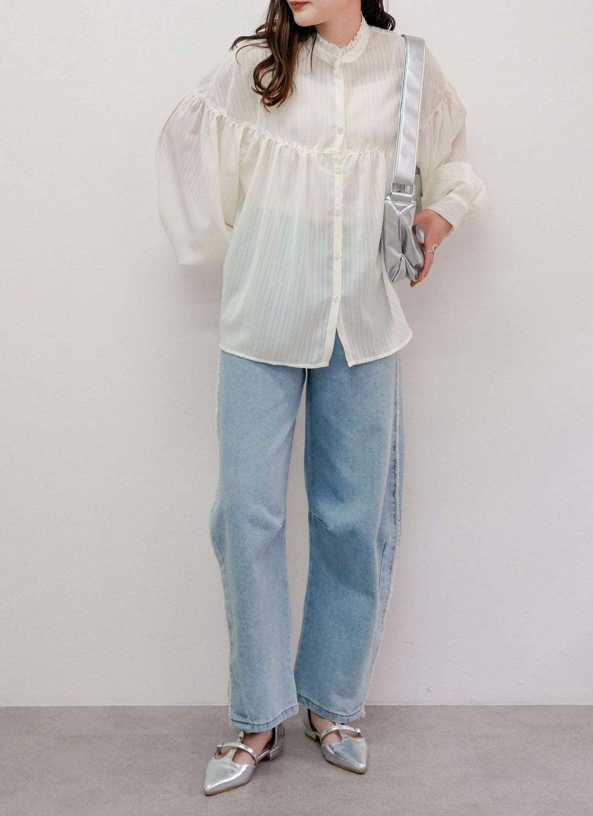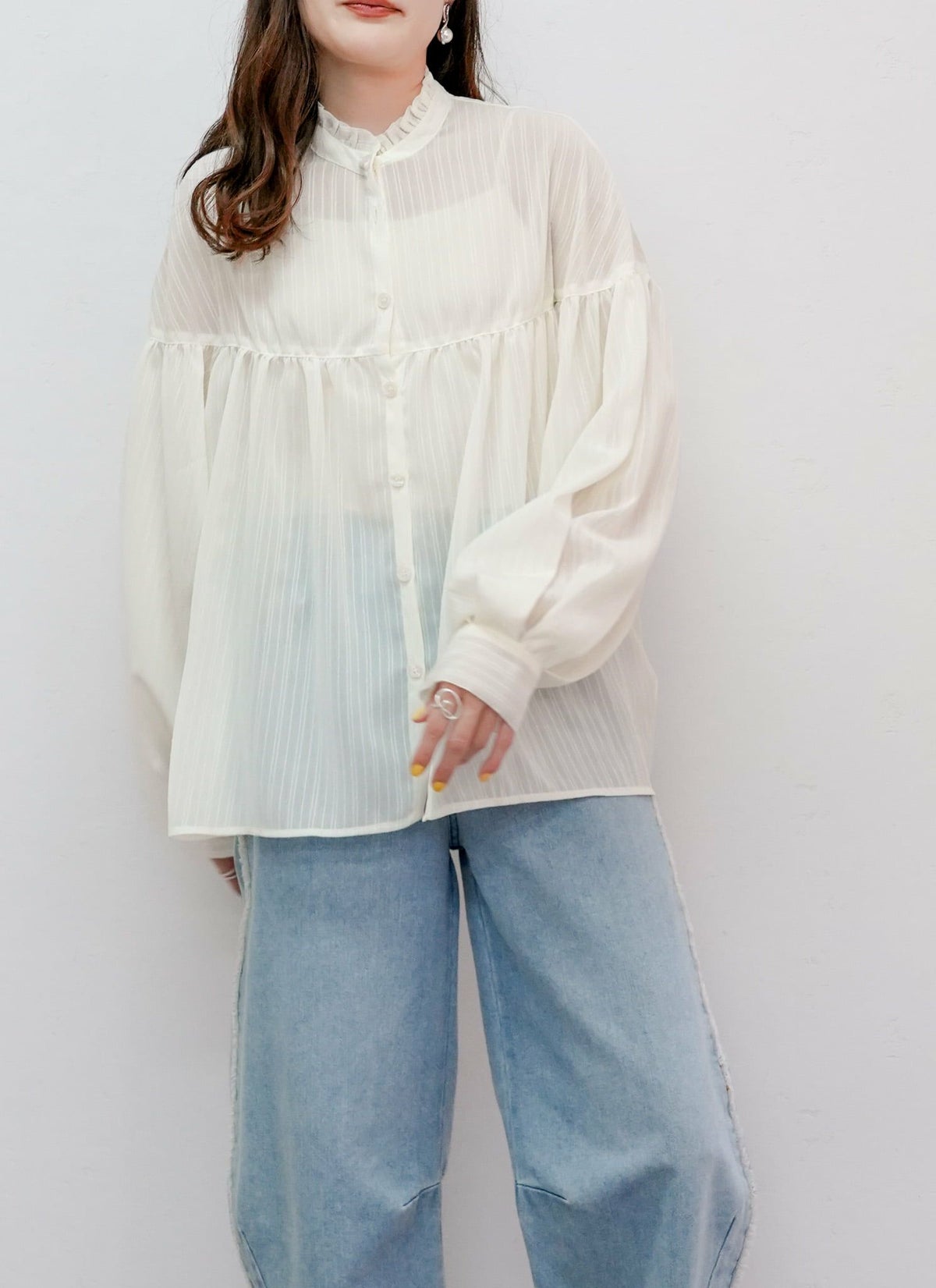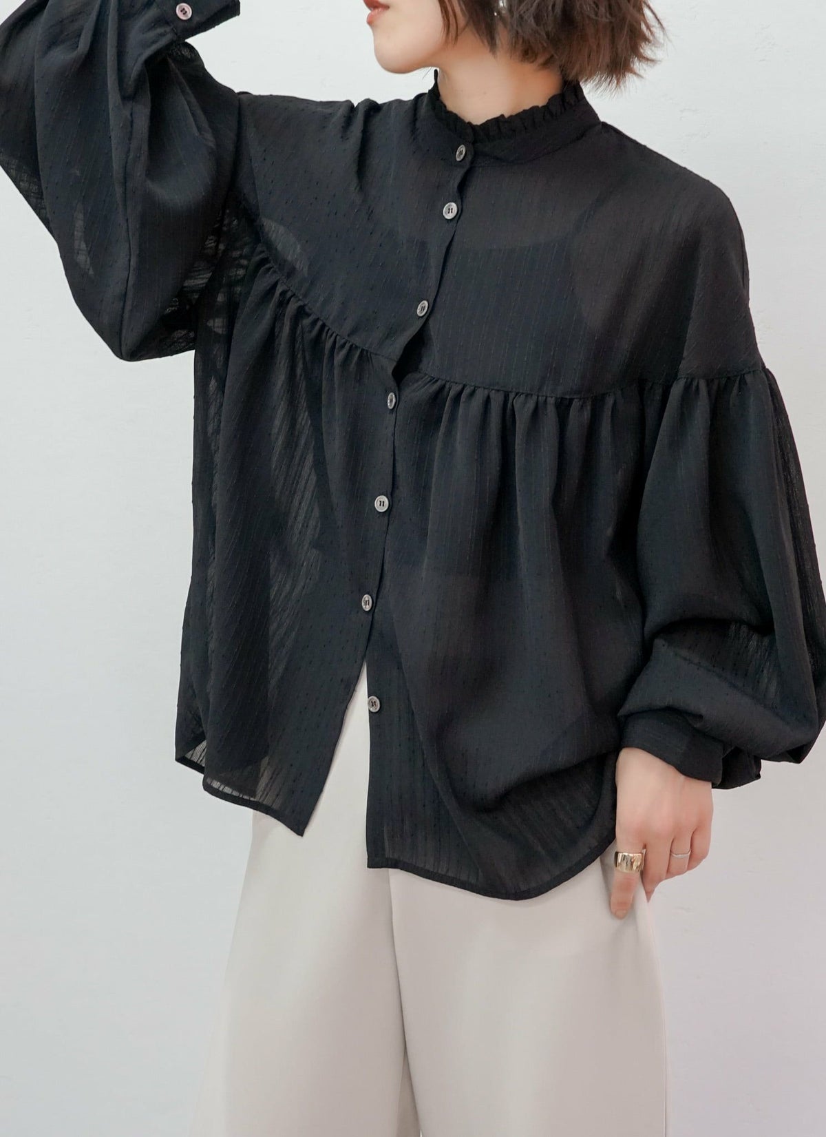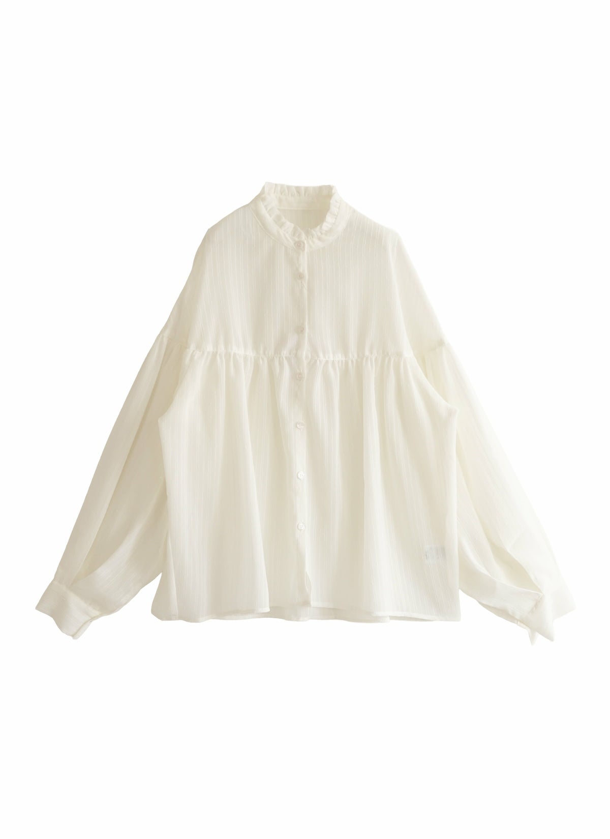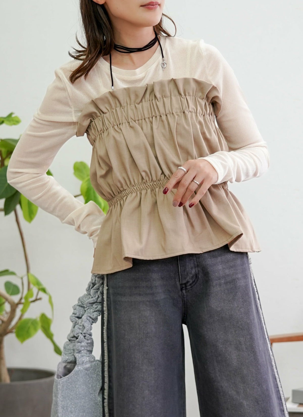 revoam【シアー素材でトレンド感UP! 着回ししやすいフリルブラウス】 【10%OFF】シフォンギャザーブラウス