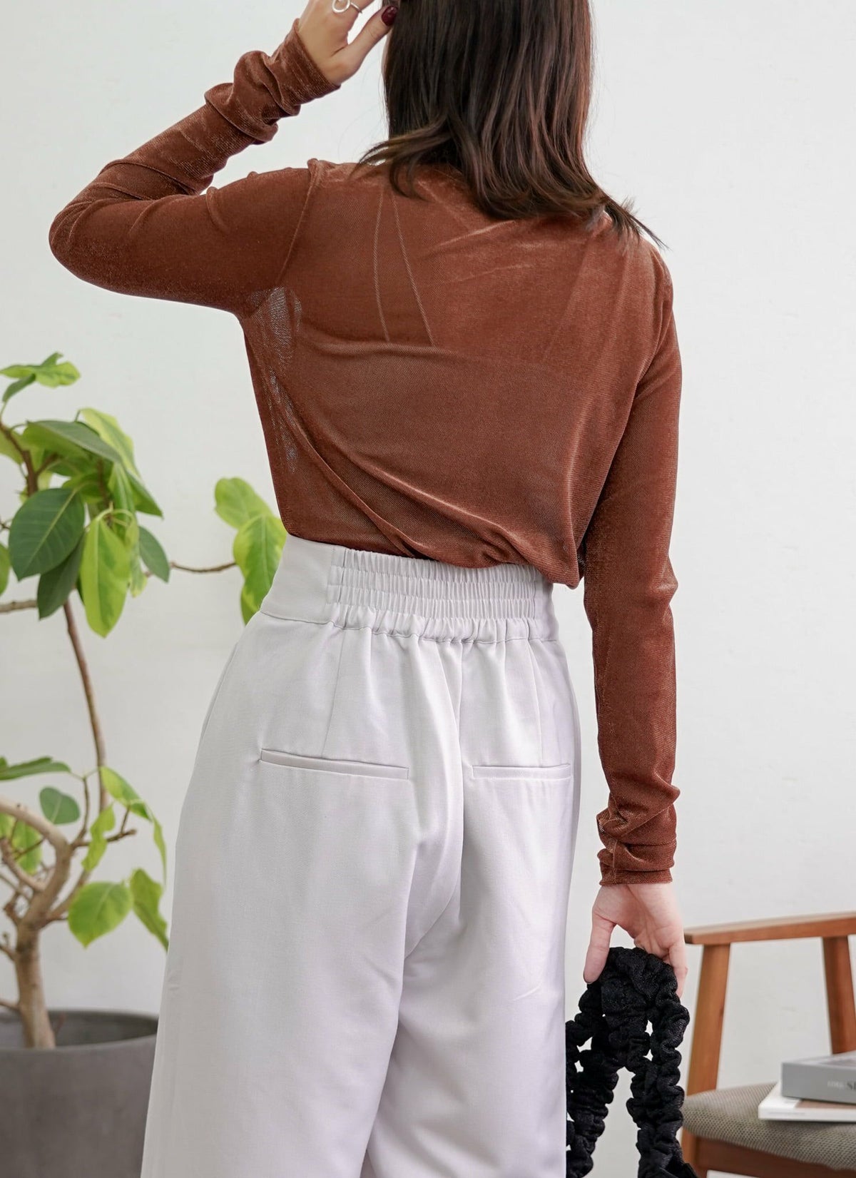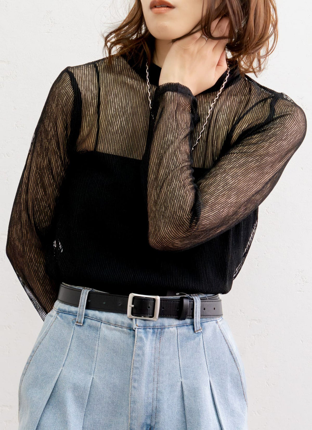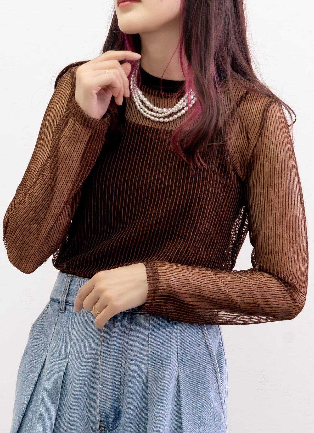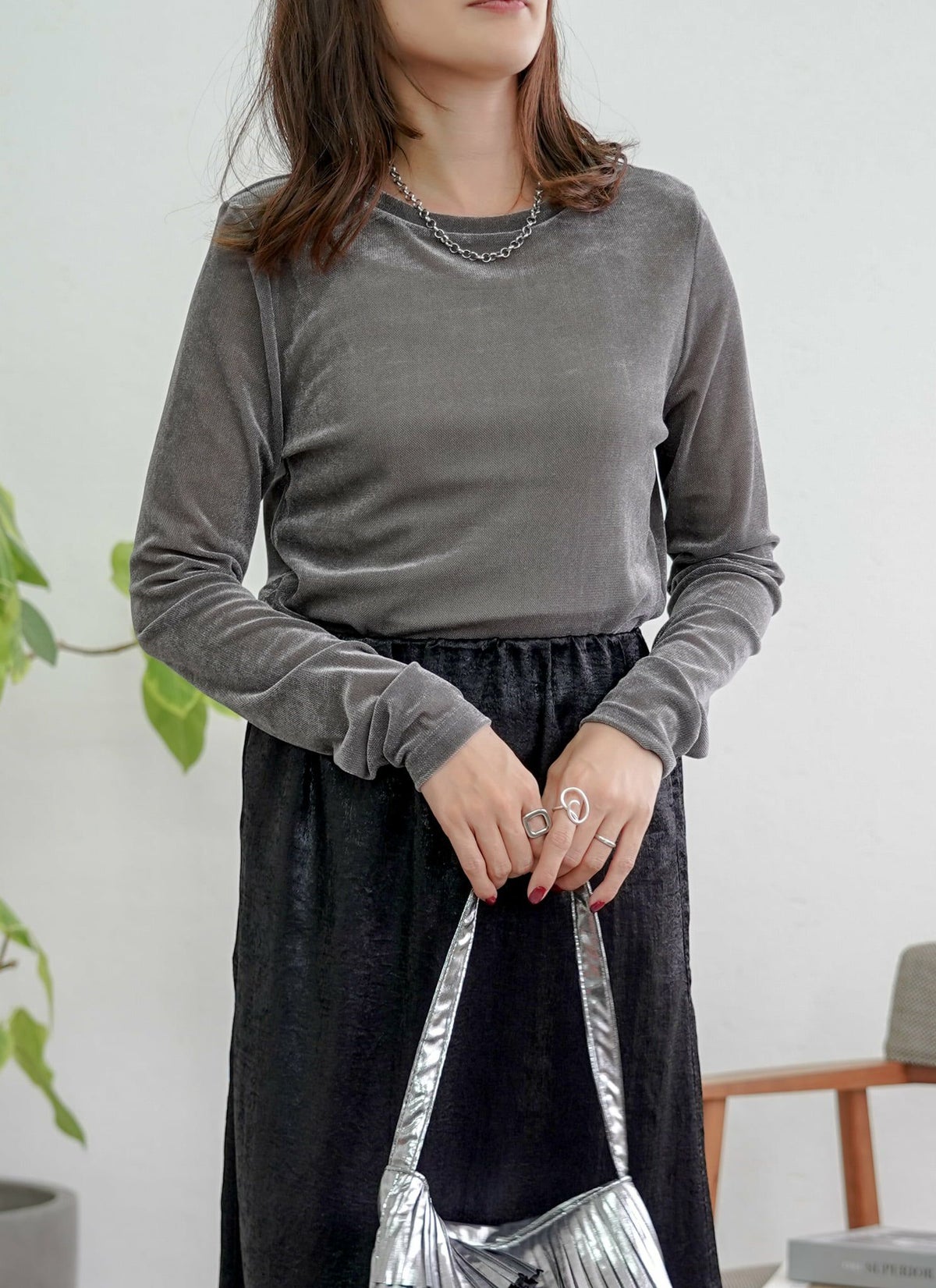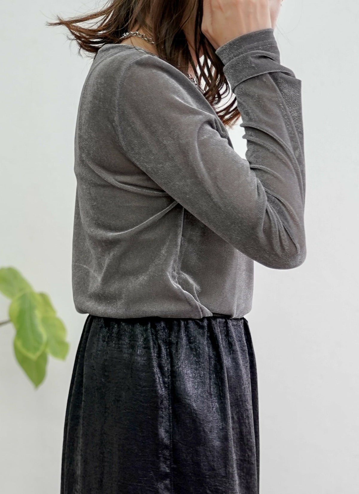 revoam【ヘルシーさと上品さを兼ね備えた程よいシアー感のベロアトップス】 【10%OFF】シアーベロアロングTシャツ
