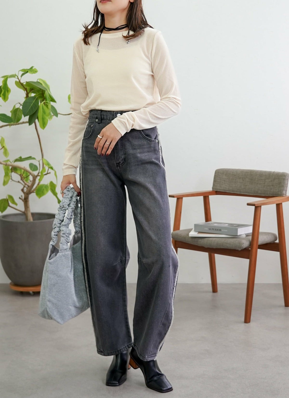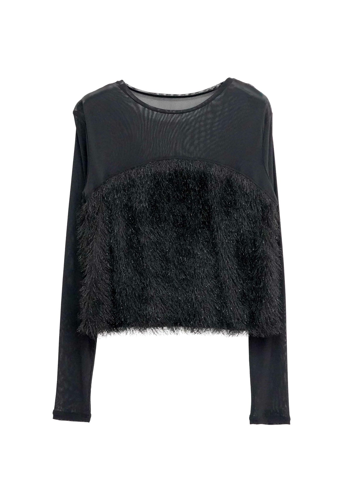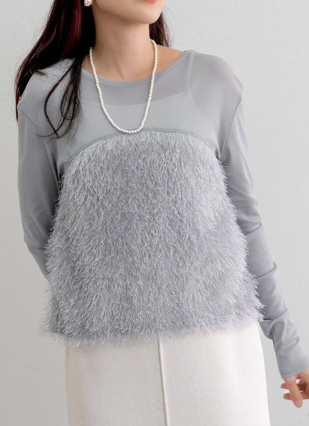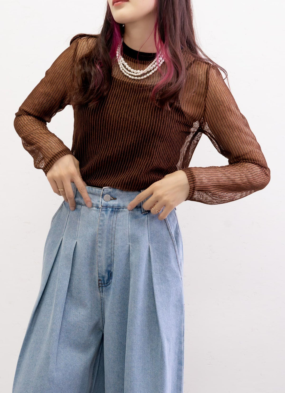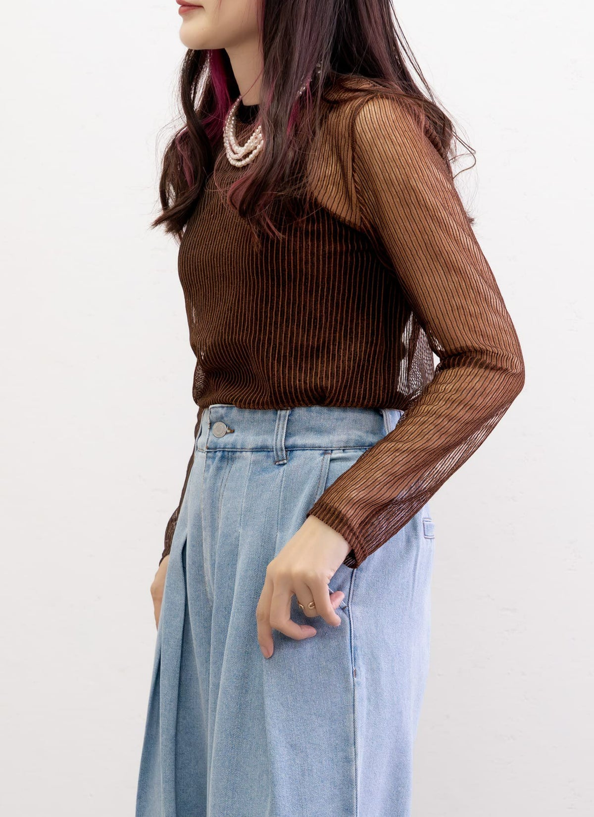 revoam【ヘルシーさと上品さを兼ね備えた程よいシアー感のベロアトップス】 【10%OFF】シアーベロアロングTシャツ