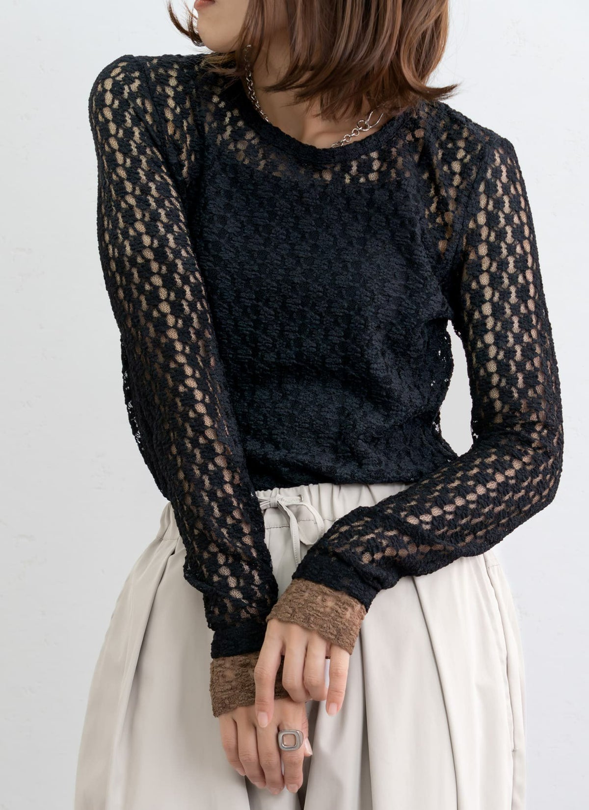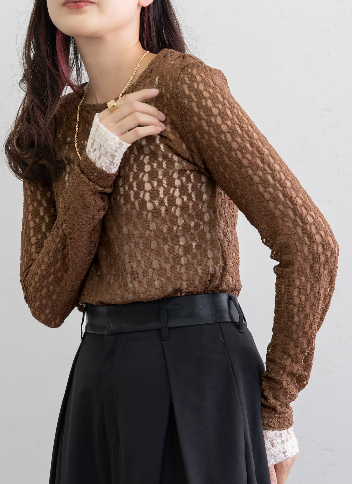 revoam【総レースの程よい透け感が、シンプルながらも華やかな印象に】 【10%OFF】カットレース配色プルオーバー