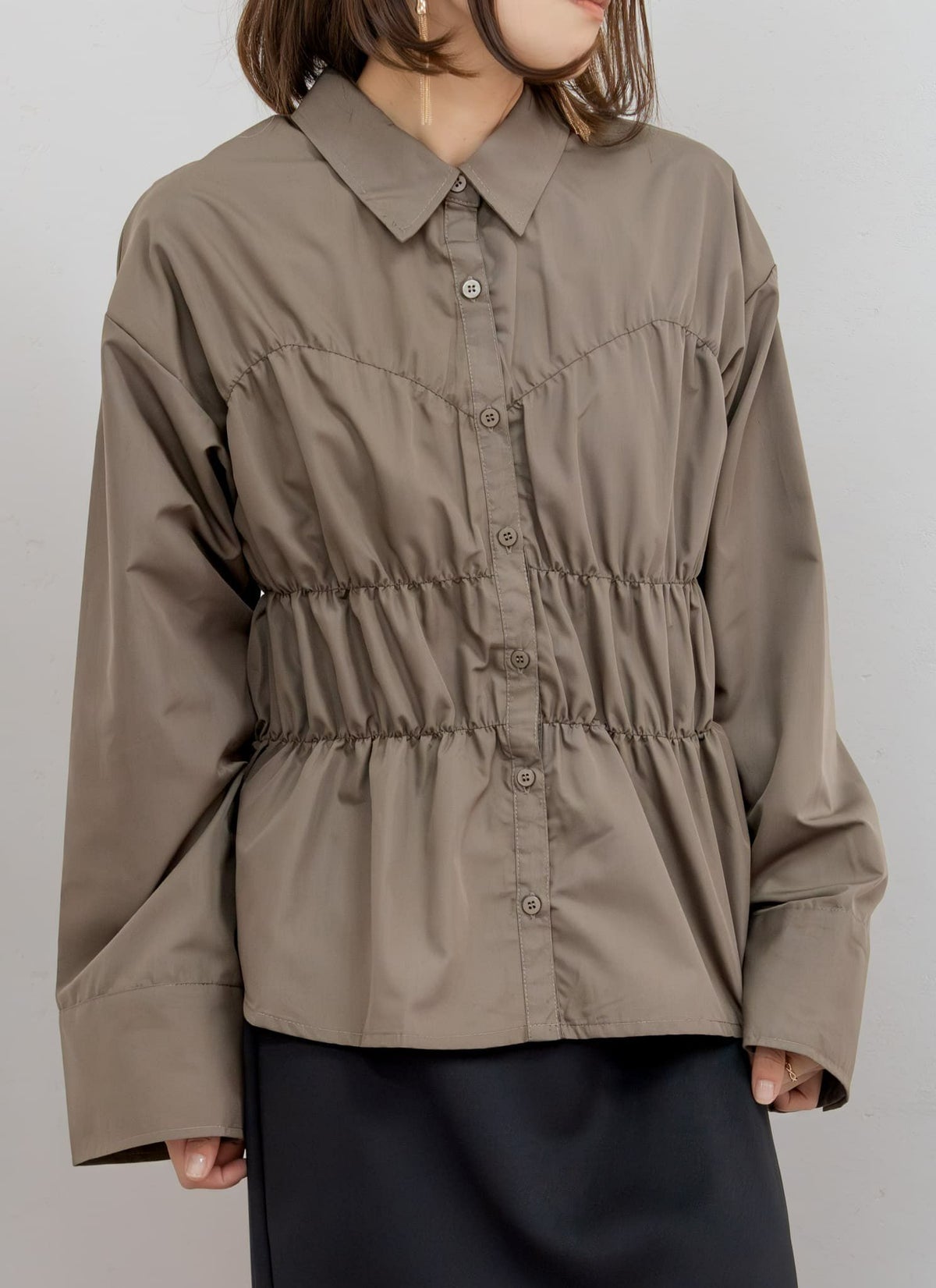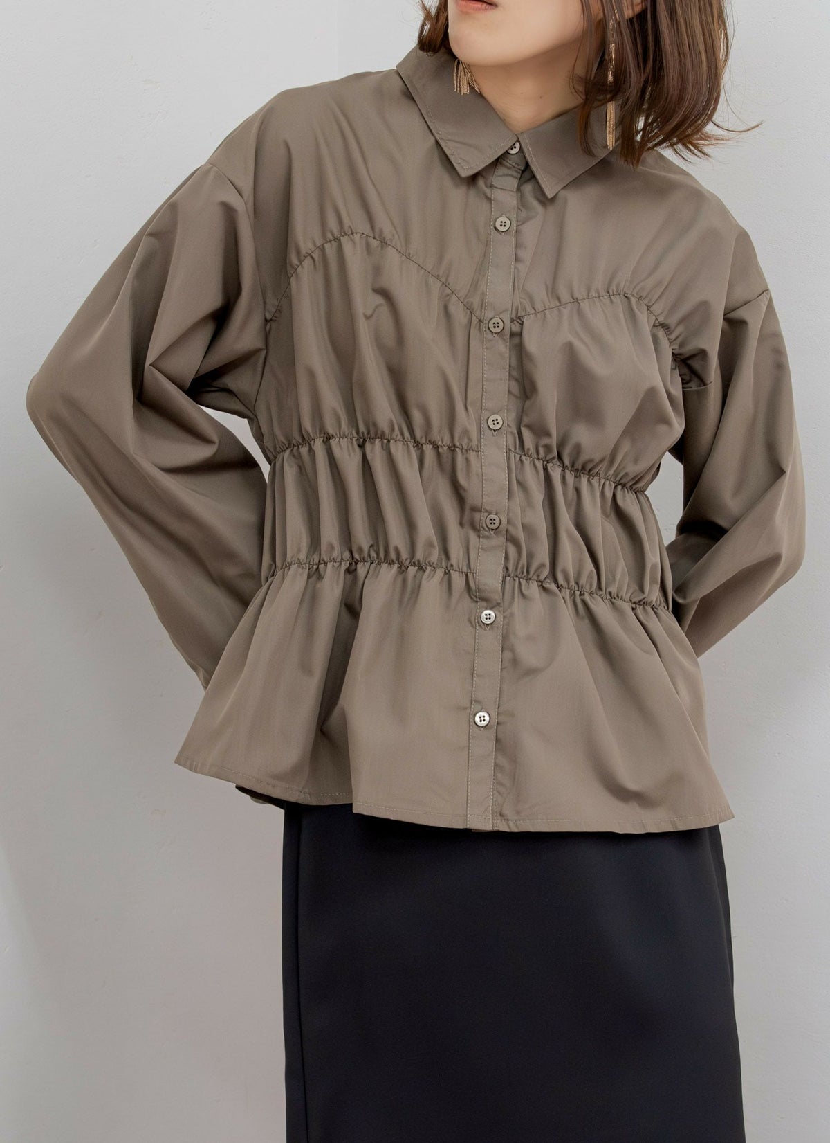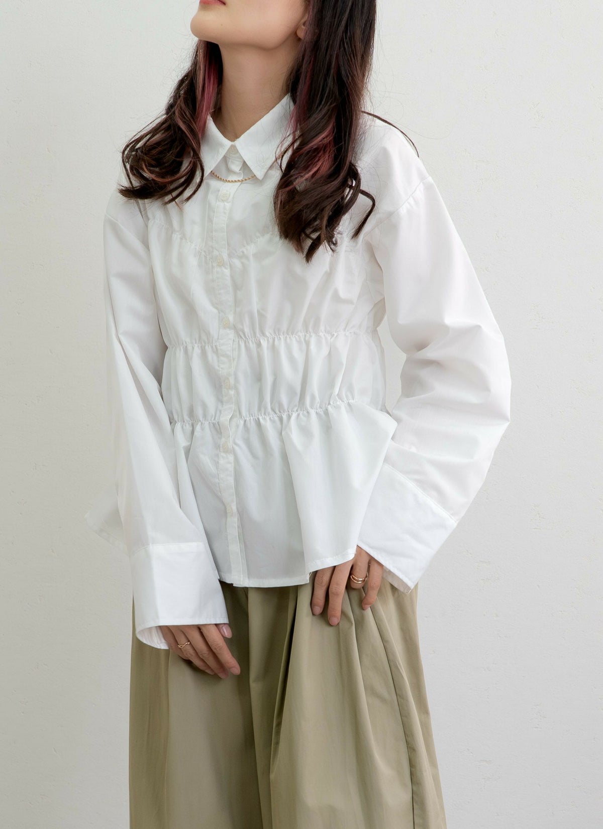 revoam【たっぷりとシャーリングが入った立体的なデザインのシャツ】 【10%OFF】ブロードシャーリングブラウス