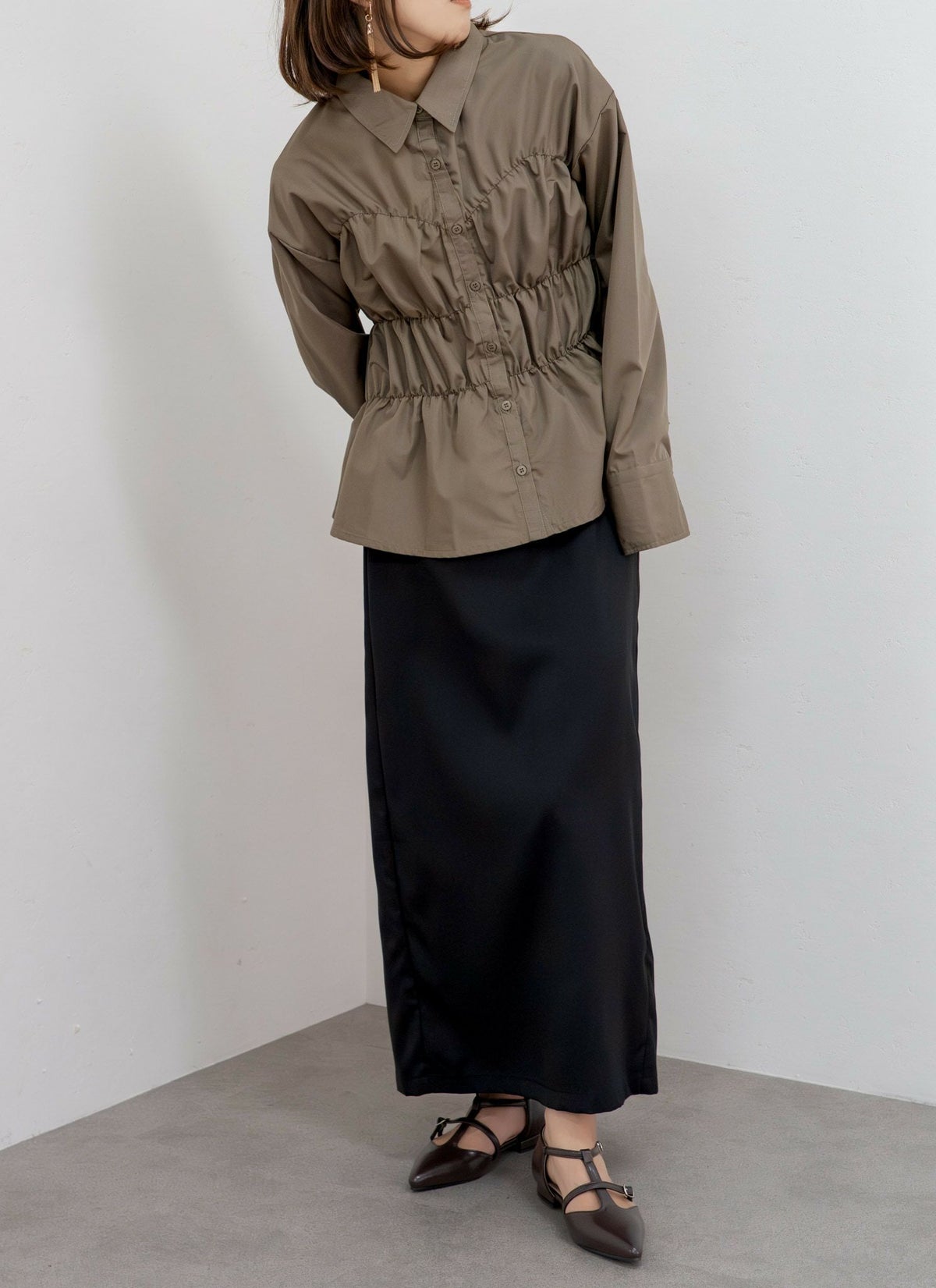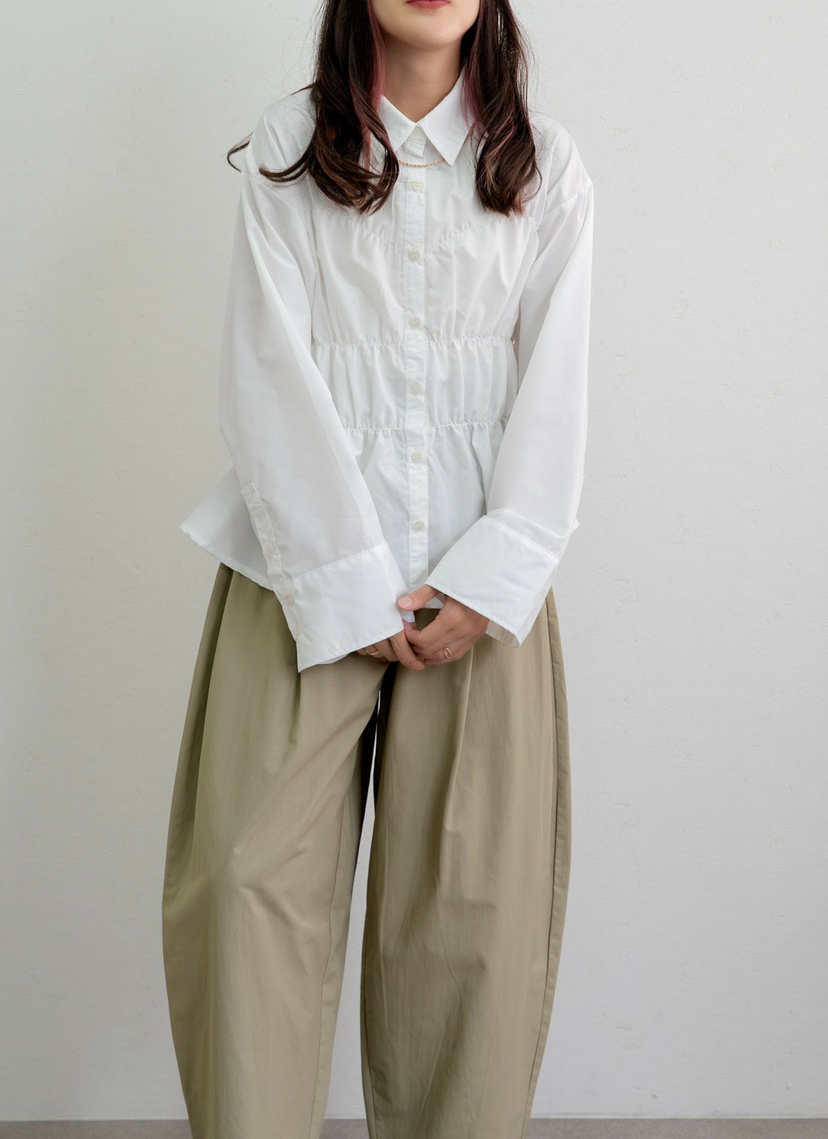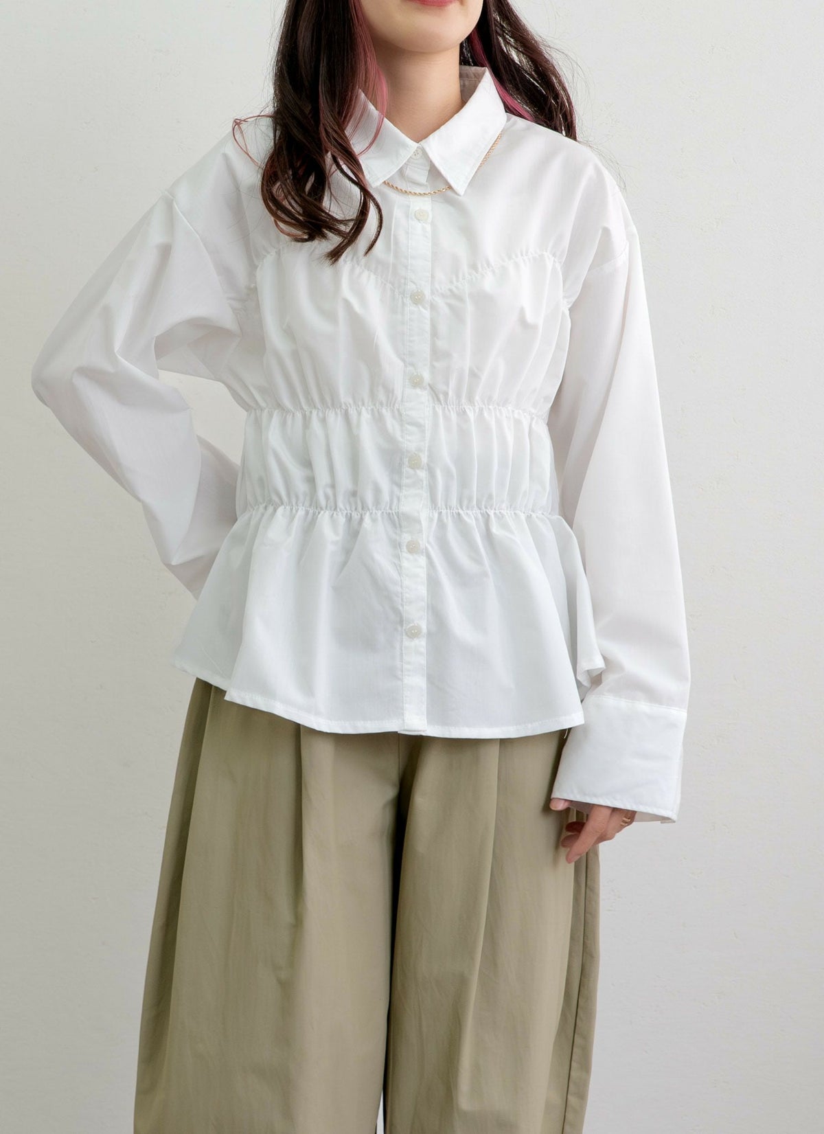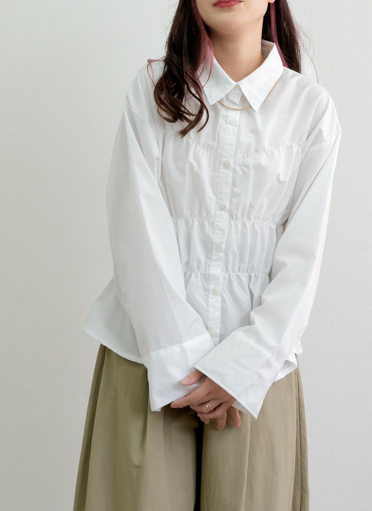 revoam【たっぷりとシャーリングが入った立体的なデザインのシャツ】 【10%OFF】ブロードシャーリングブラウス
