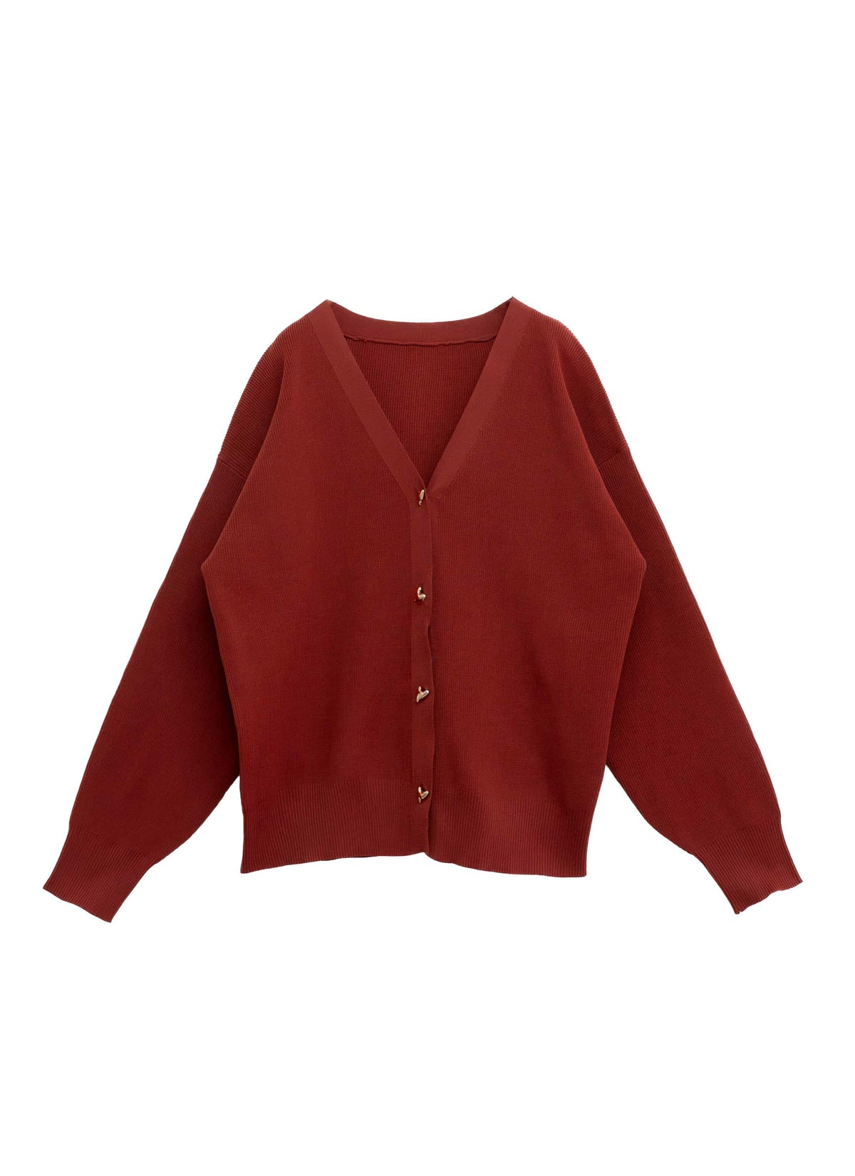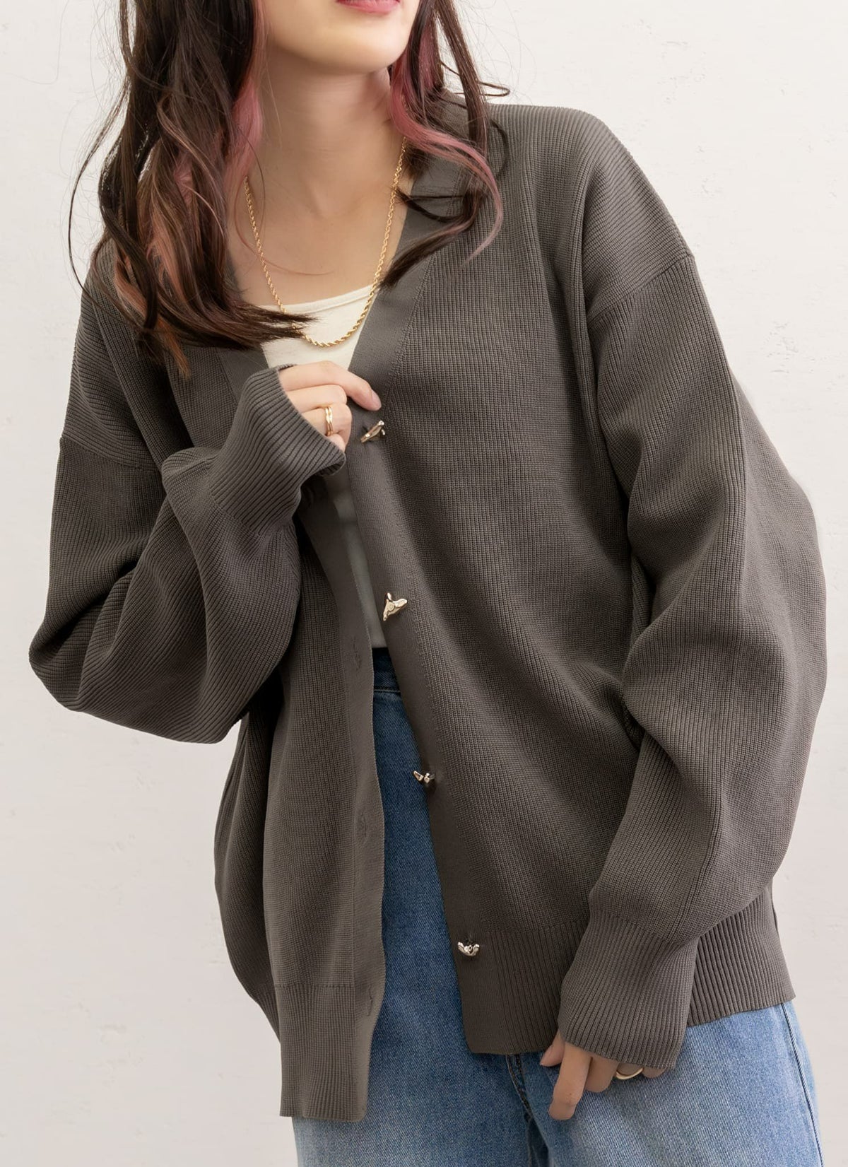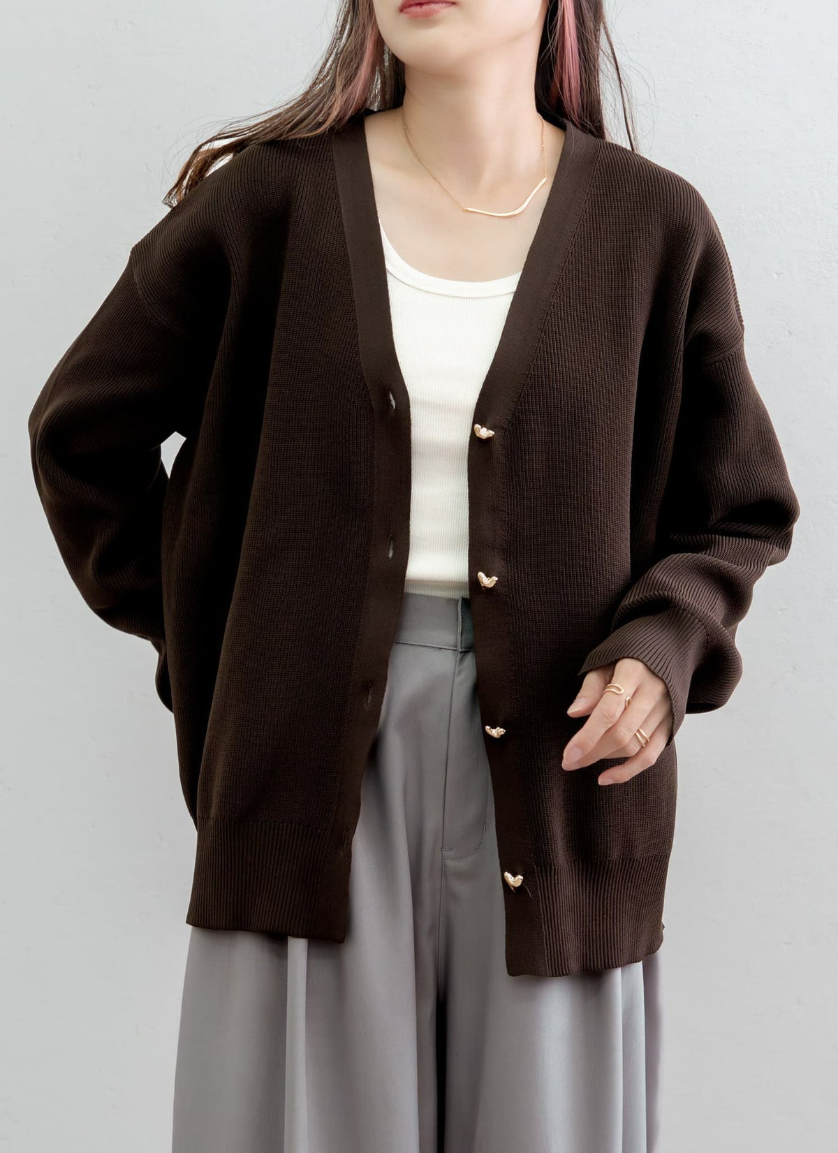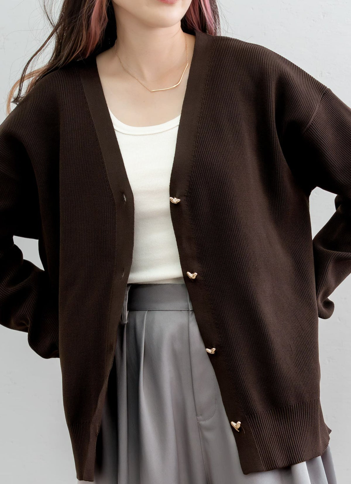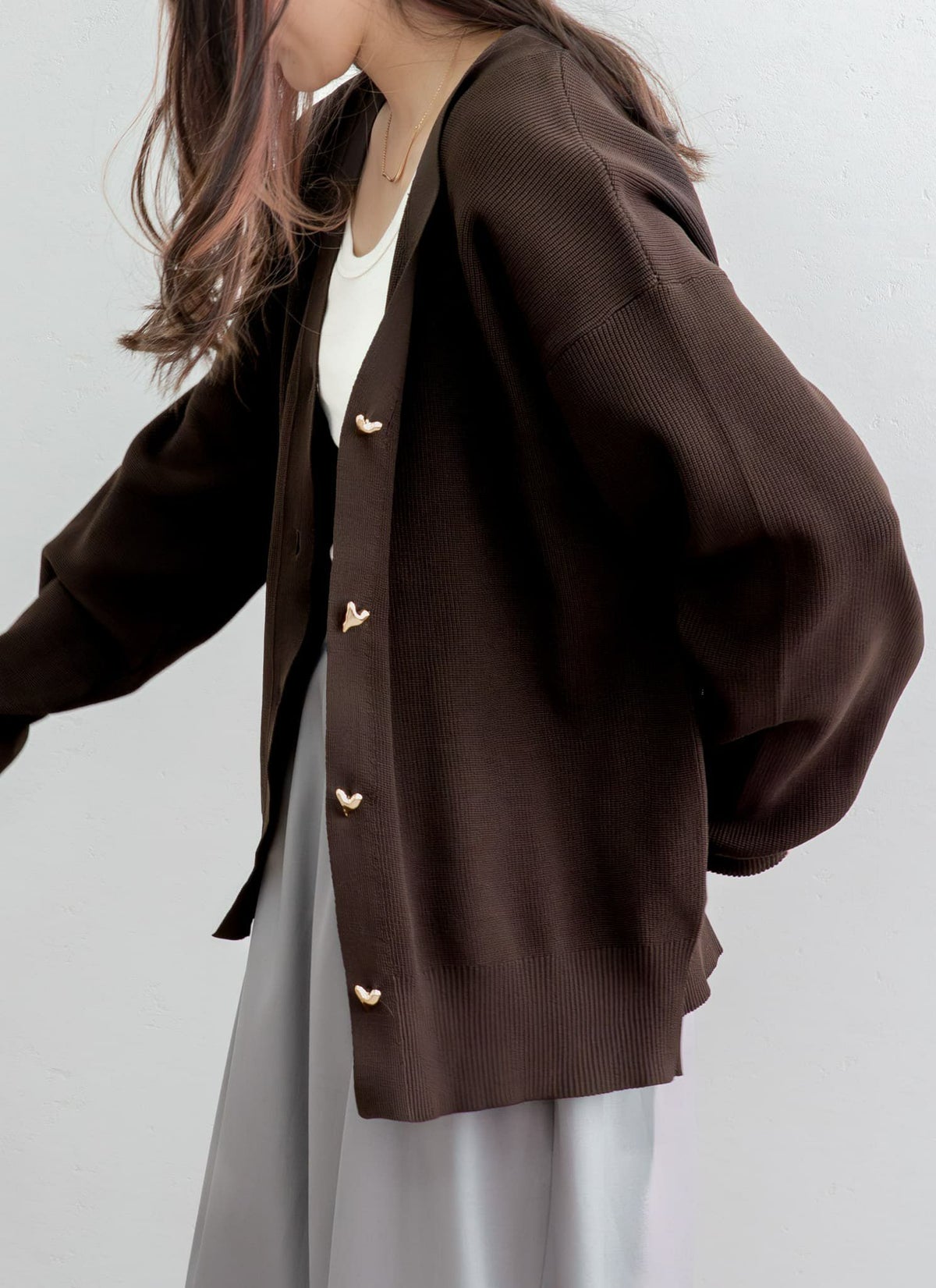 revoam【ほどよく甘さを添えたデザインのハートボタンカーディガン】 【20%OFF】ハートボタンニットカーディガン