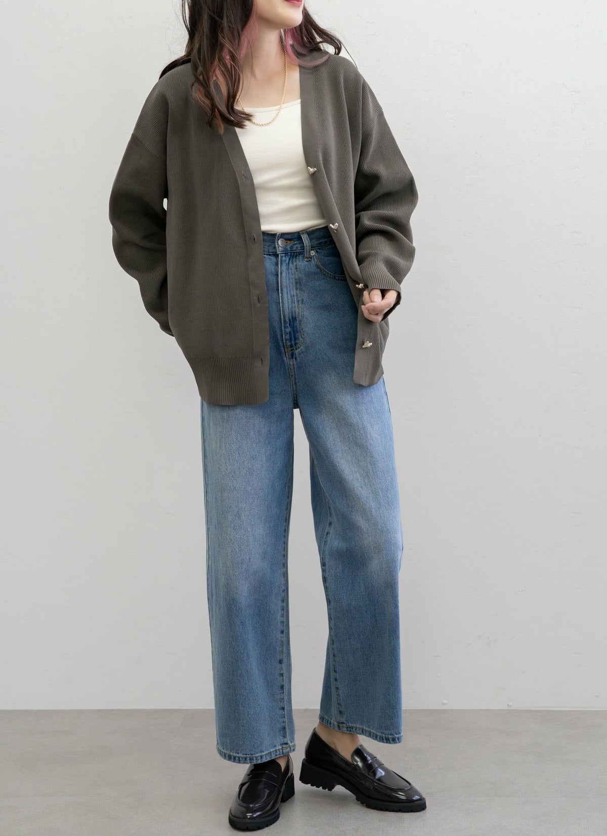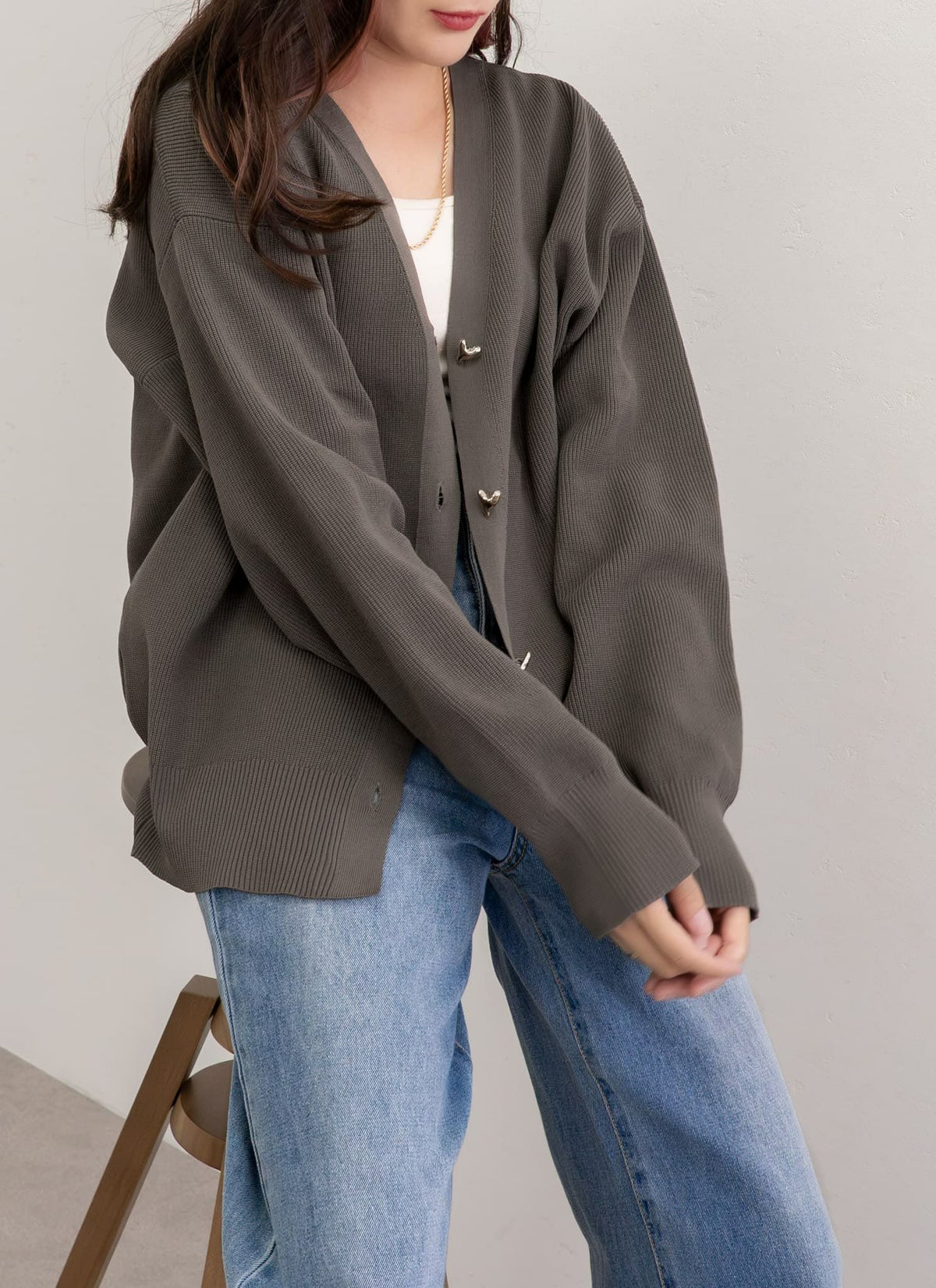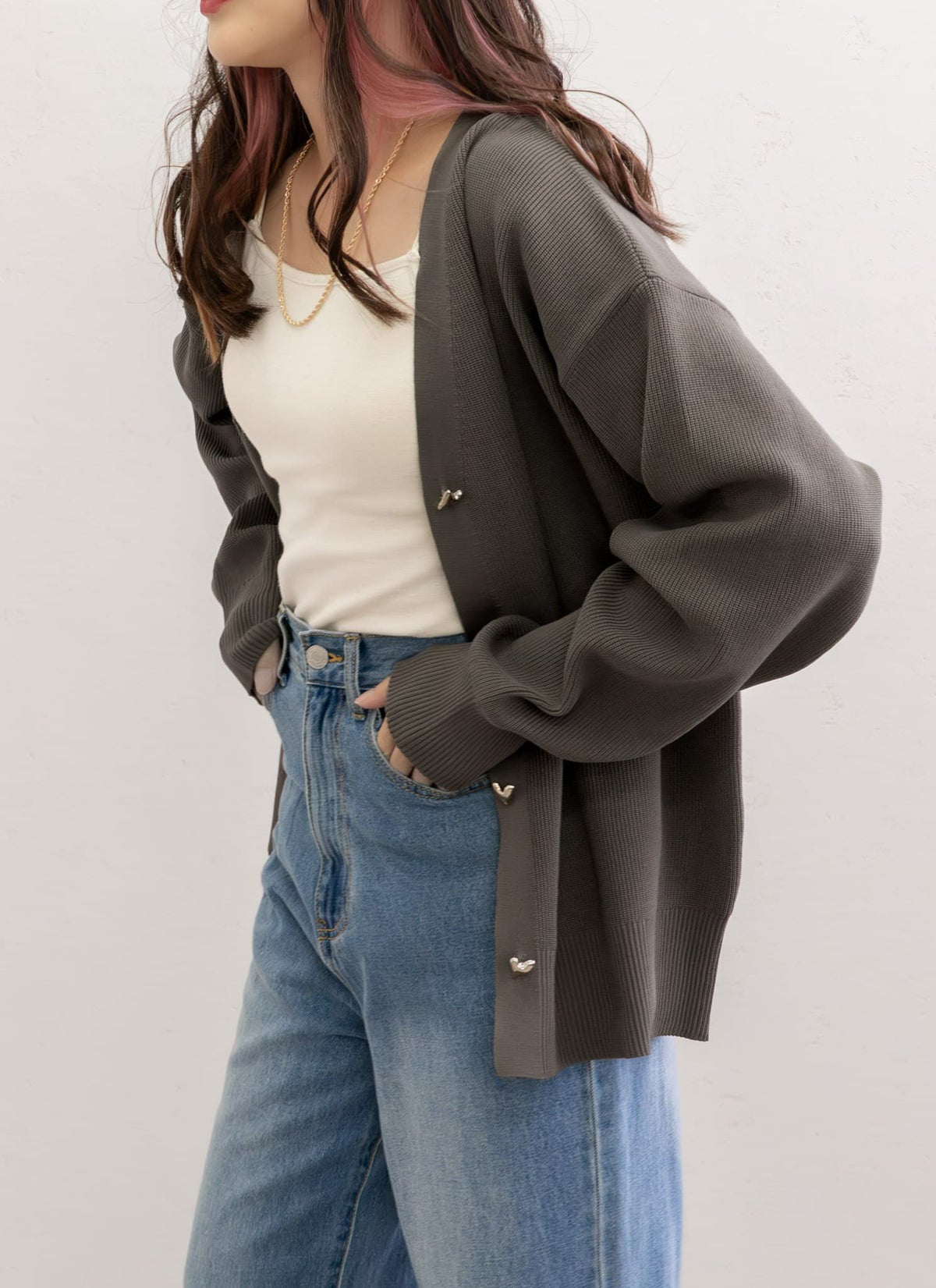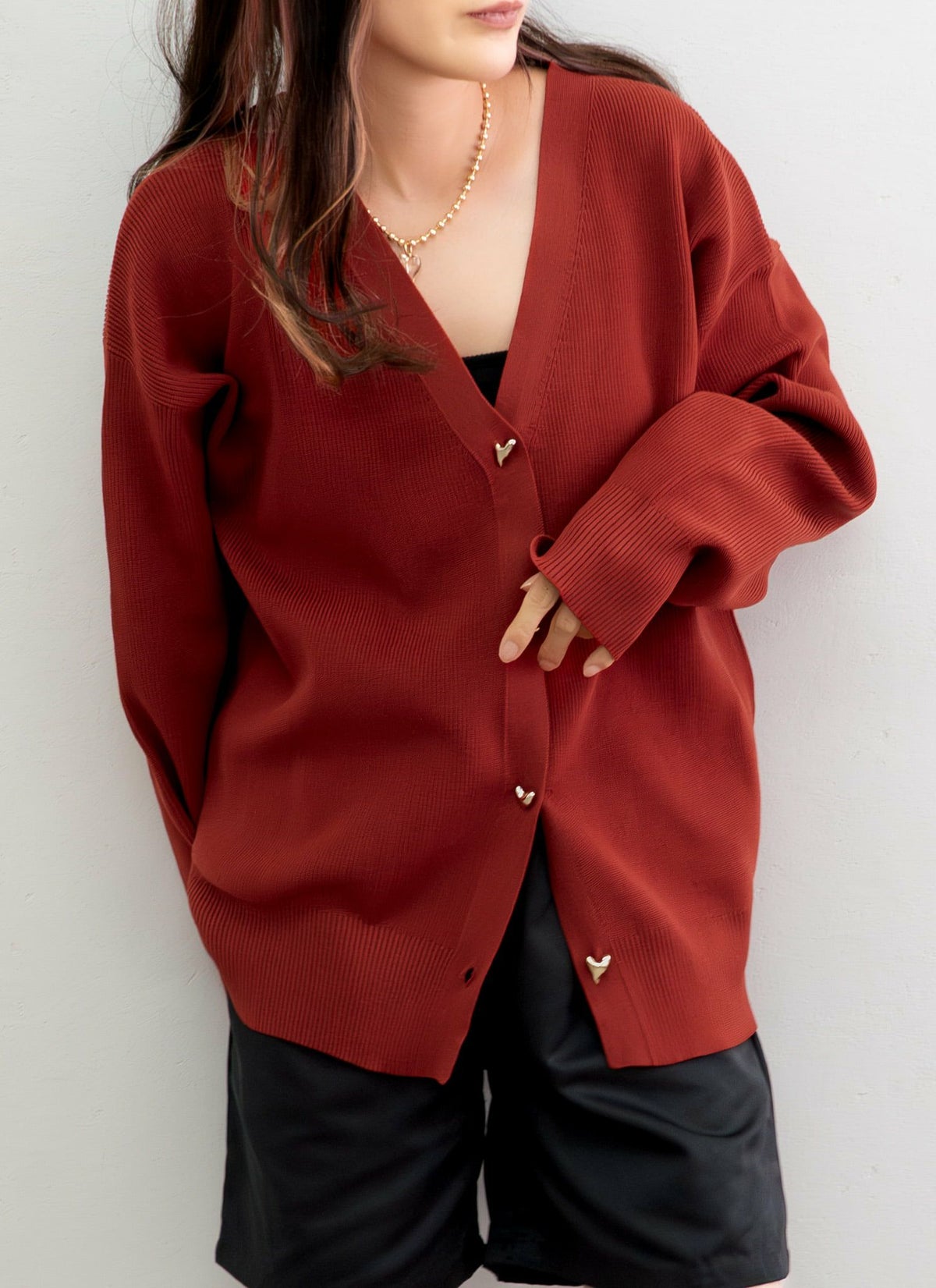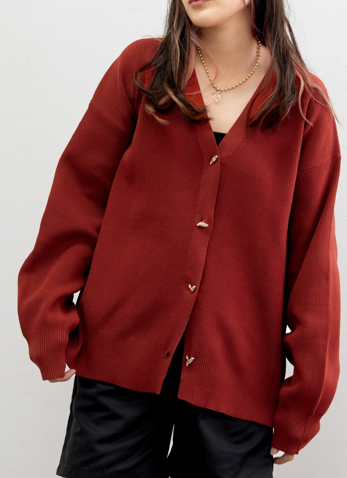revoam【ほどよく甘さを添えたデザインのハートボタンカーディガン】 【20%OFF】ハートボタンニットカーディガン