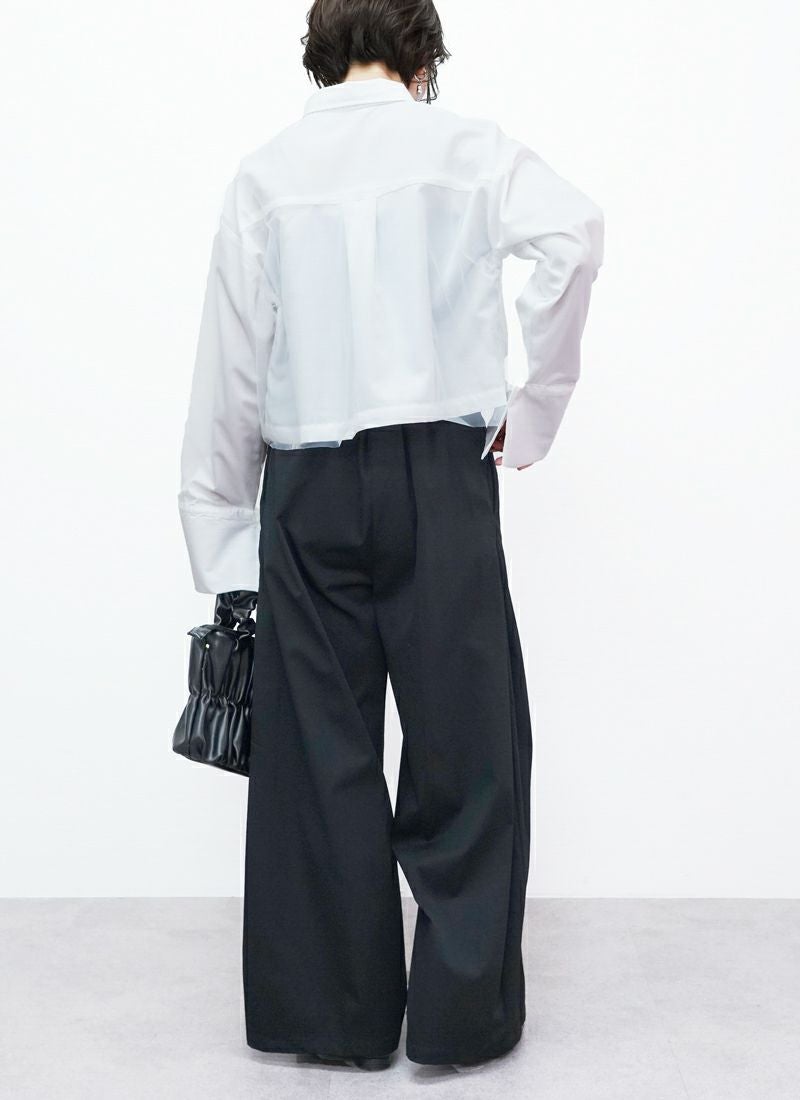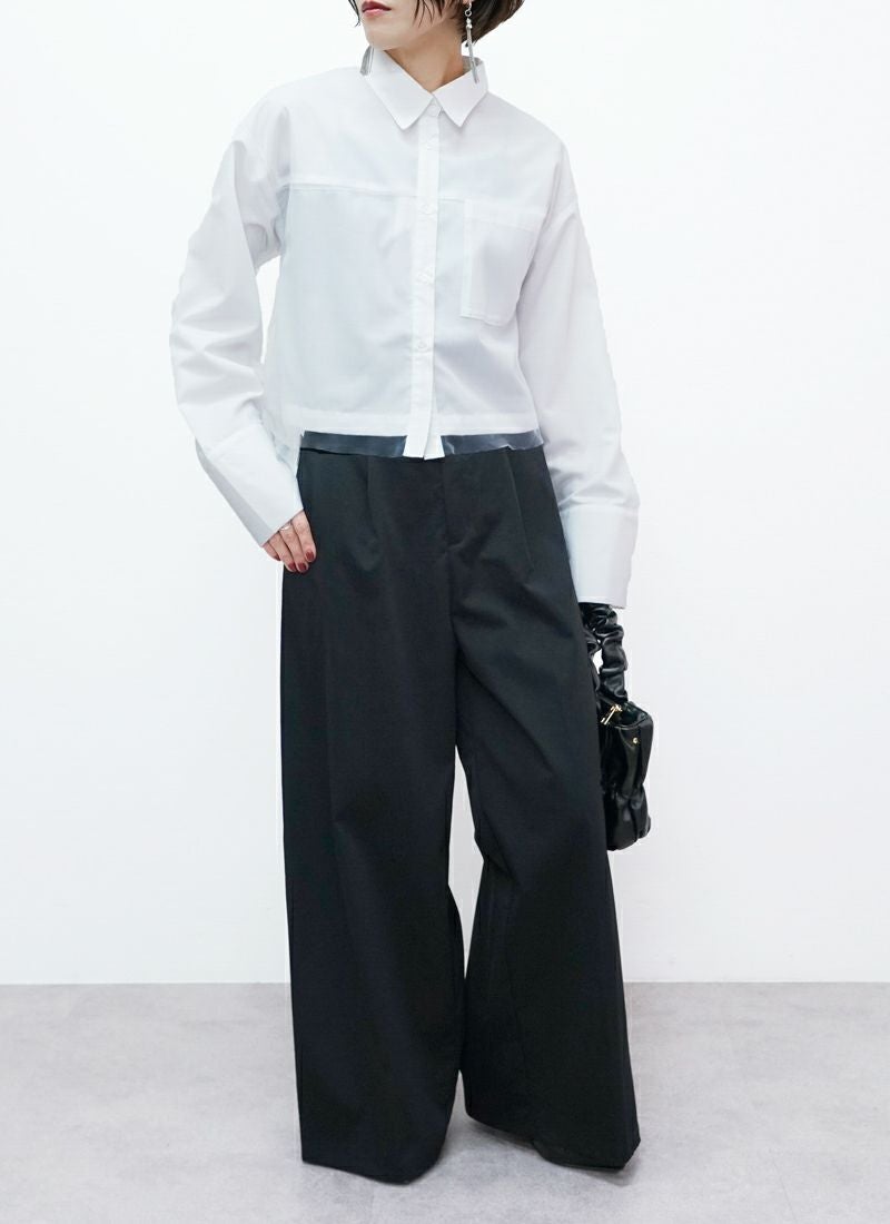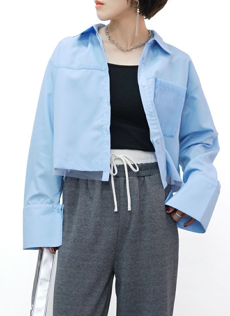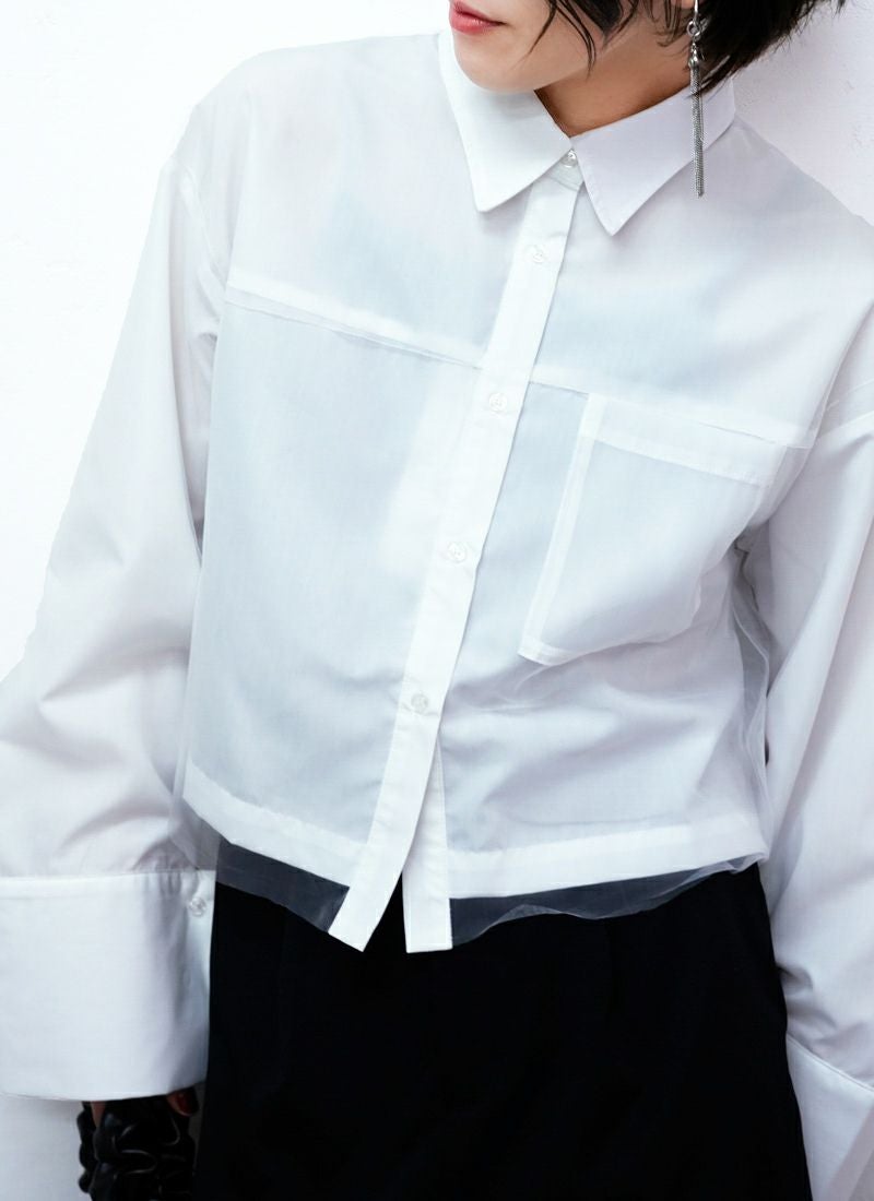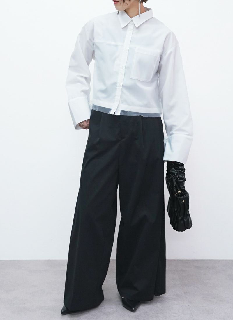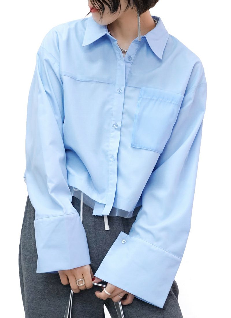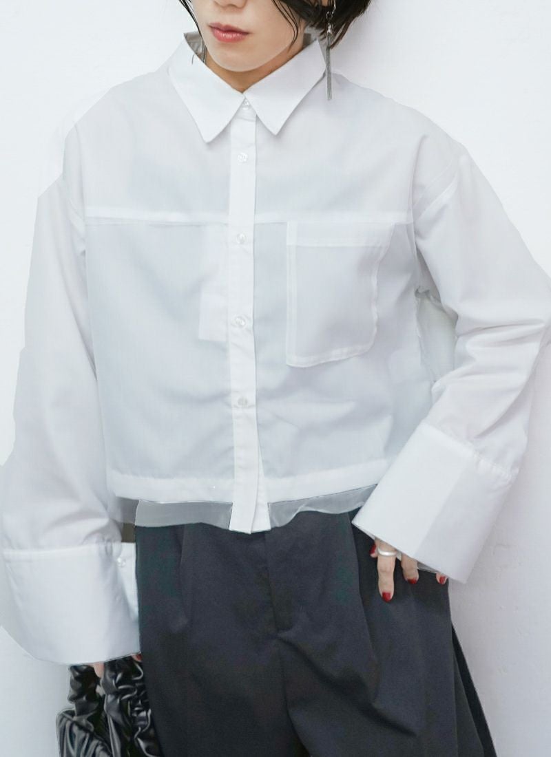 revoam【春色カラーで大人可愛い。ふんわりチュールがきらめく、レイヤード風ショートシャツ】 【20%OFF】チュールレイヤードショートシャツ