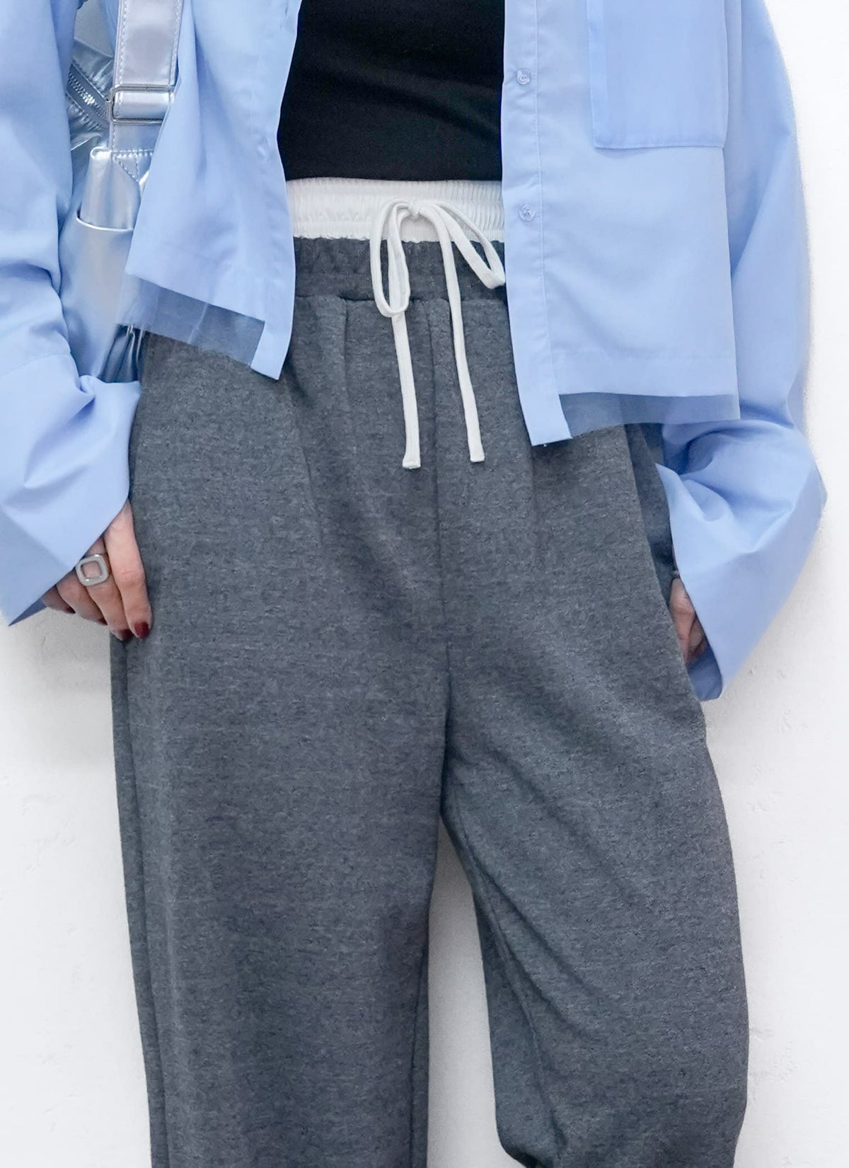revoam【トレンドのダブルウエストが1枚で楽しめるスウェットパンツ】 【15%OFF】裏毛ダブルウエストパンツ
