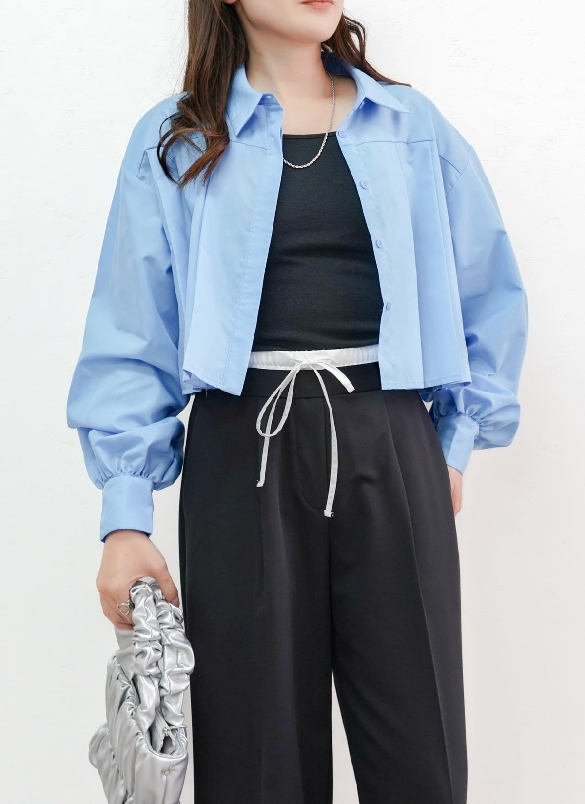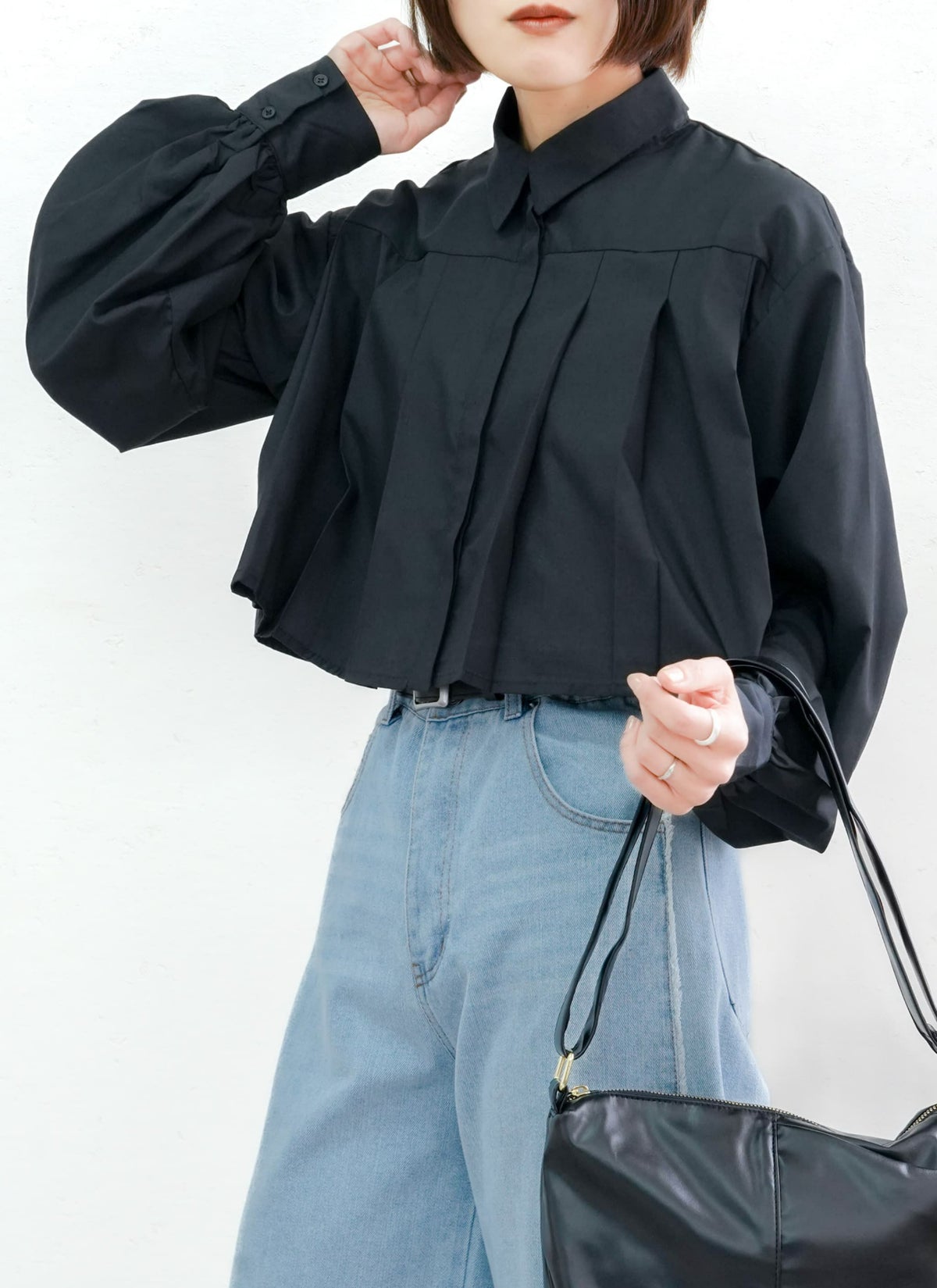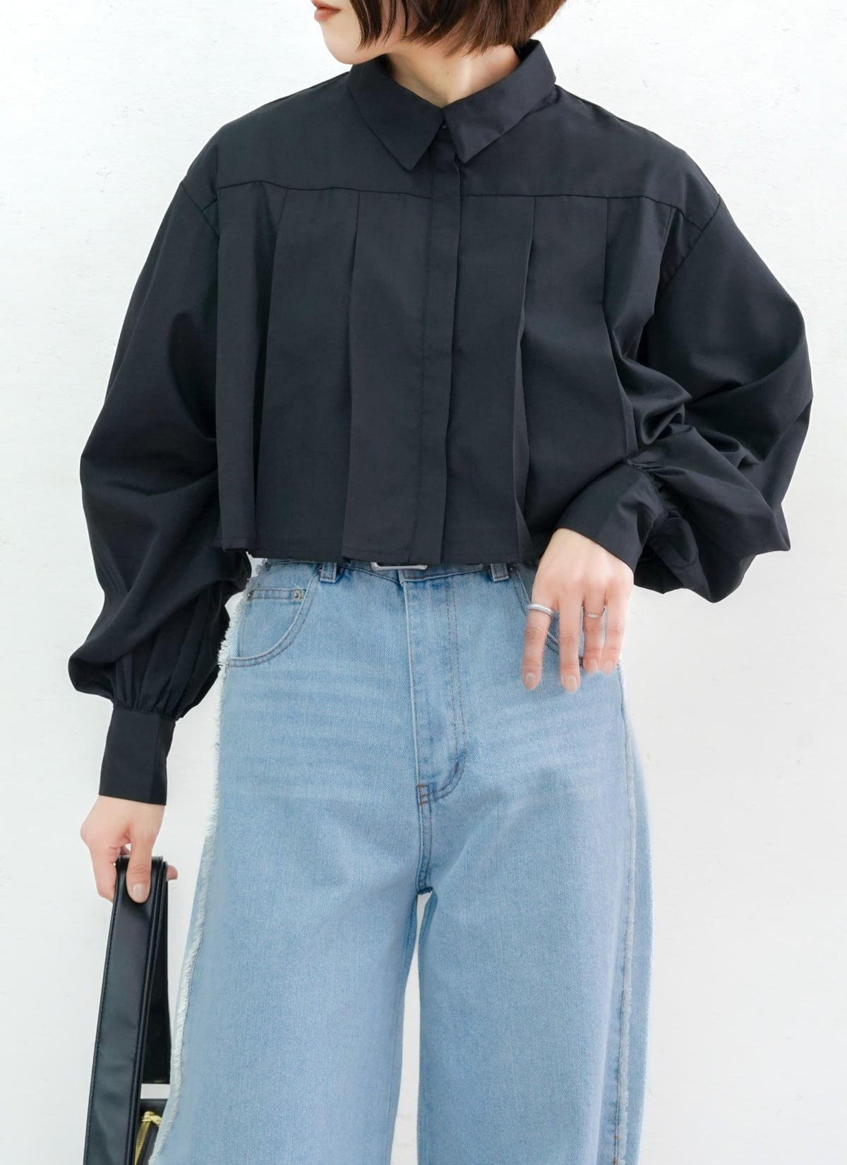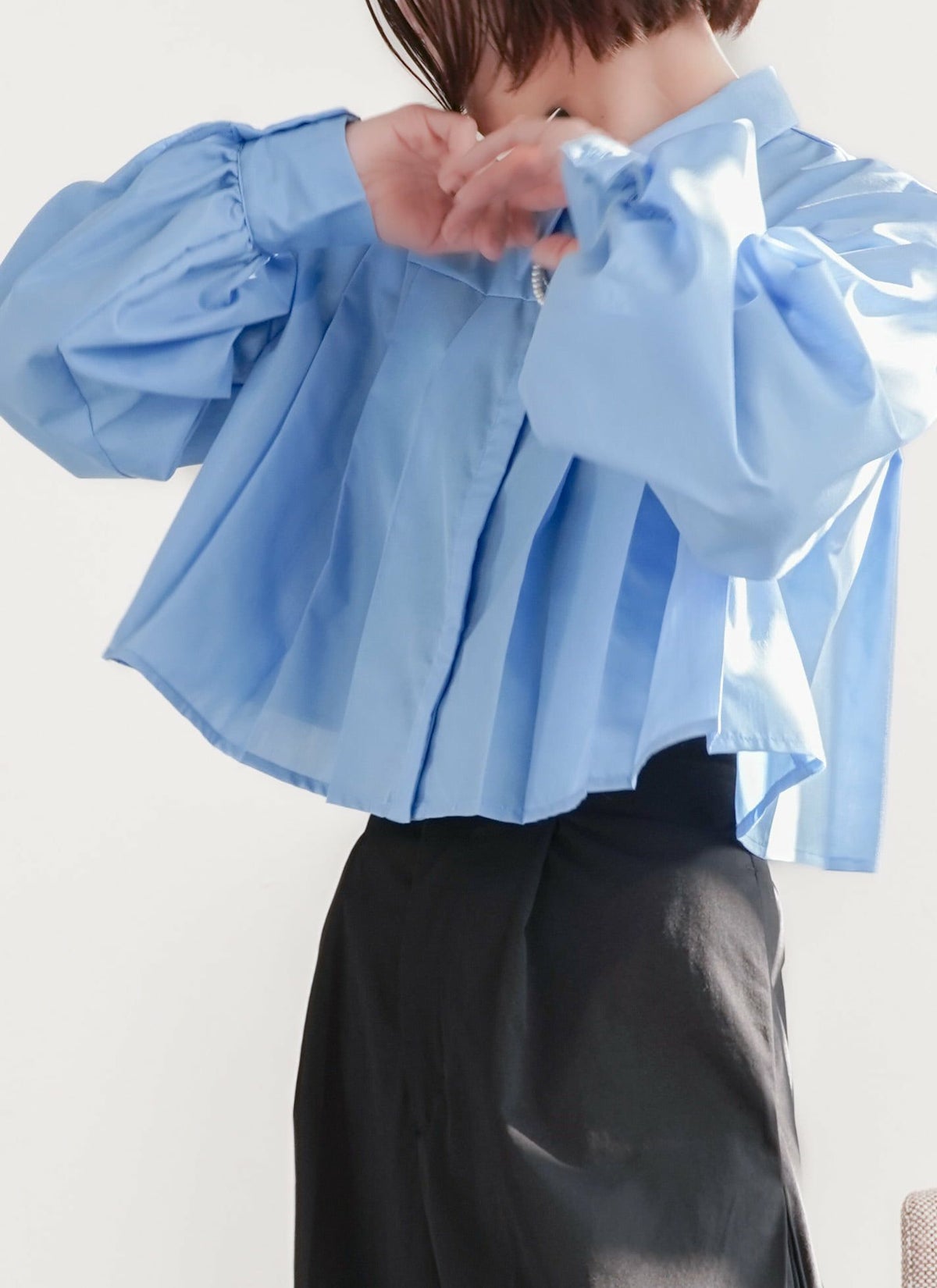 revoam【プリーツがトレンドのクロップド丈ブラウス】 【15%OFF】ボリュームスリーブプリーツブラウス