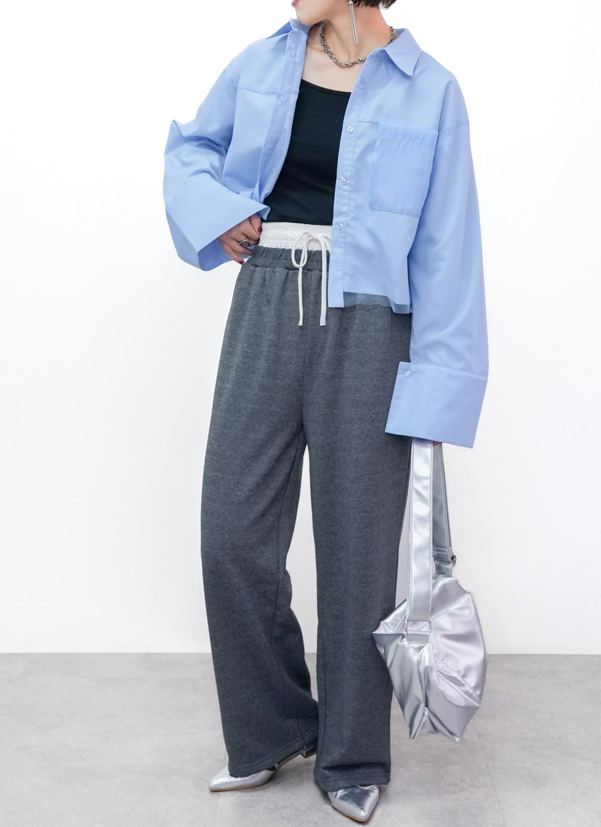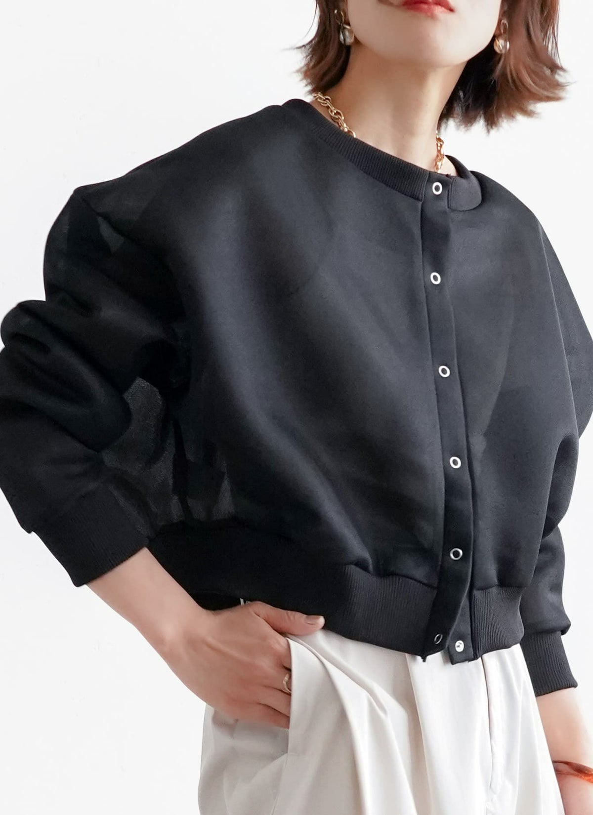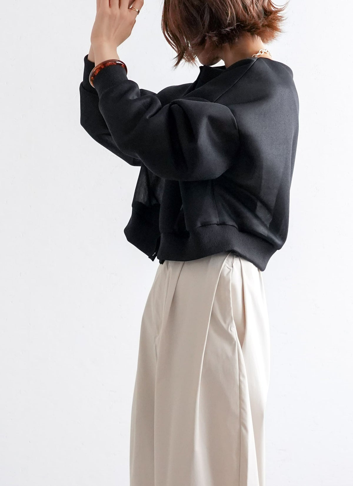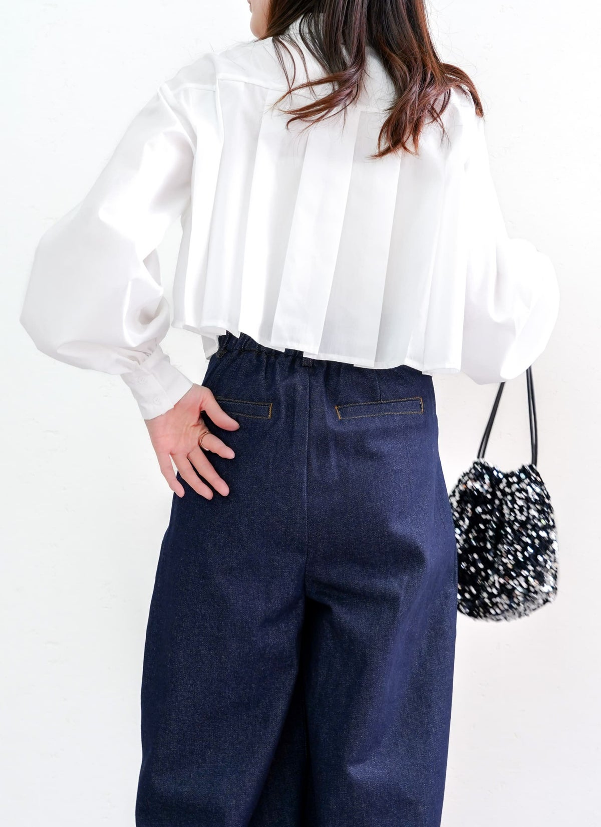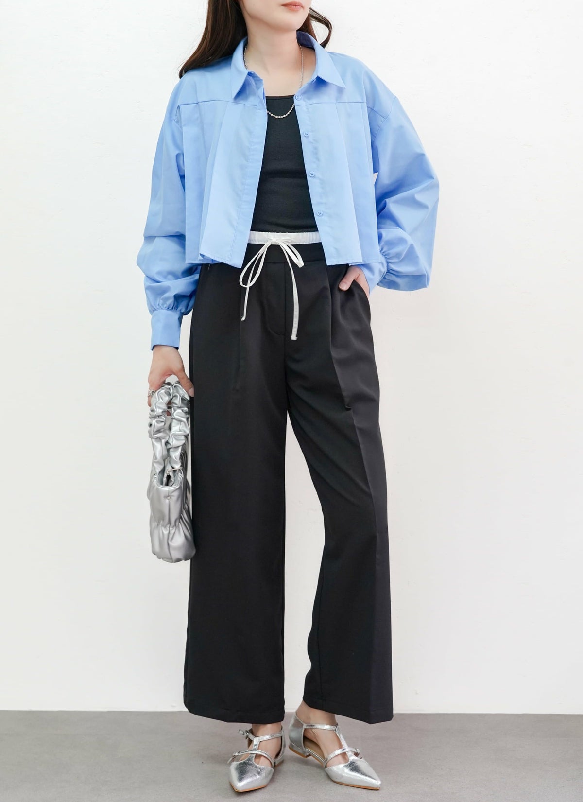 revoam【プリーツがトレンドのクロップド丈ブラウス】 【15%OFF】ボリュームスリーブプリーツブラウス