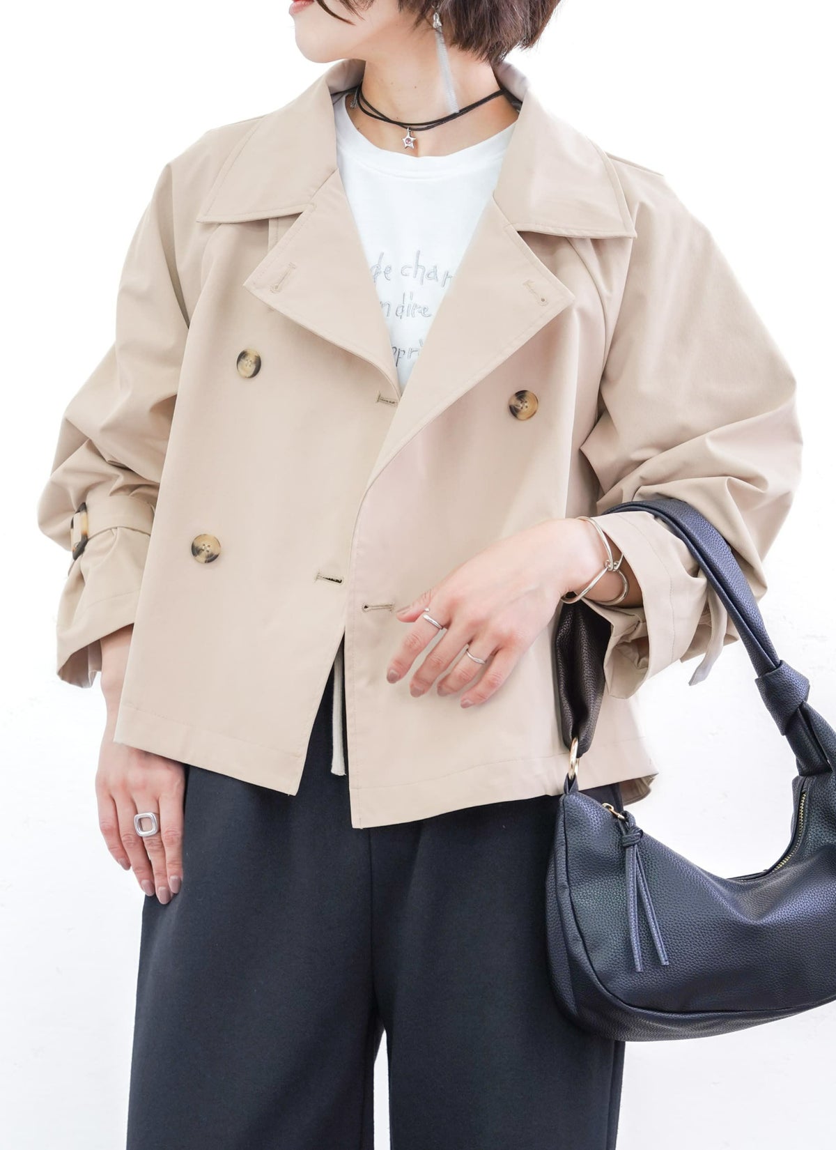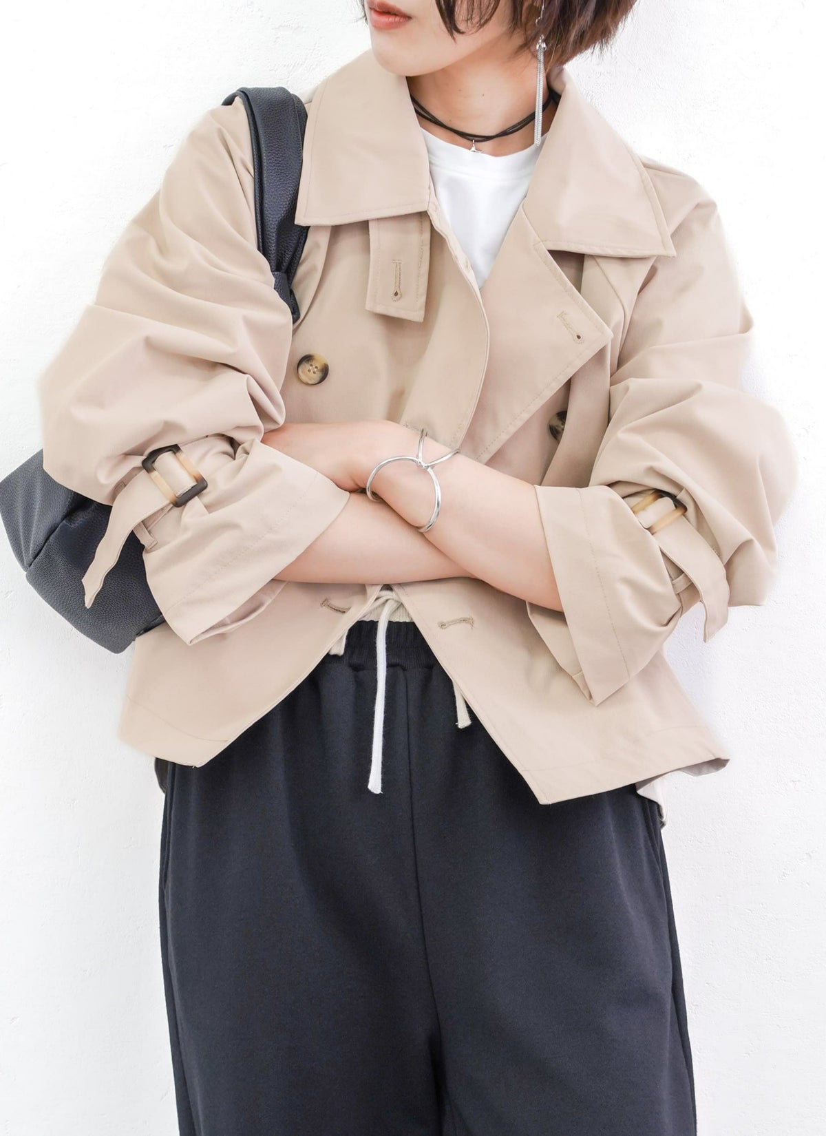 revoam【2way仕様でキャンディースリーブのショートトレンチ】 【10%OFF】2wayキャンディスリーブショートトレンチ