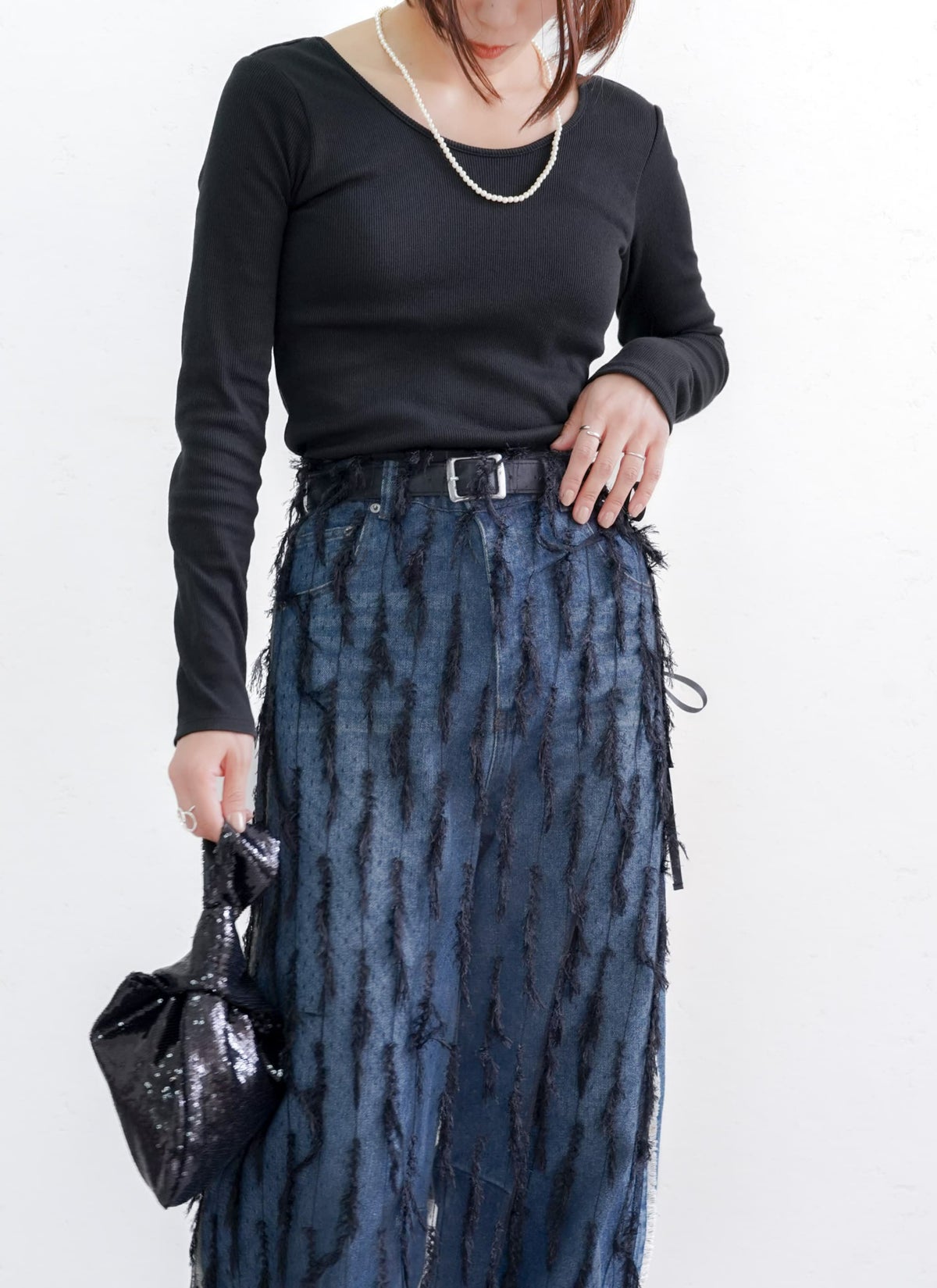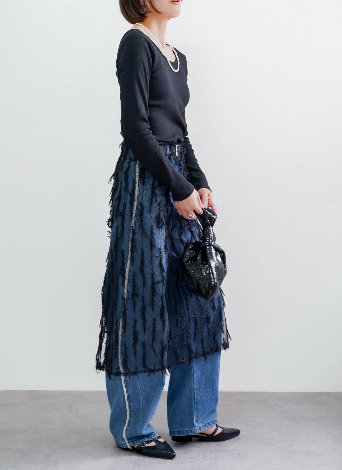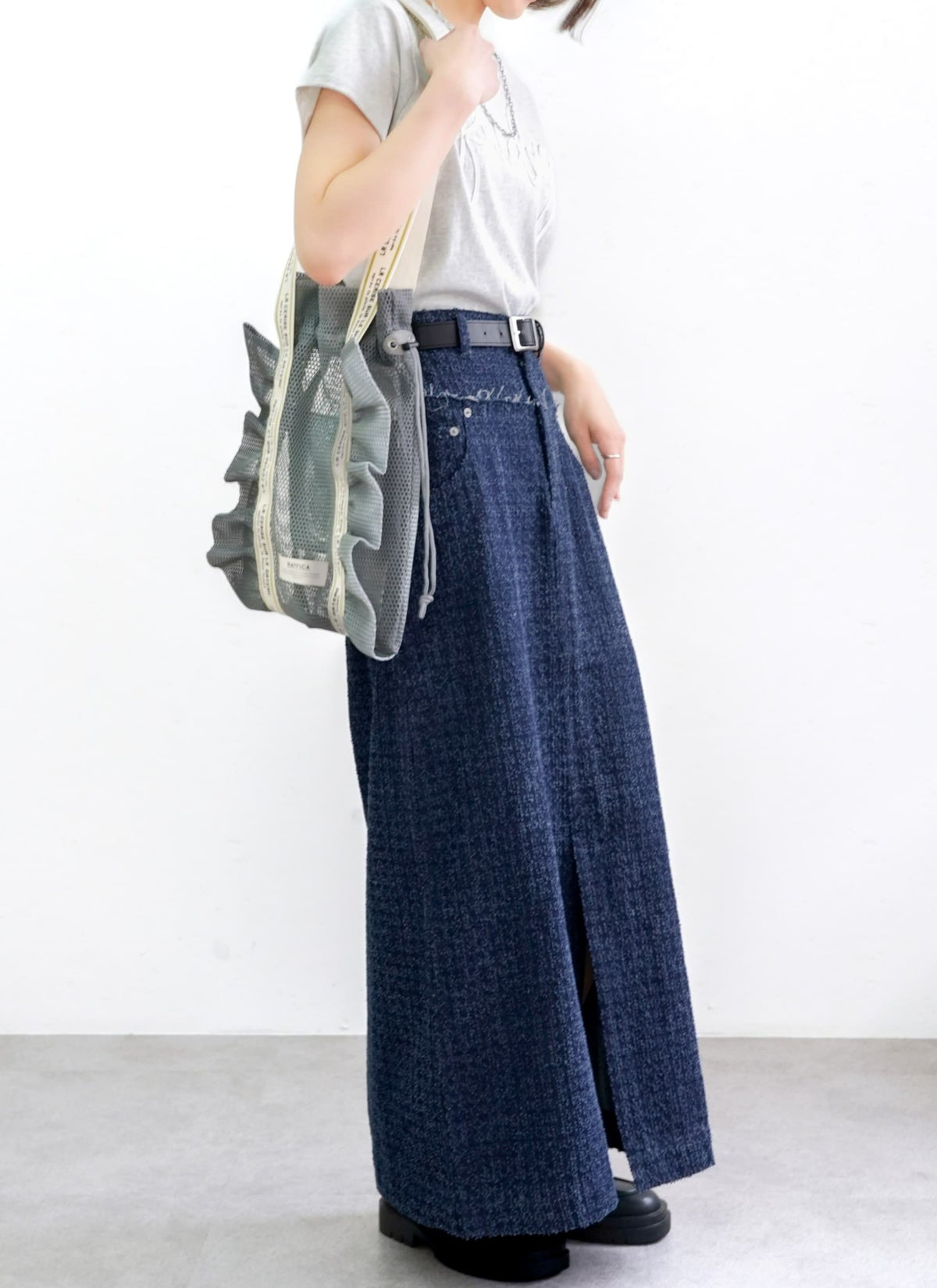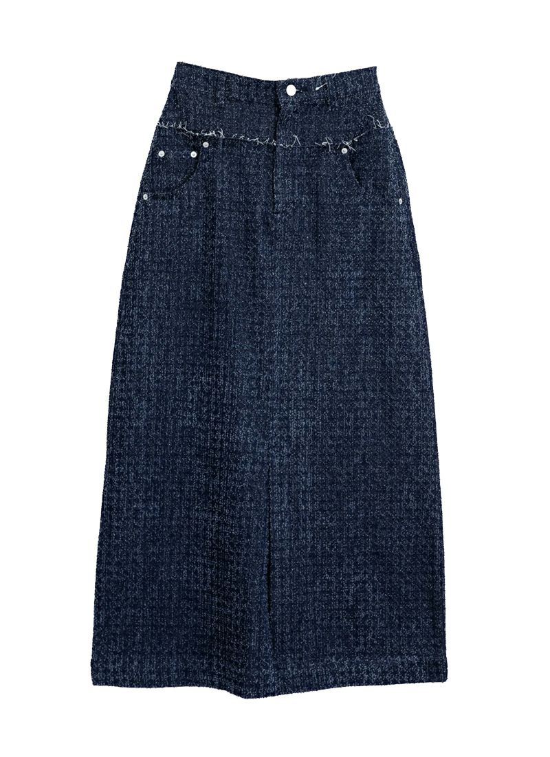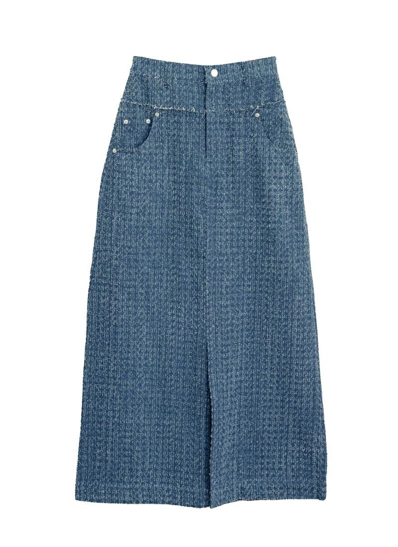 revoam【トレンドのクラッシュデニムを使用したストレートスカート!】 【15%OFF】クラッシュデニムフリンジスカート