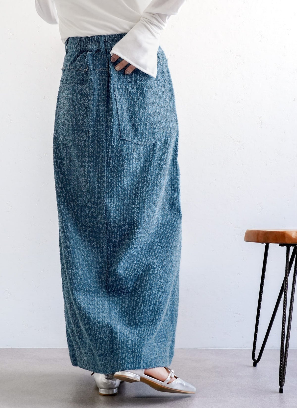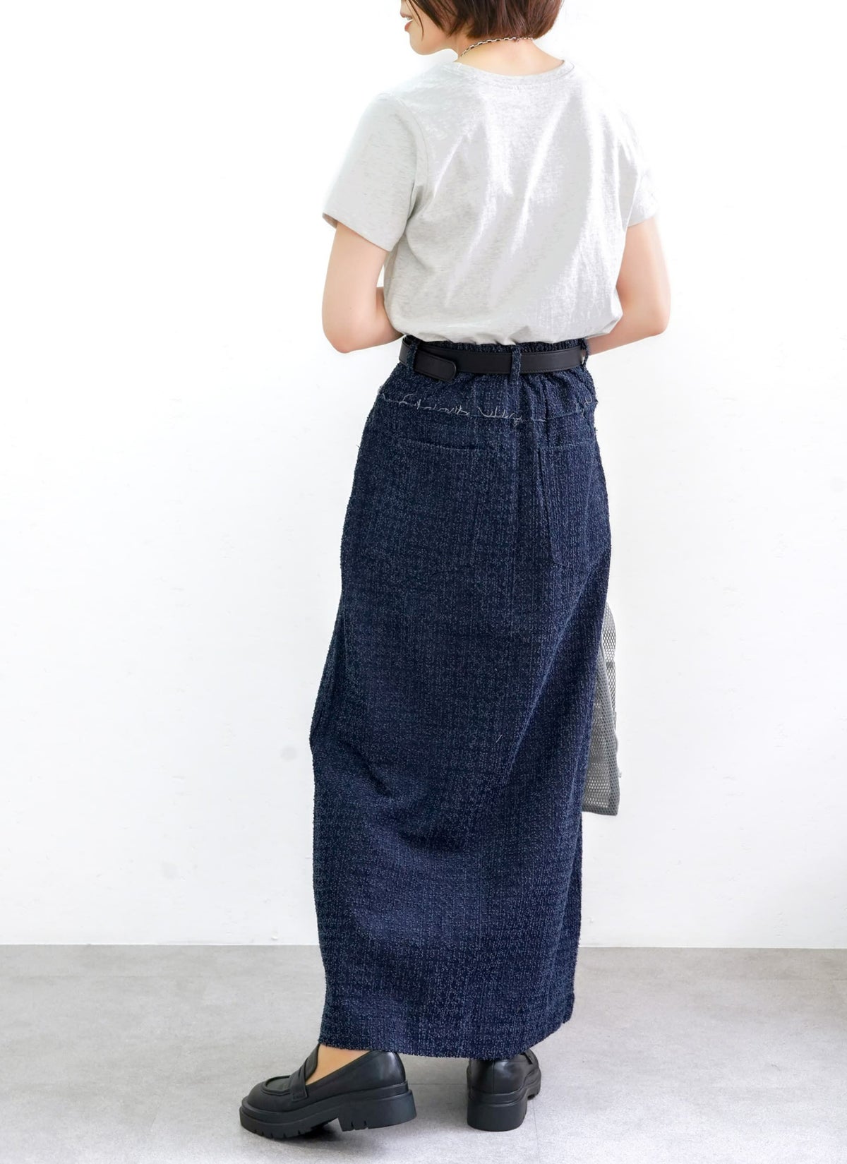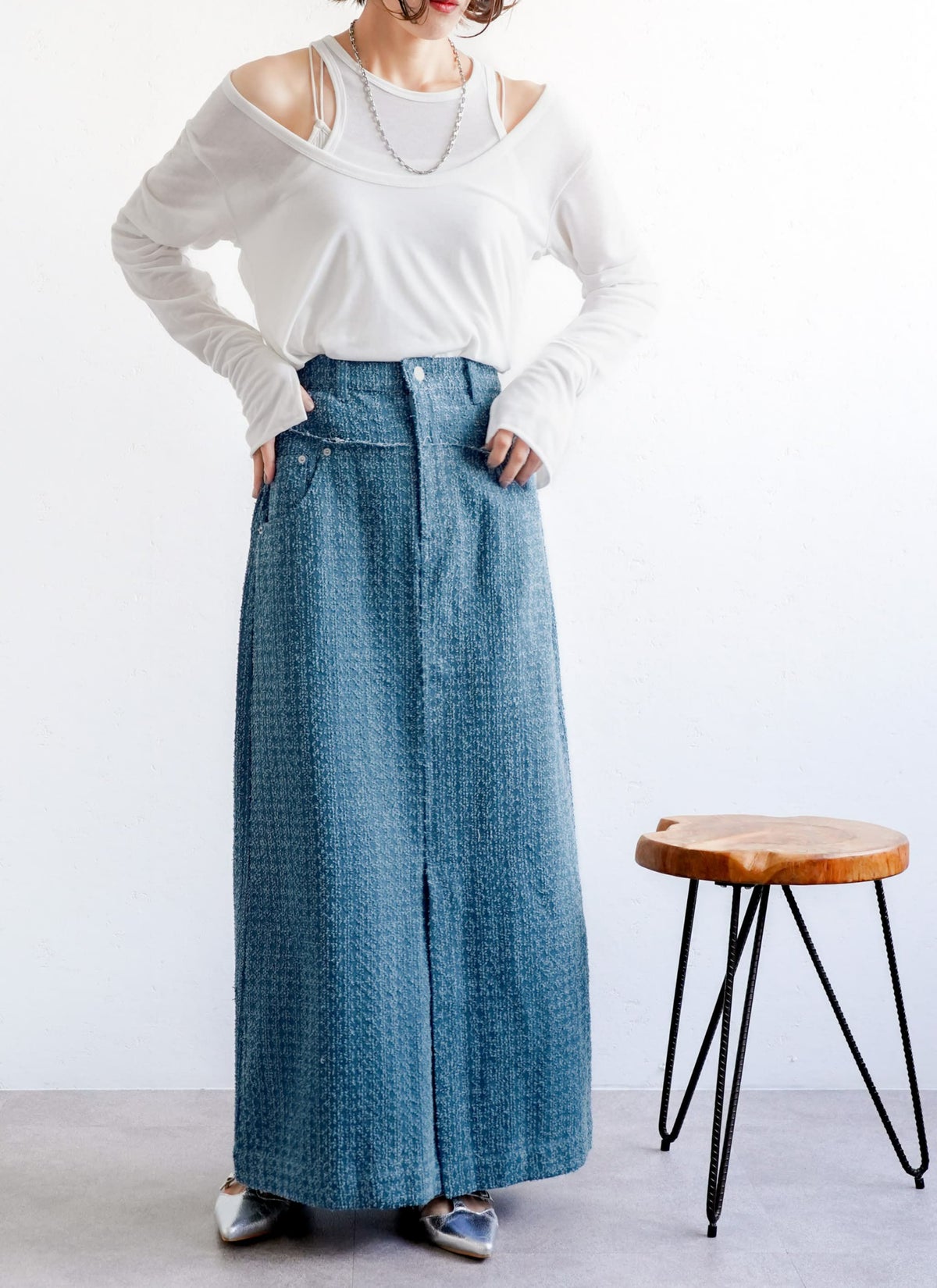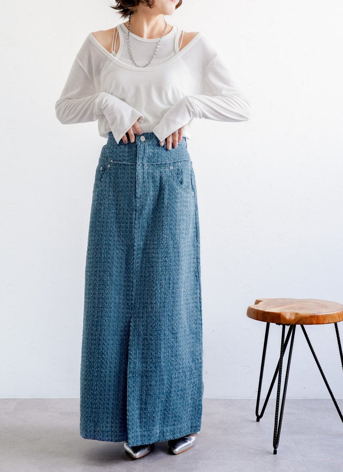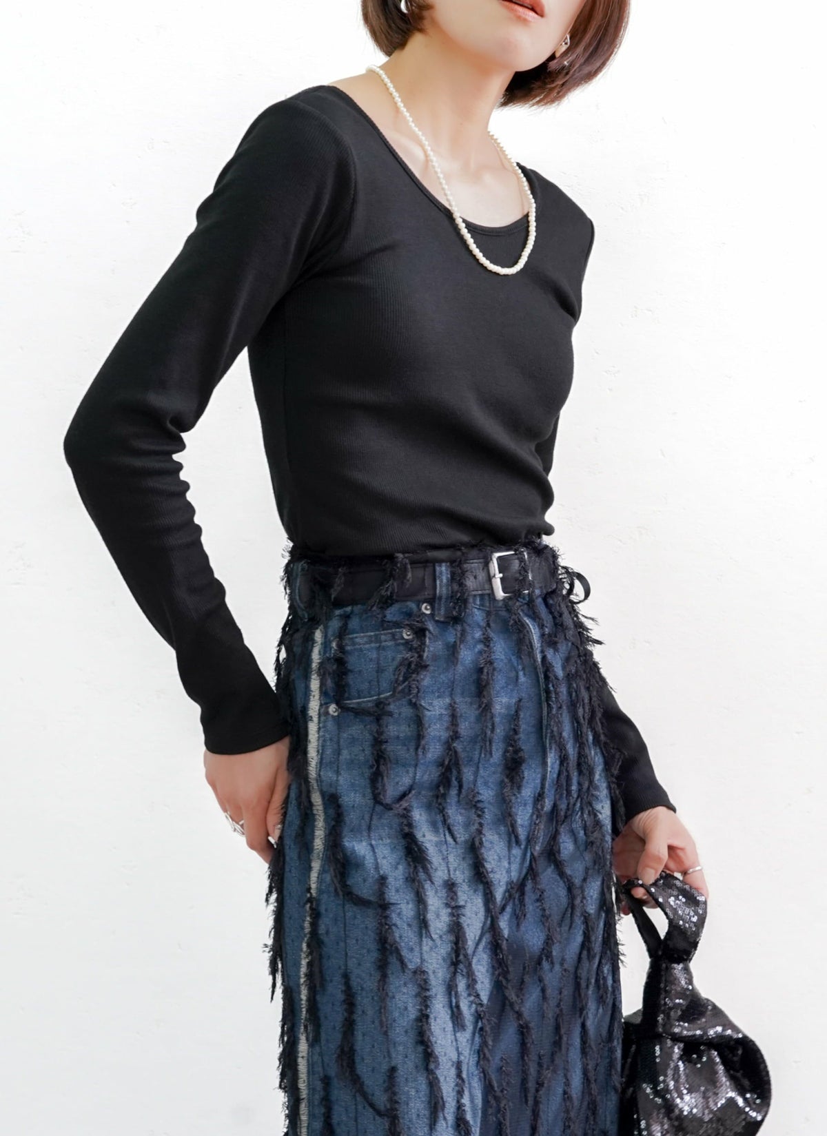 revoam【トレンドのクラッシュデニムを使用したストレートスカート!】 【15%OFF】クラッシュデニムフリンジスカート