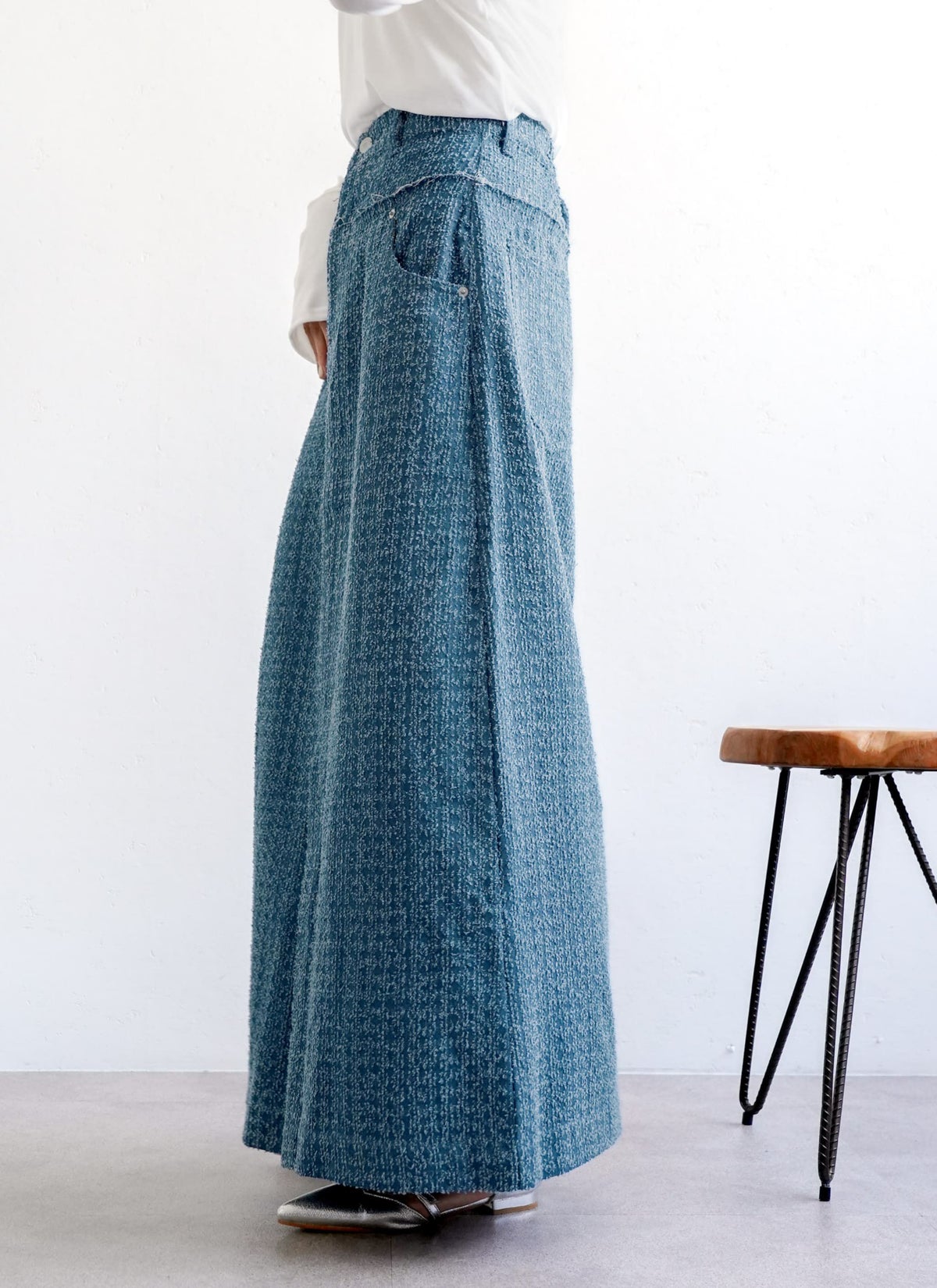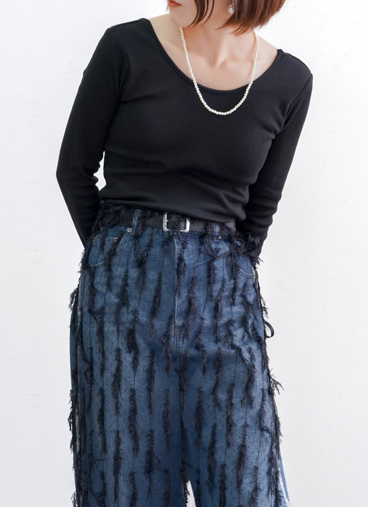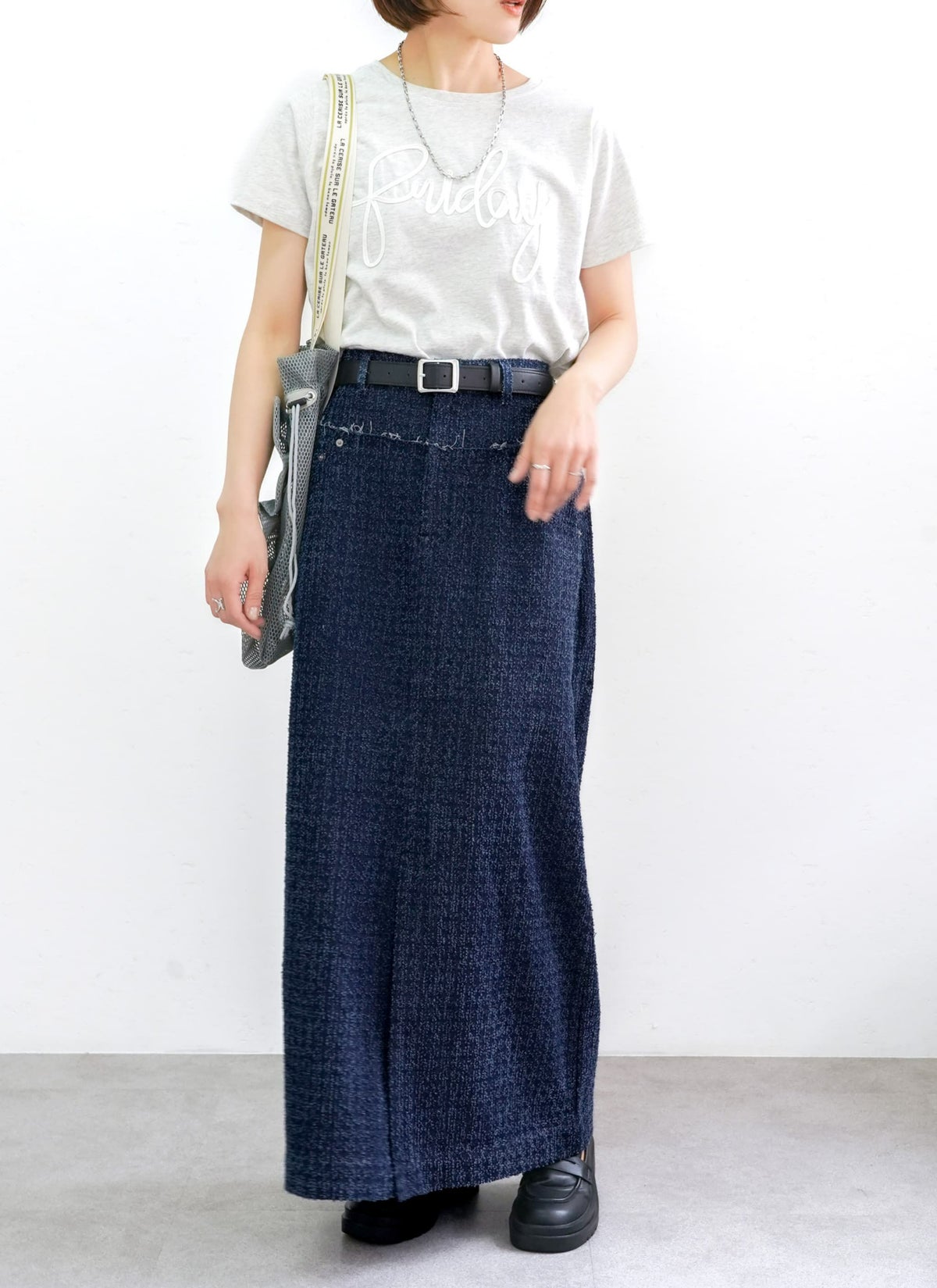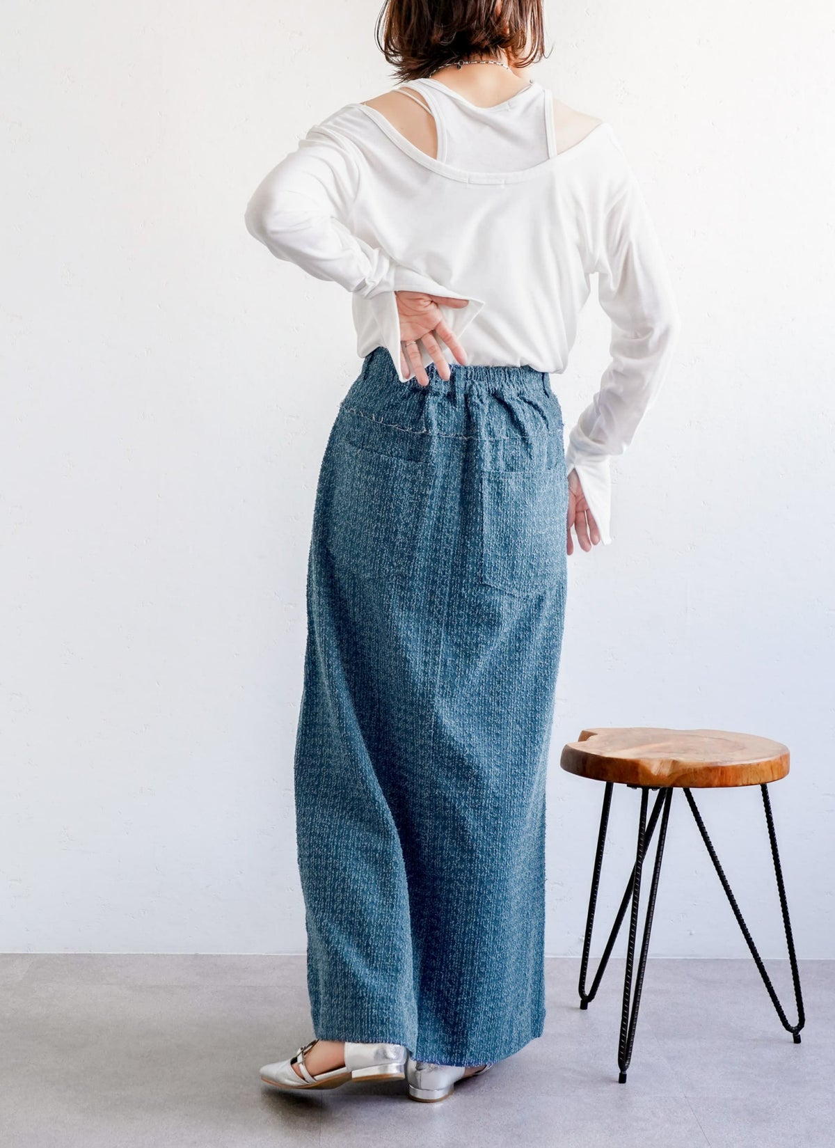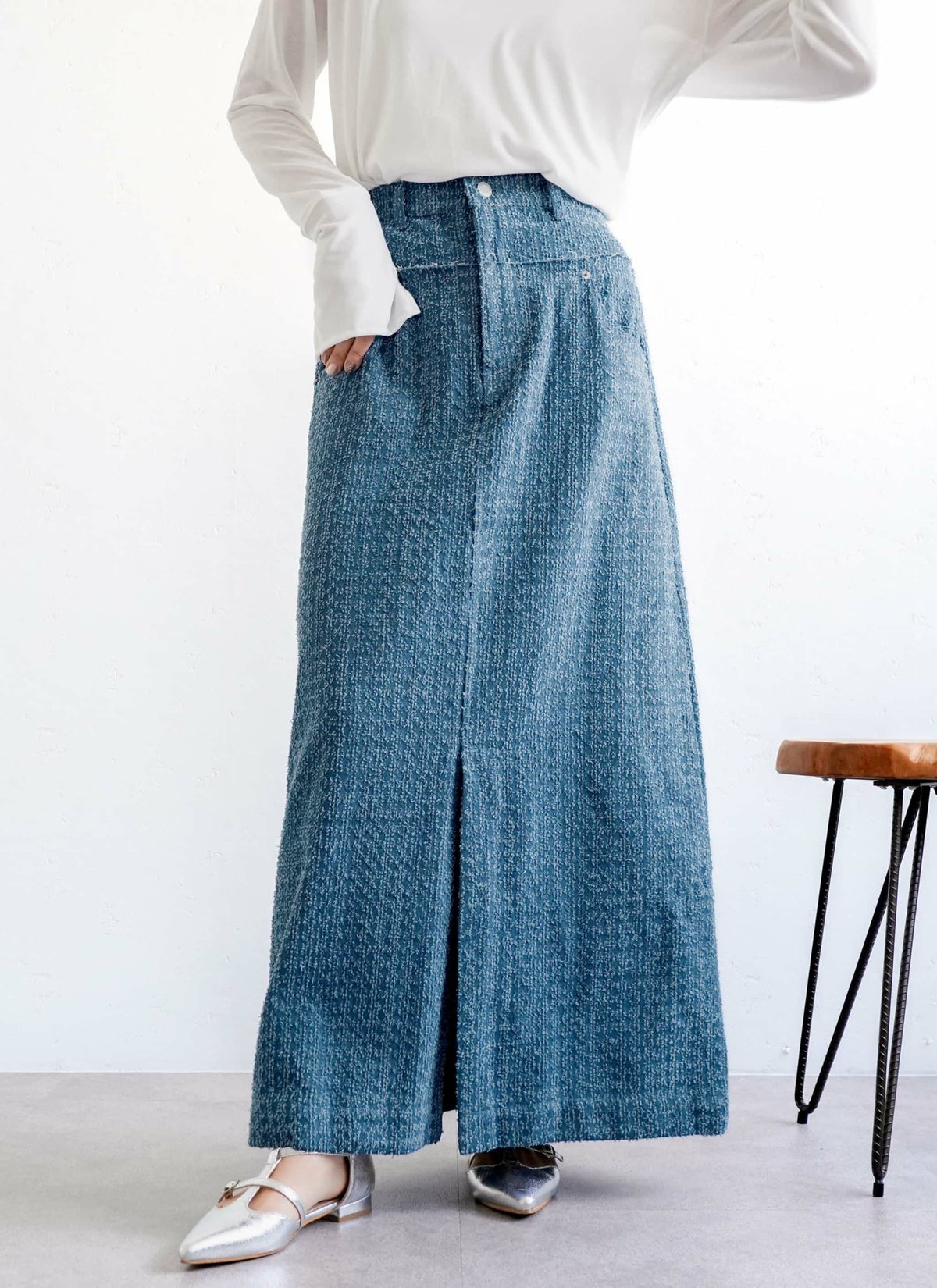 revoam【トレンドのクラッシュデニムを使用したストレートスカート!】 【15%OFF】クラッシュデニムフリンジスカート