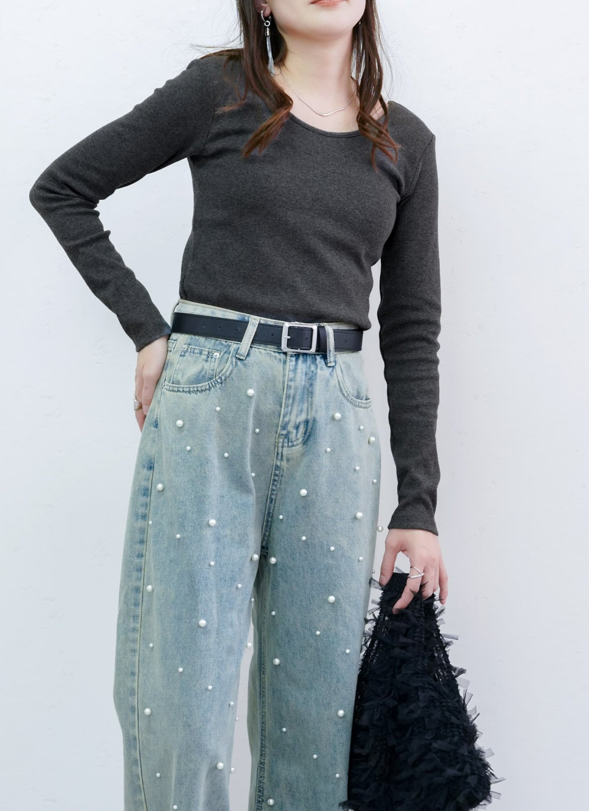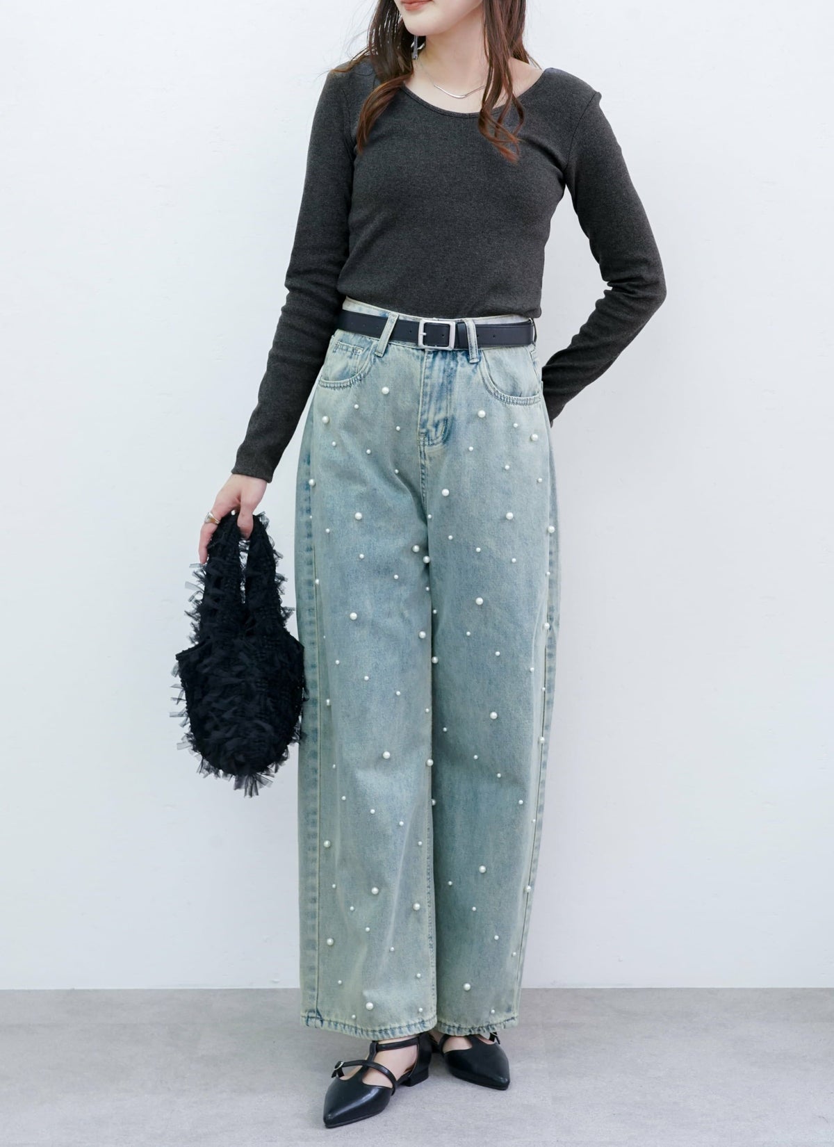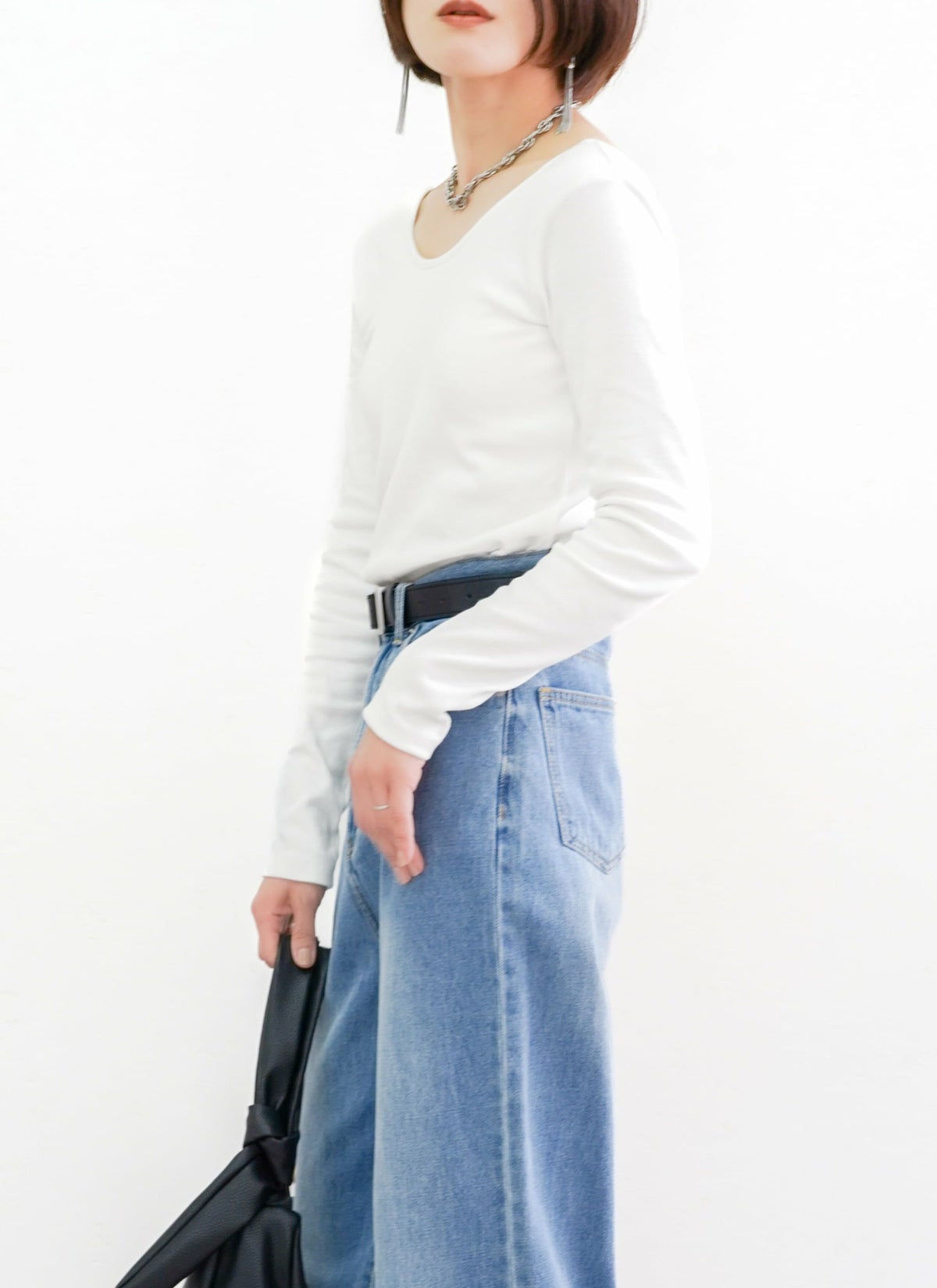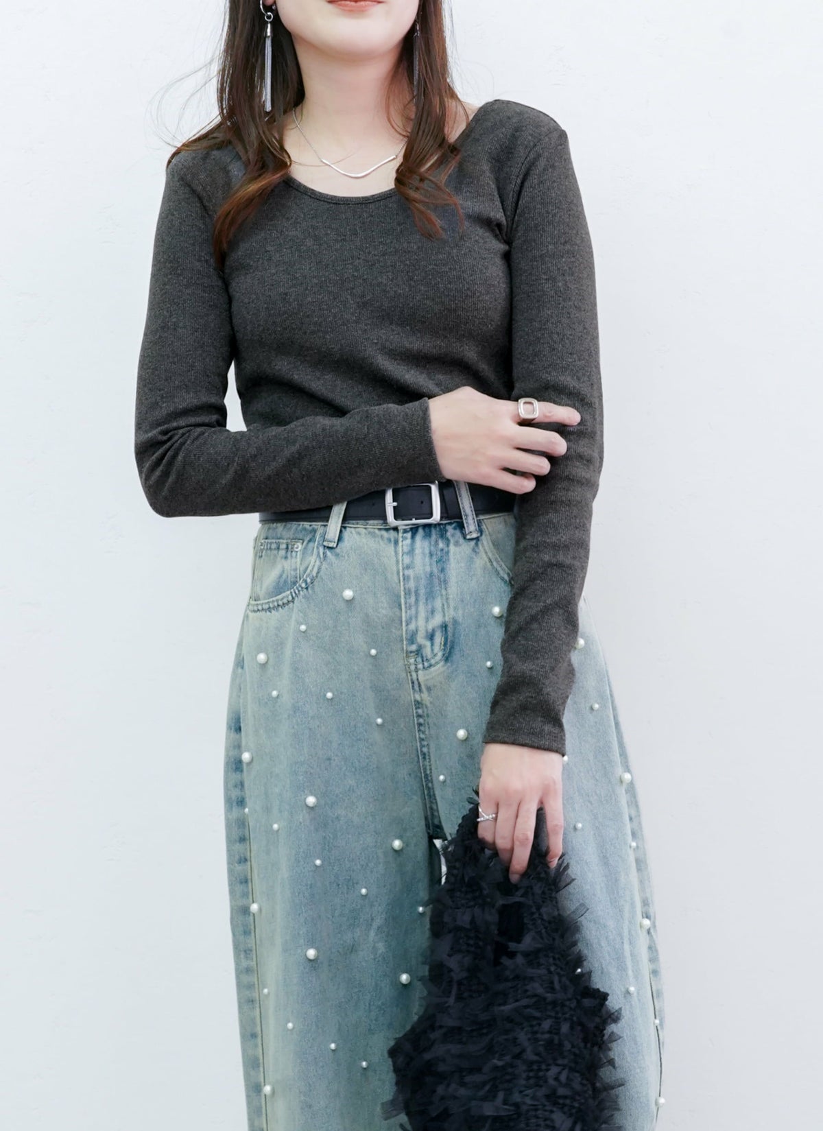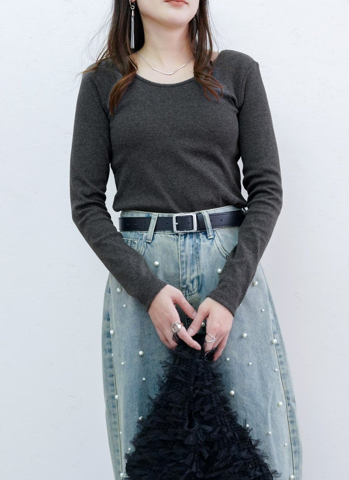 revoam【トレンドのクラッシュデニムを使用したストレートスカート!】 【15%OFF】クラッシュデニムフリンジスカート