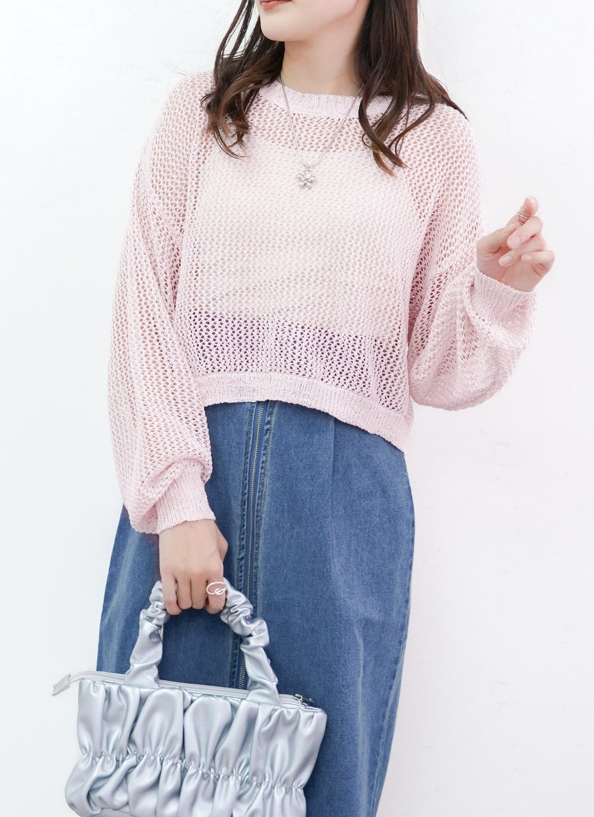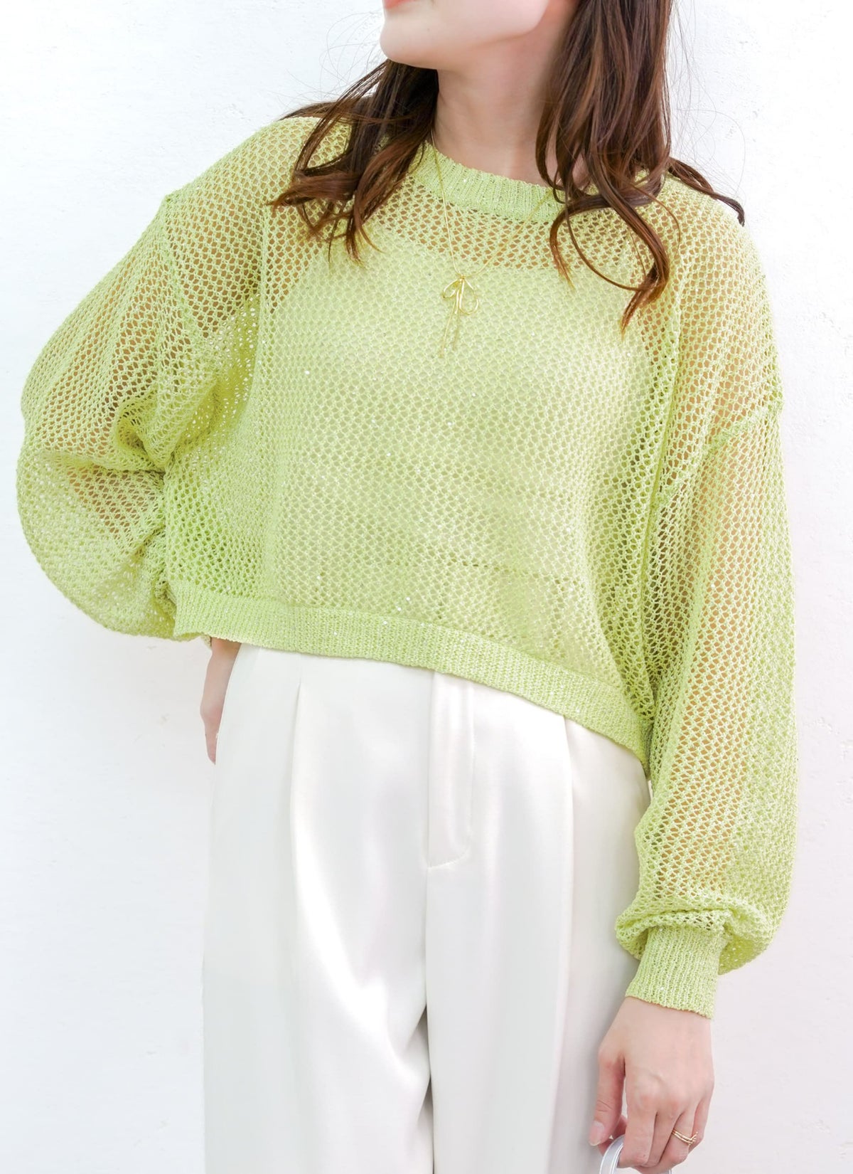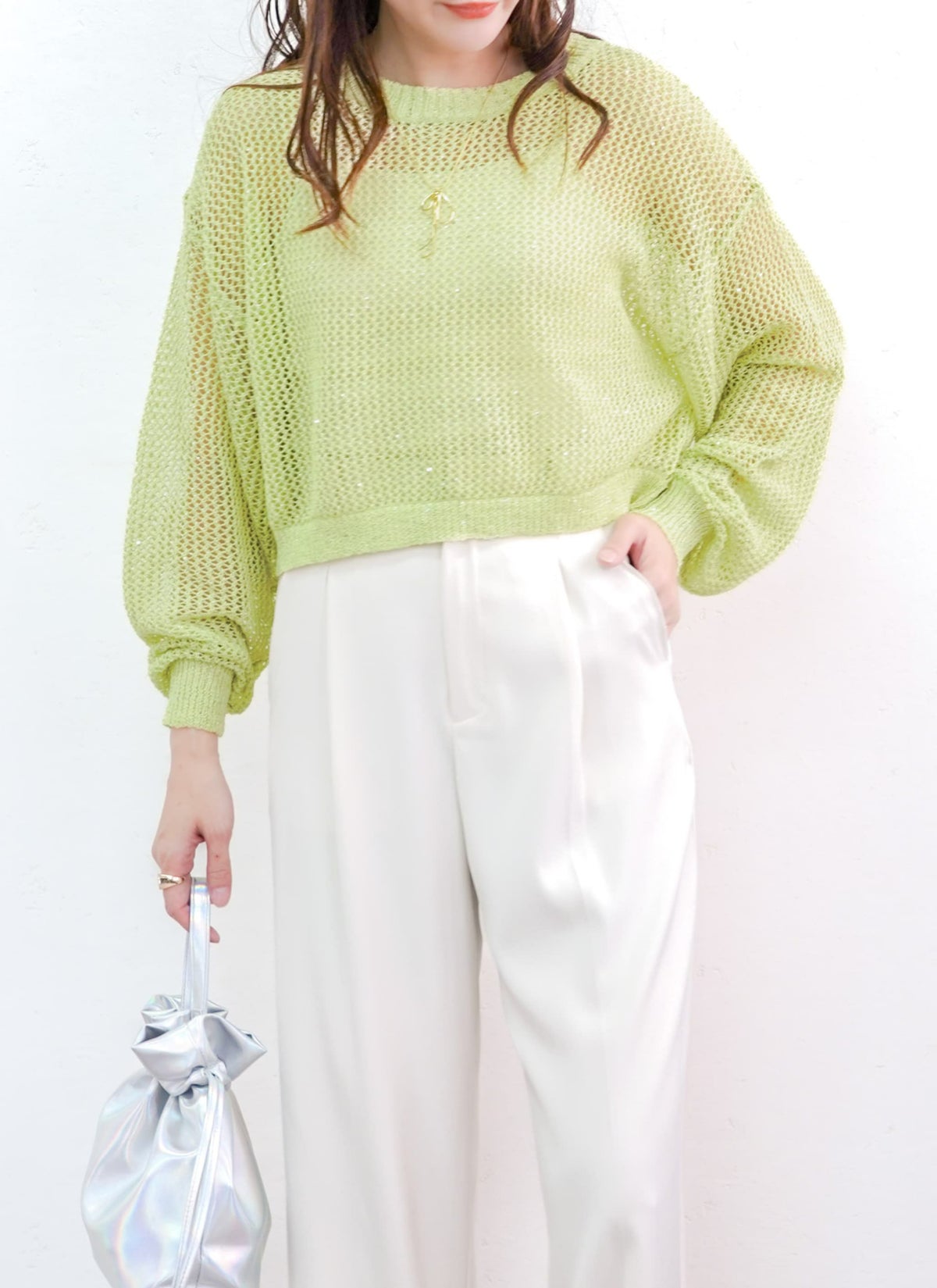 revoam【スパンコール入りのラメ糸を使用した、1枚で着映えするメッシュニット!】 【15%OFF】ラメメッシュニットプルオーバー