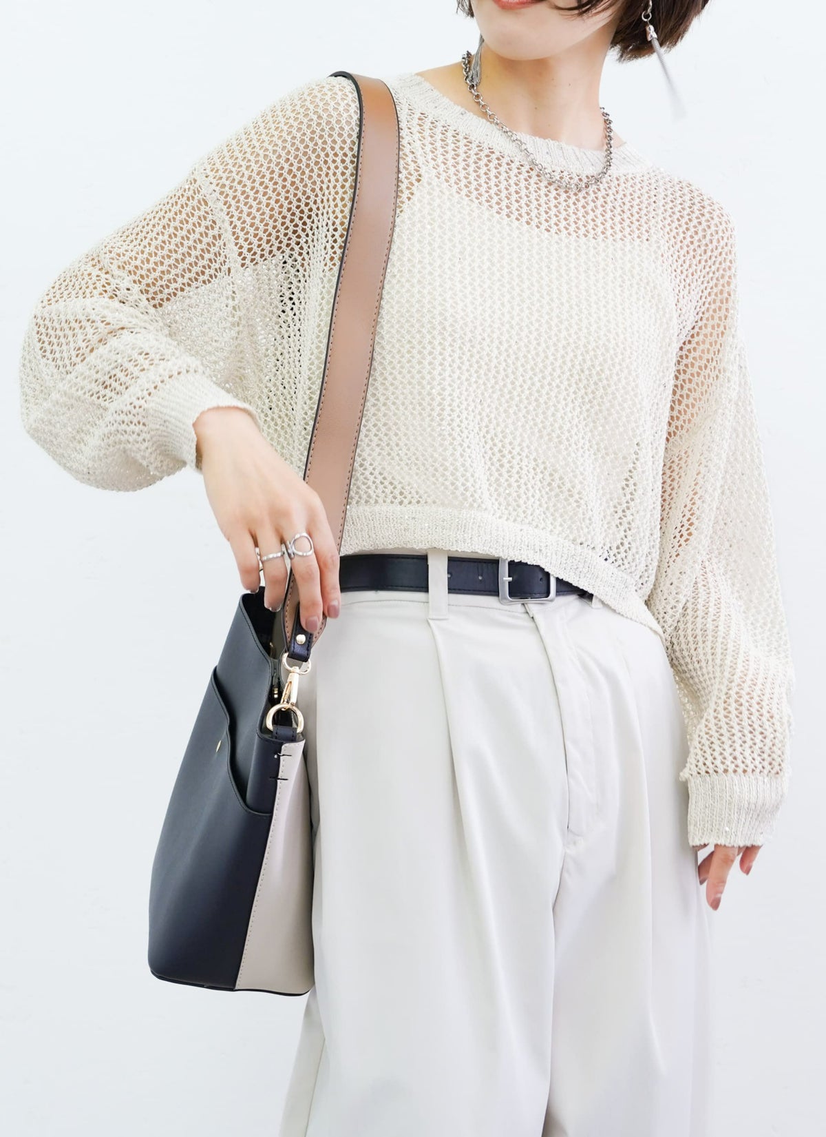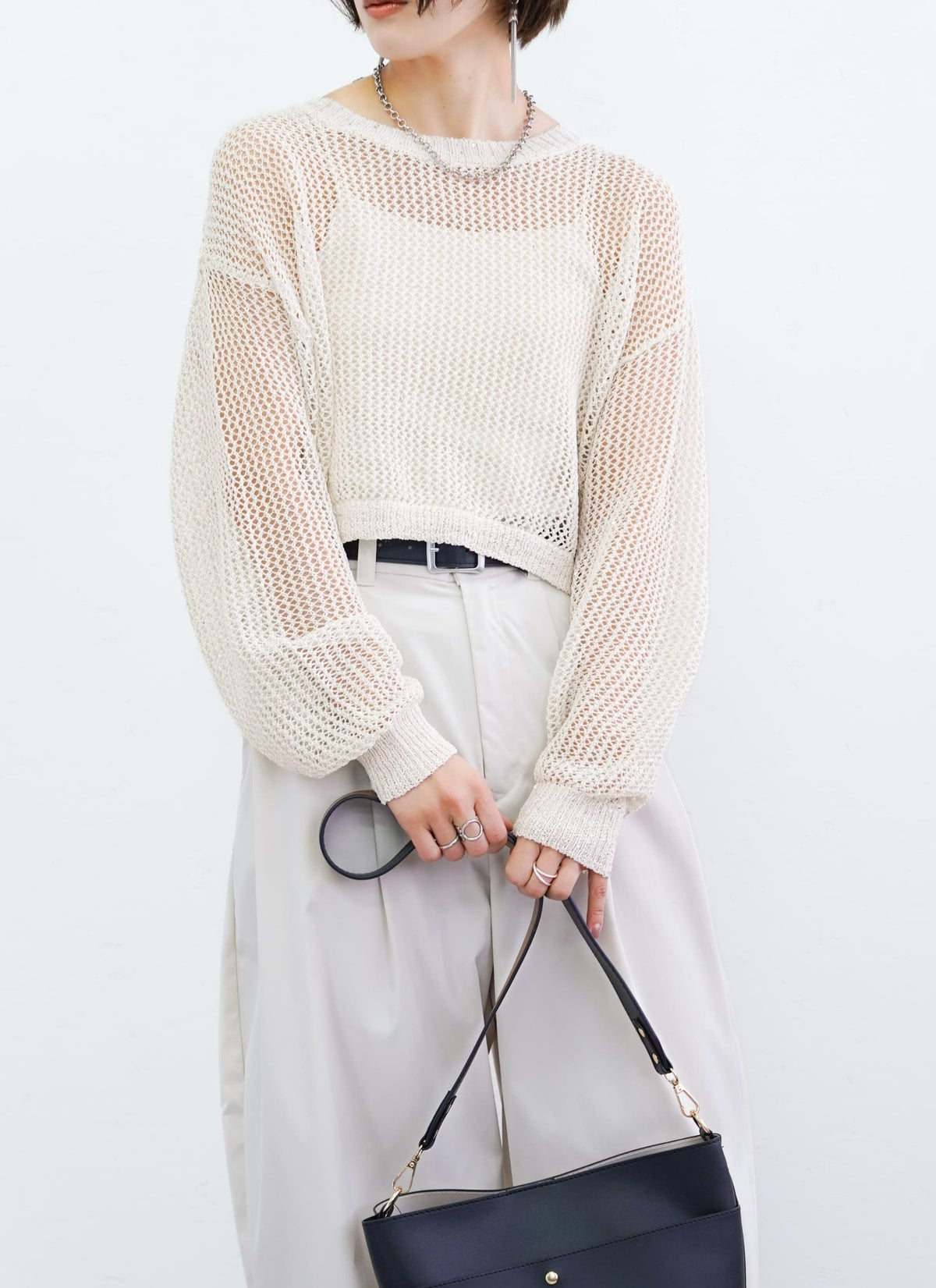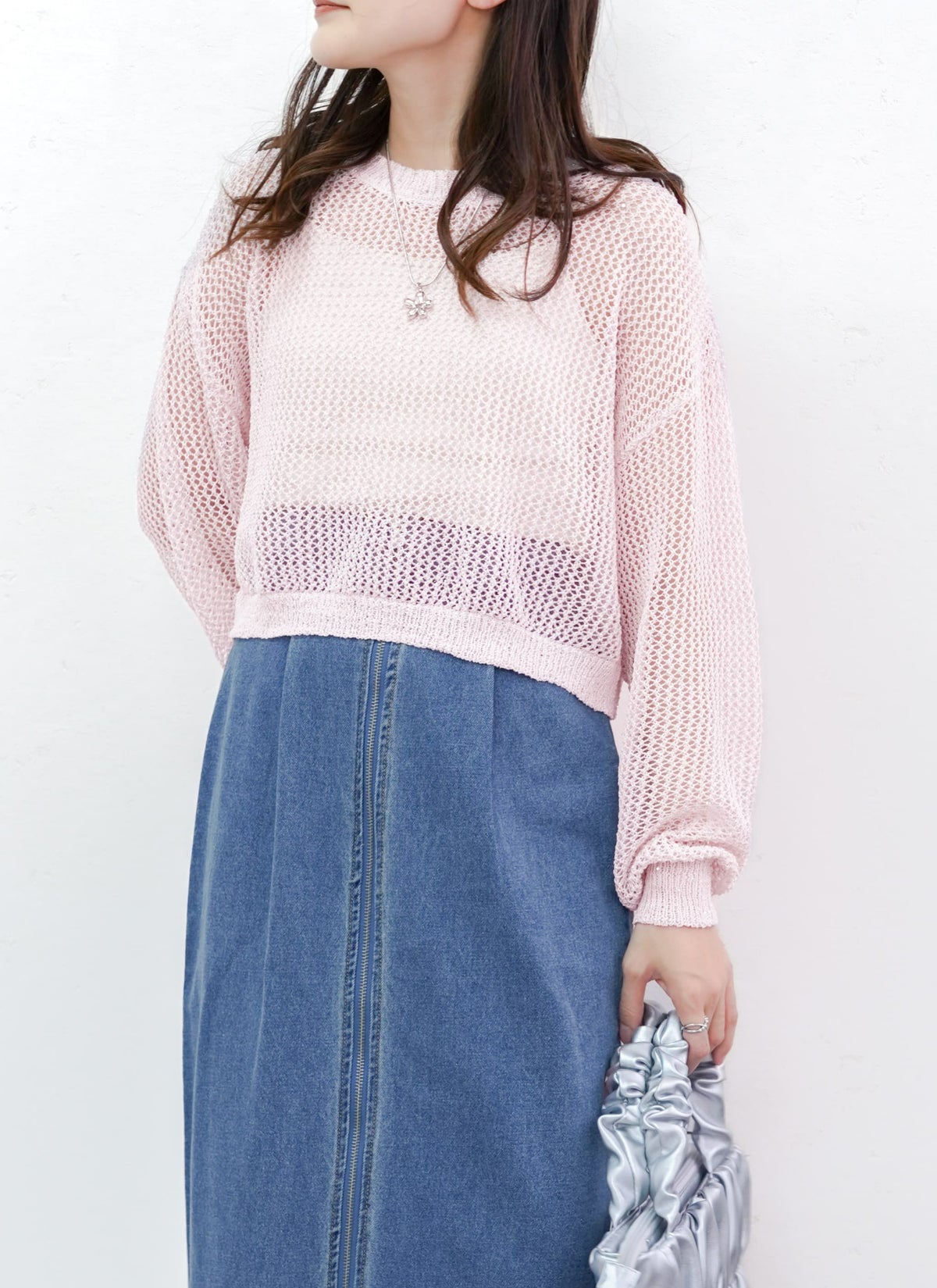 revoam【スパンコール入りのラメ糸を使用した、1枚で着映えするメッシュニット!】 【15%OFF】ラメメッシュニットプルオーバー