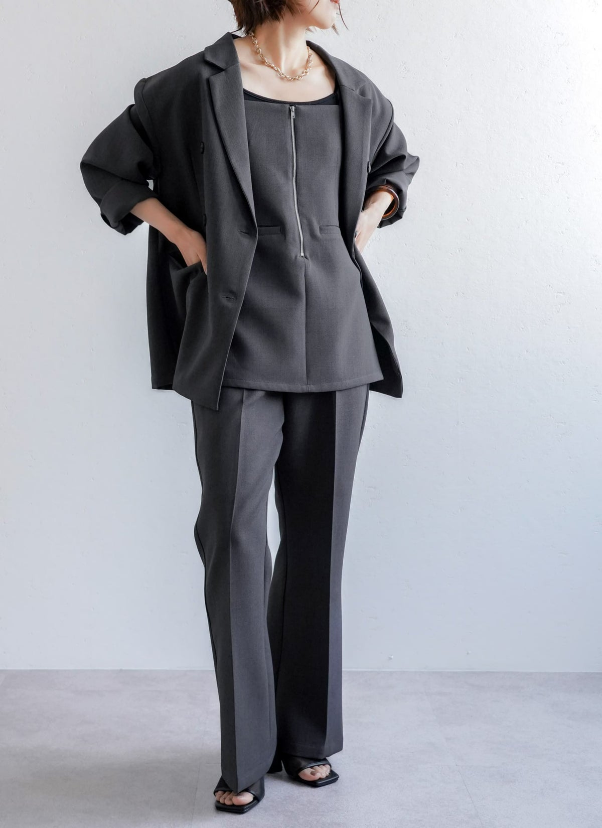 revoam【トレンドスタイルを完成させる、2WAYビスチェ】 【15%OFF】フロントジップキャミビスチェ