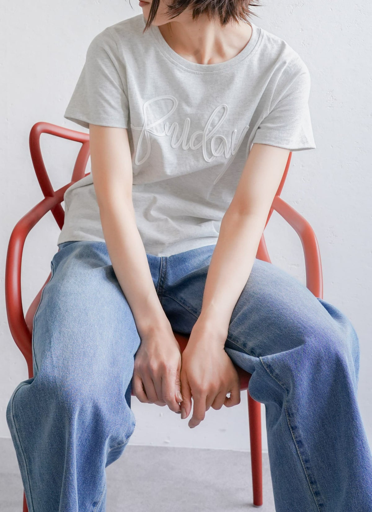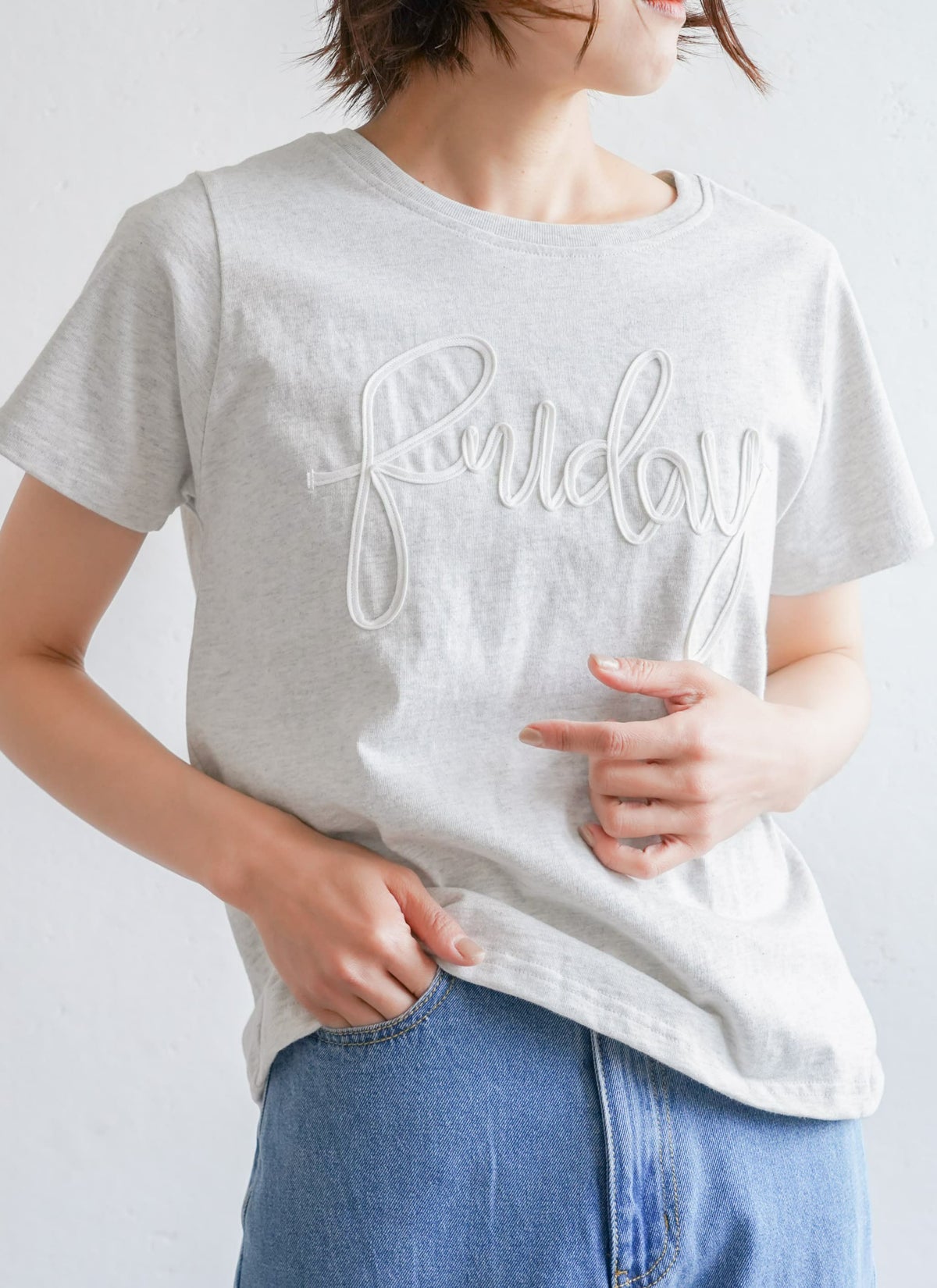 revoam【立体感のあるカラーコード刺繍でおしゃれ感アップなTシャツ。】 【15%OFF】ロゴコード刺繍Tシャツ