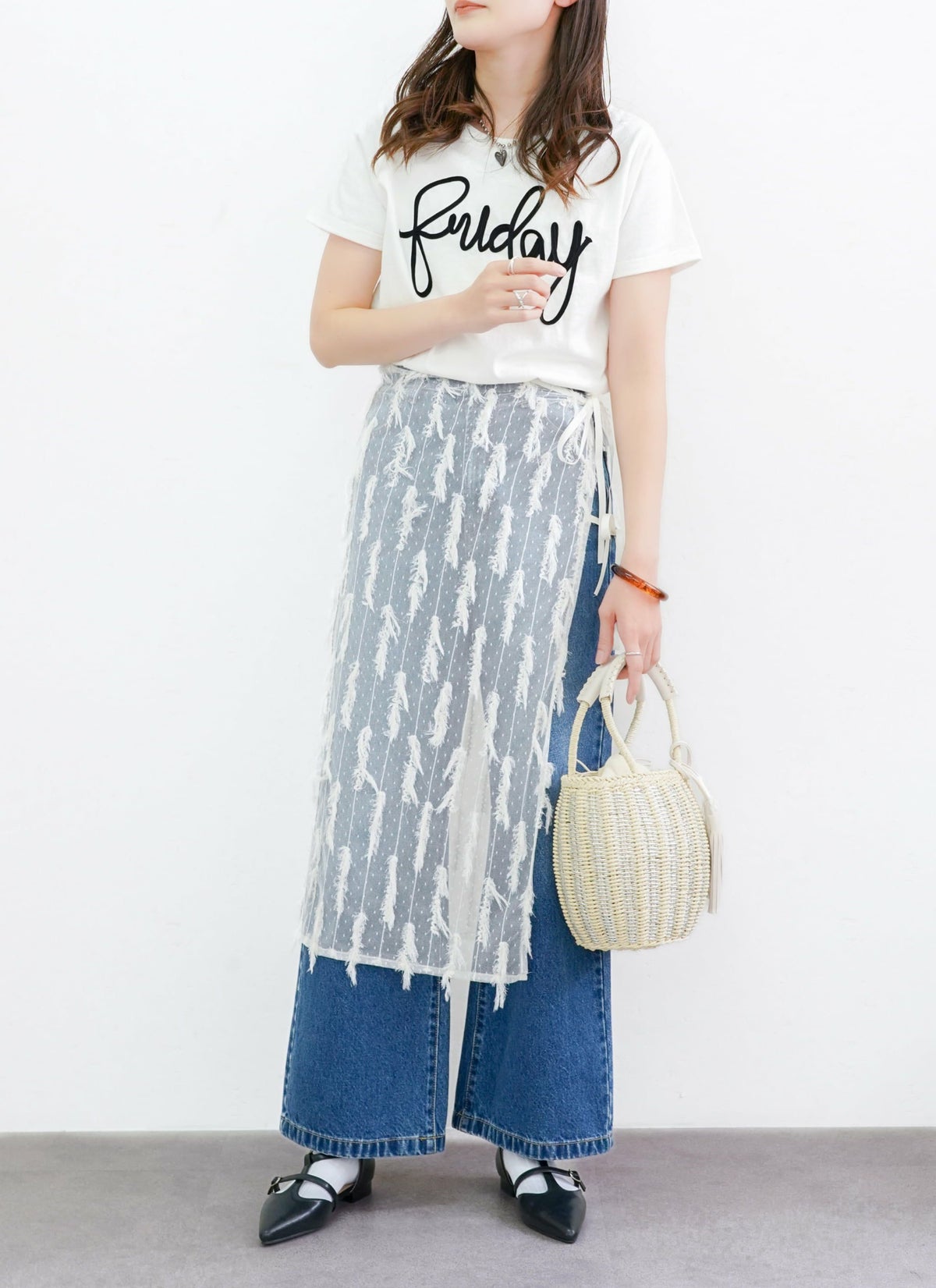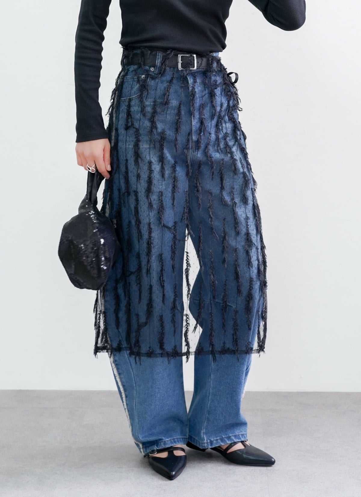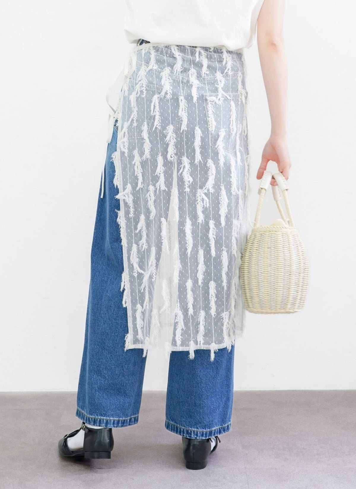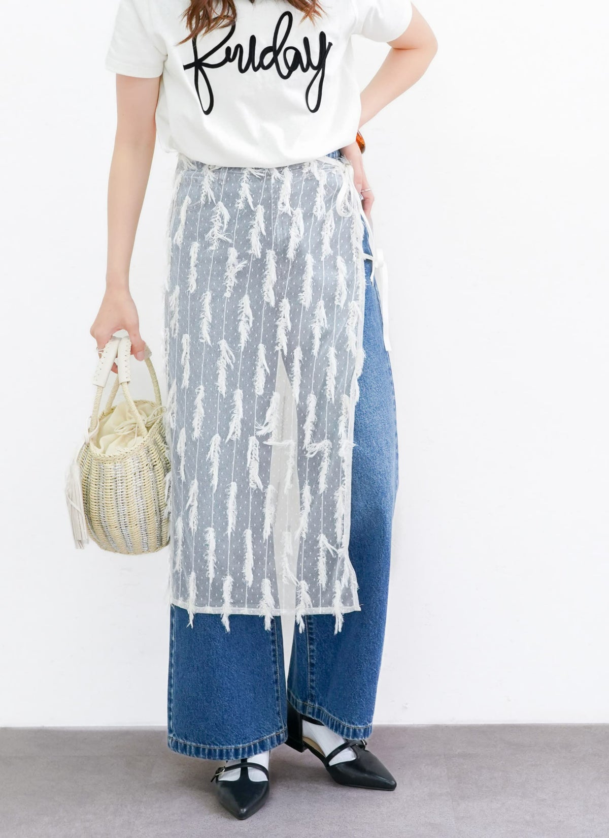 revoam【表情のあるフリンジが目を惹くチュールラップスカート】 【15%OFF】フリンジチュールラップスカート