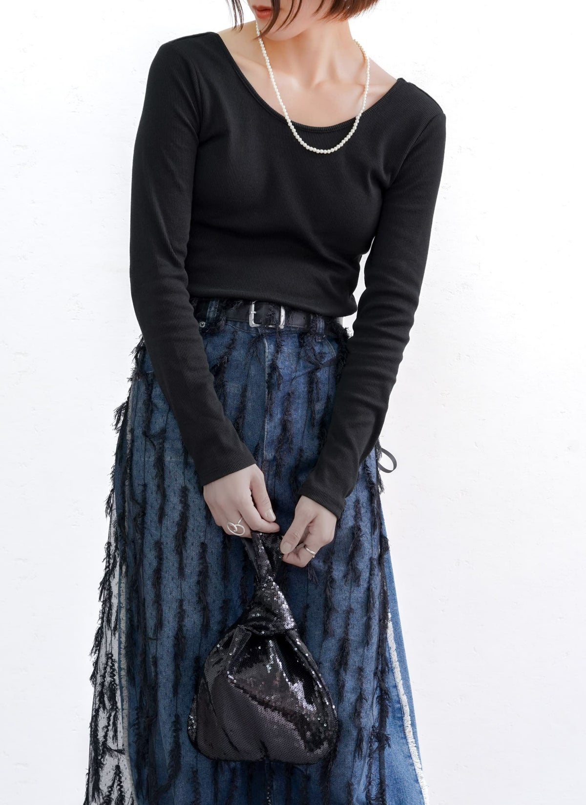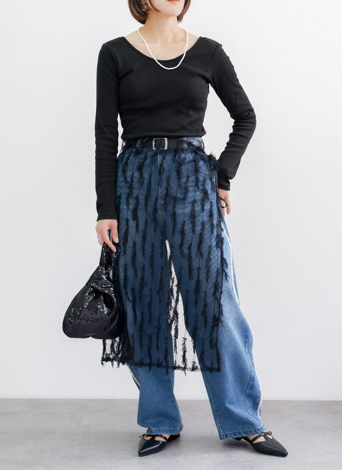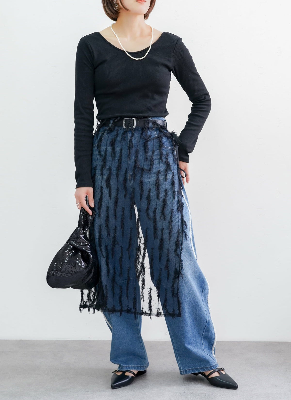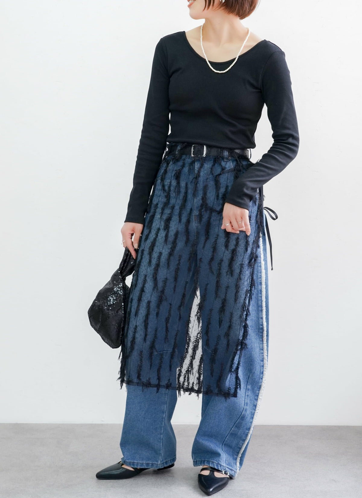 revoam【表情のあるフリンジが目を惹くチュールラップスカート】 【15%OFF】フリンジチュールラップスカート