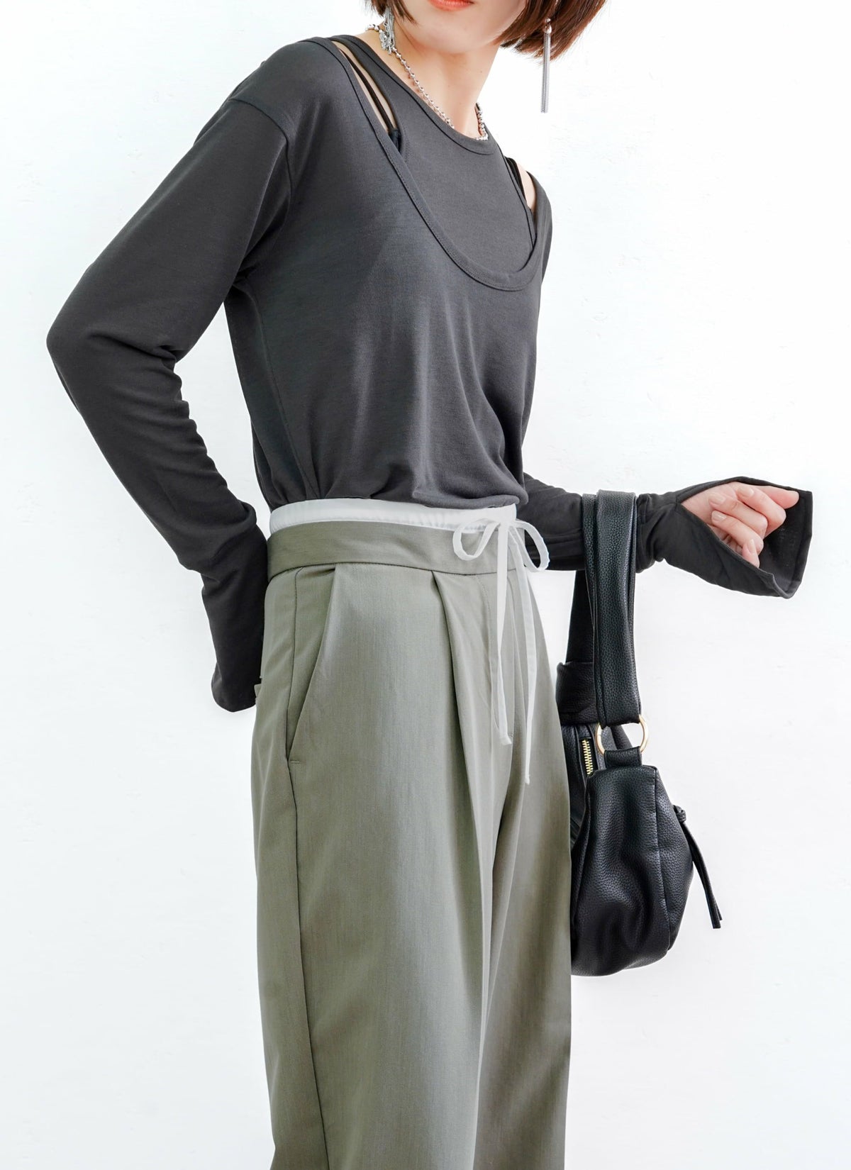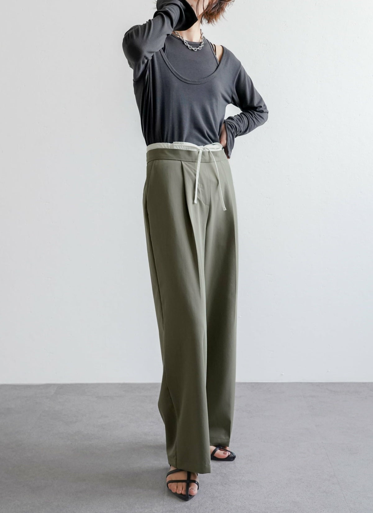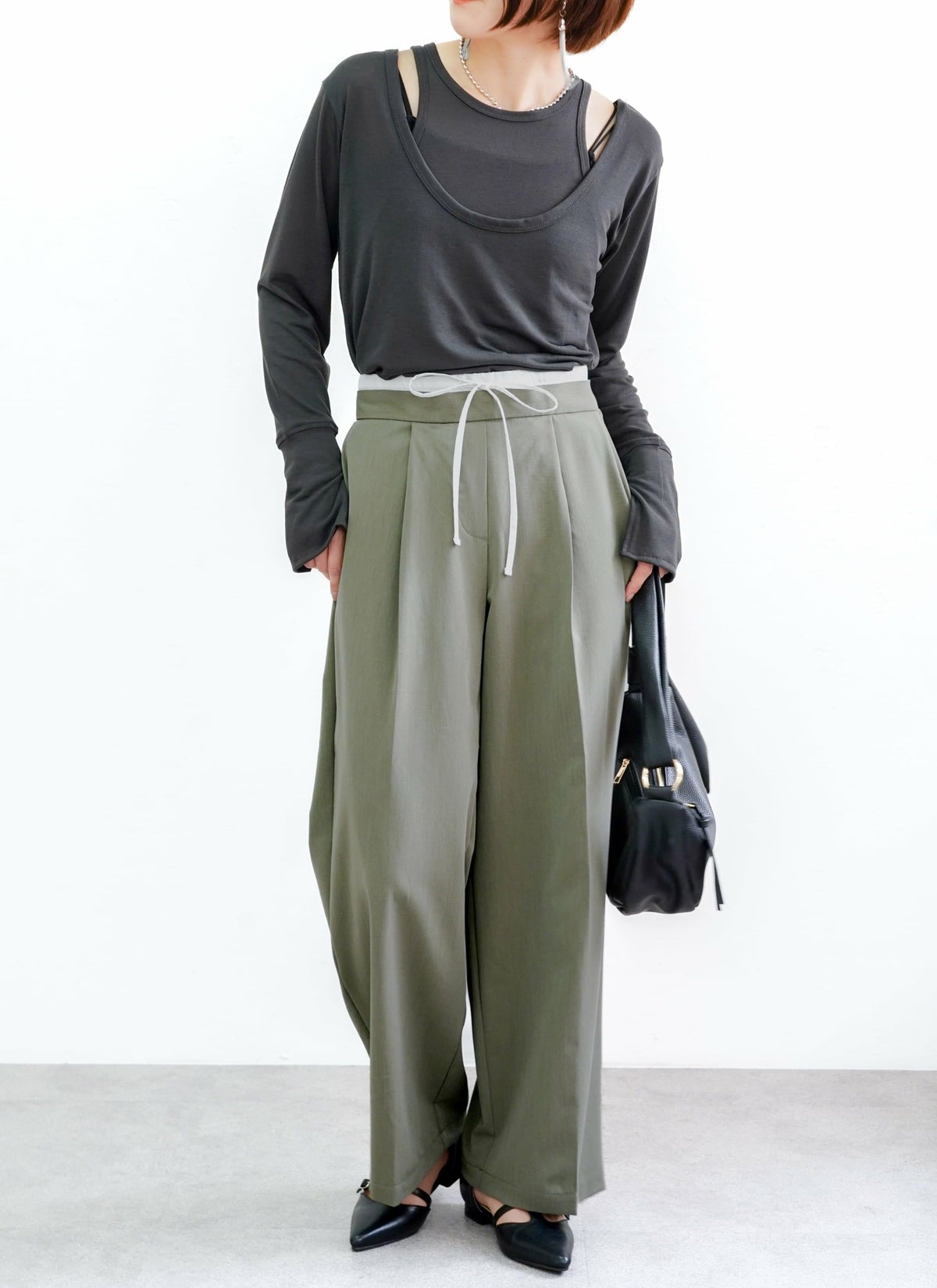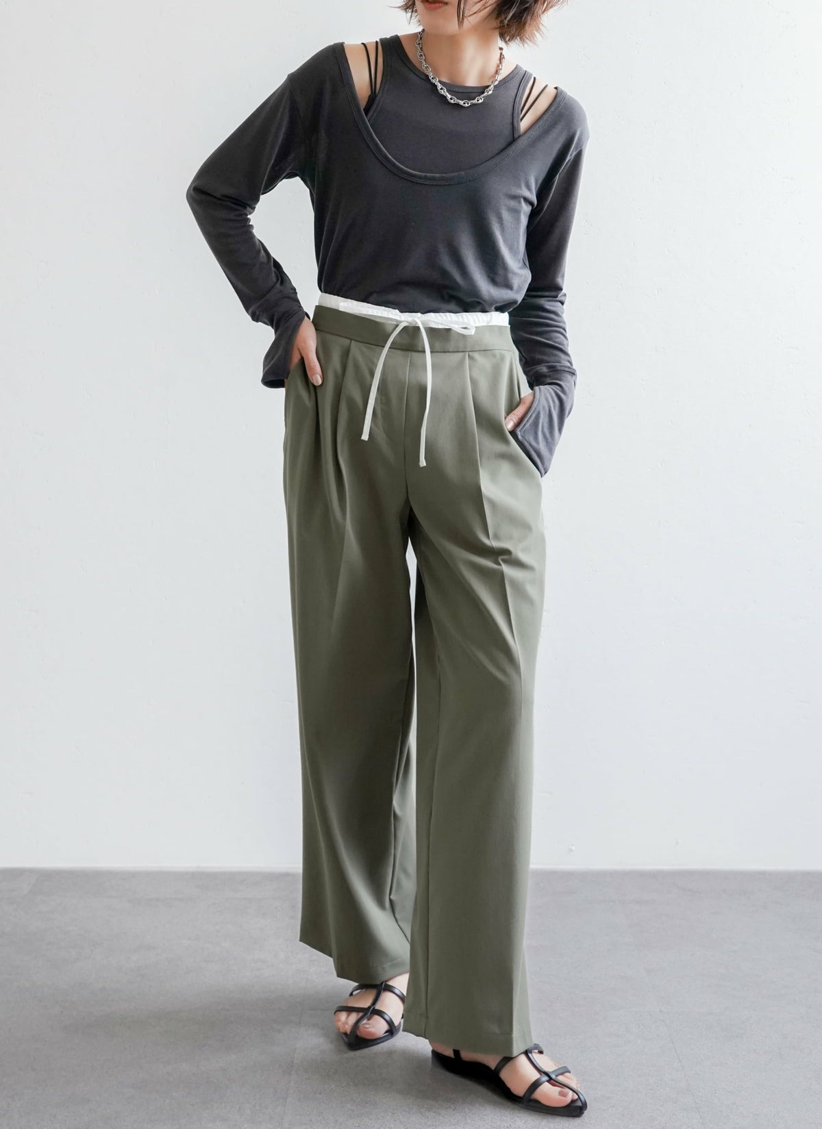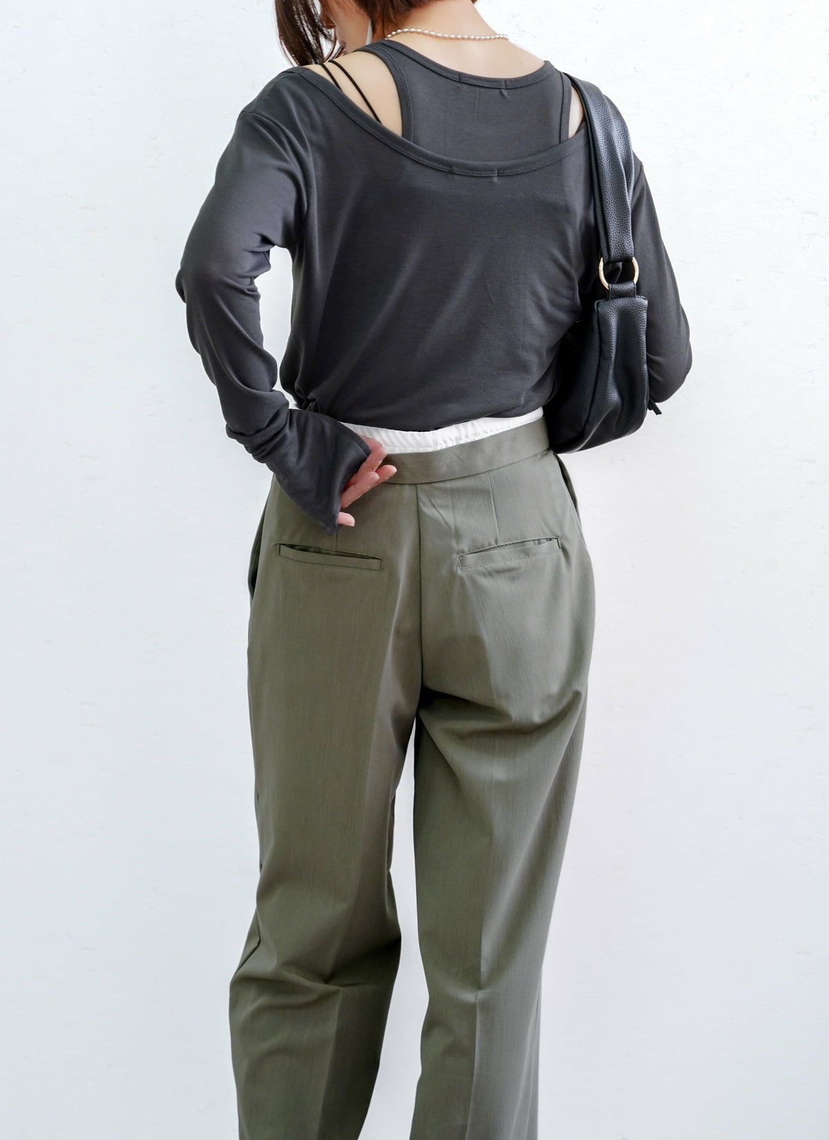 revoam【ダブルウエストデザインがトレンドライクなスラックスパンツ】 【15%OFF】ツイルダブルウエストパンツ