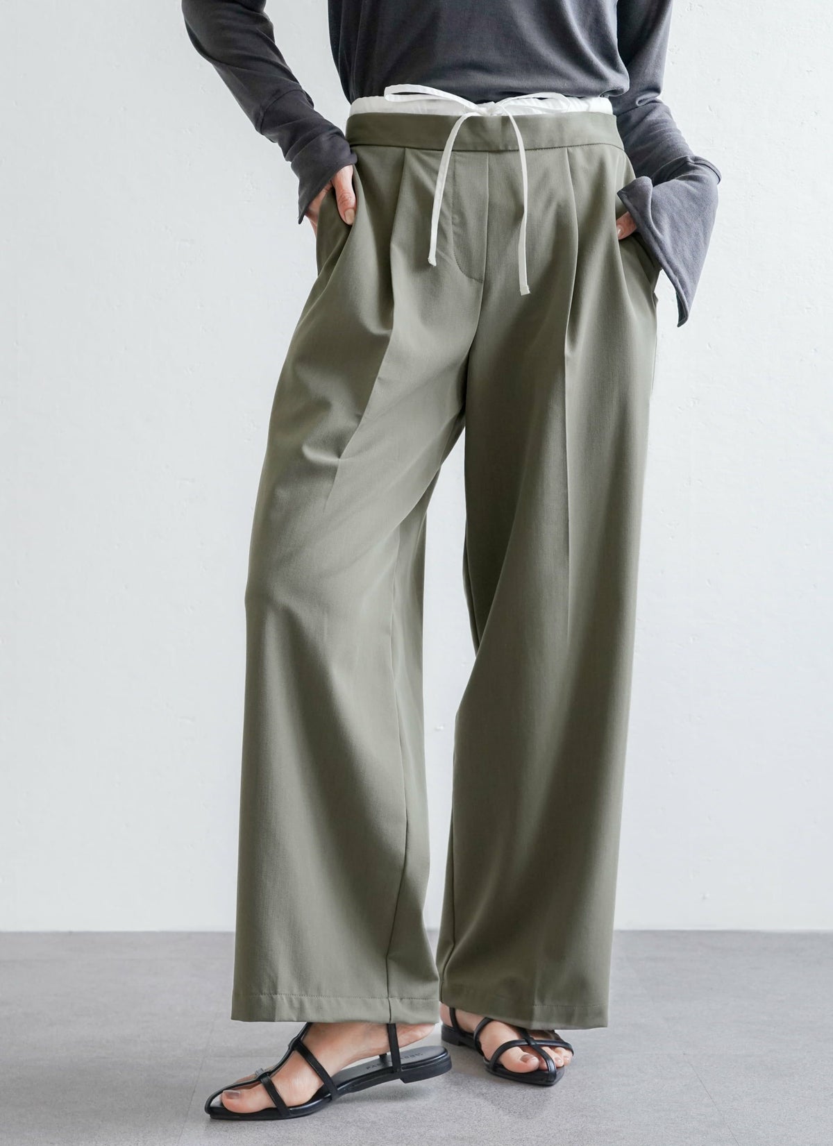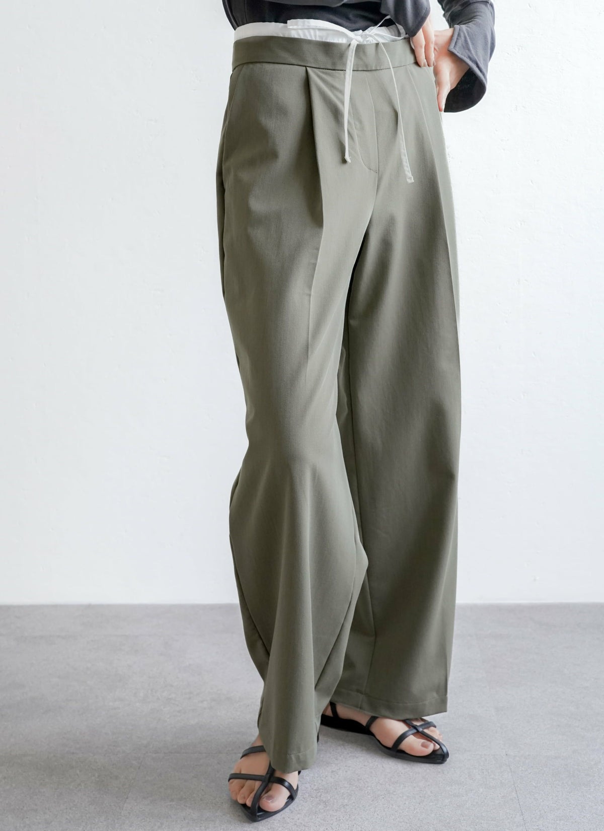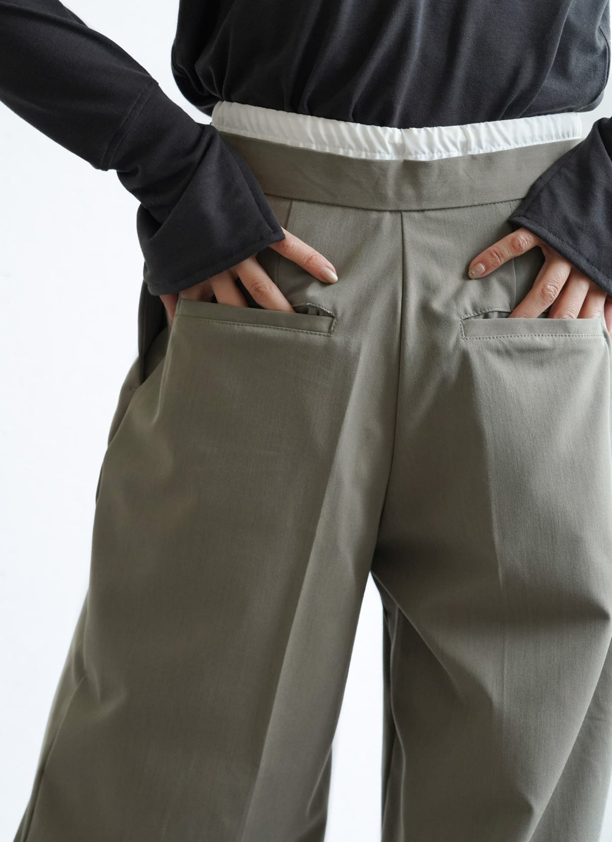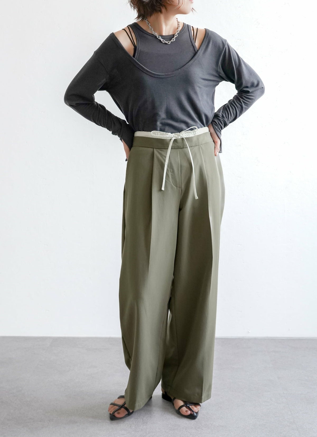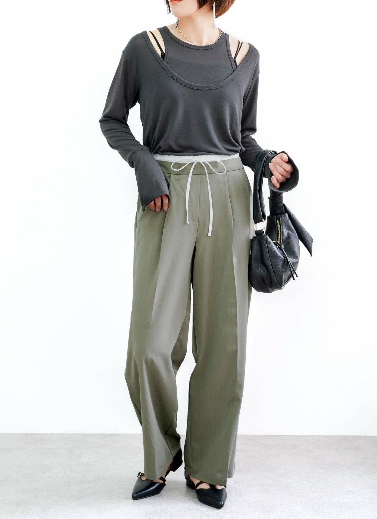 revoam【ダブルウエストデザインがトレンドライクなスラックスパンツ】 【15%OFF】ツイルダブルウエストパンツ