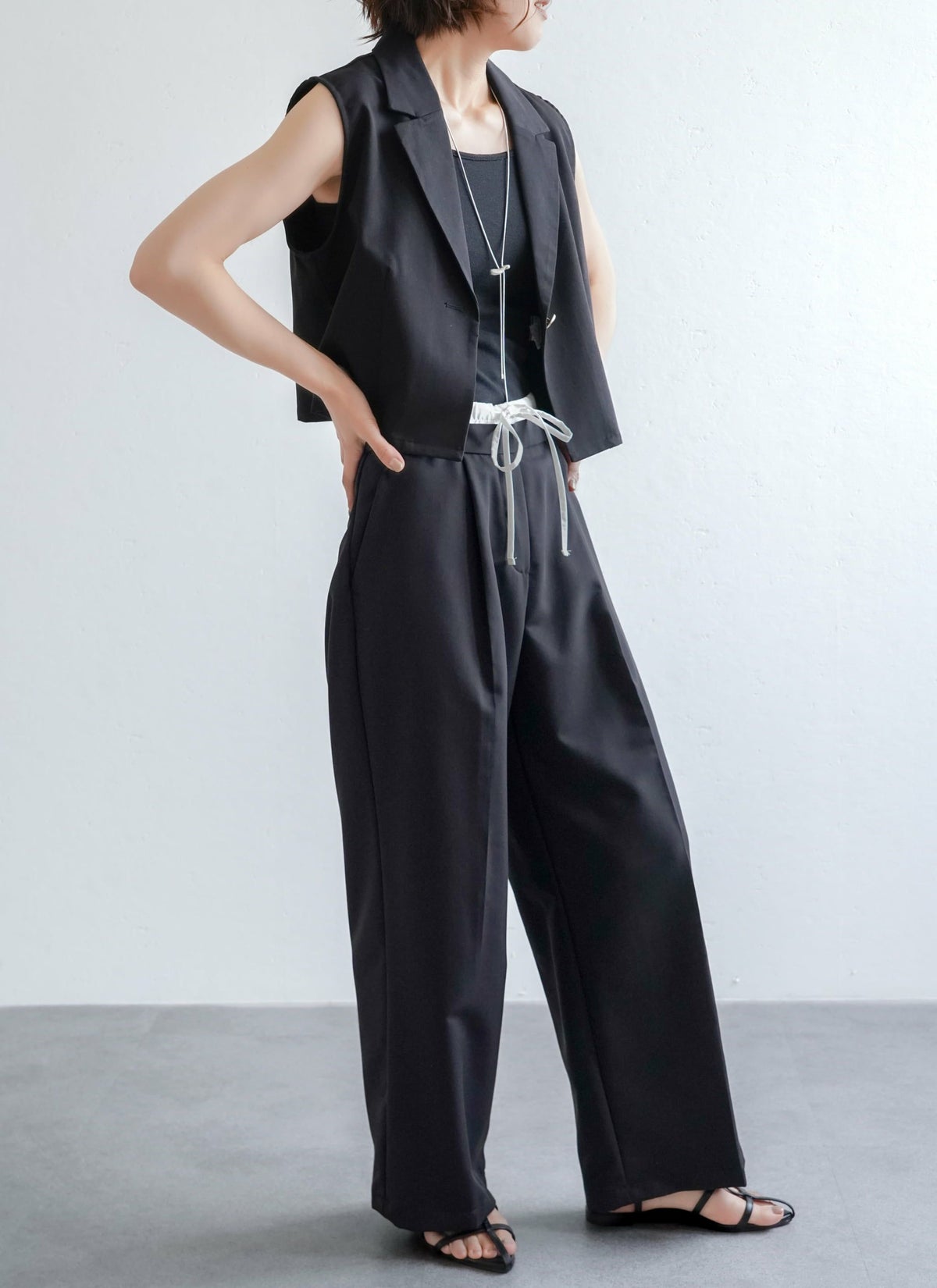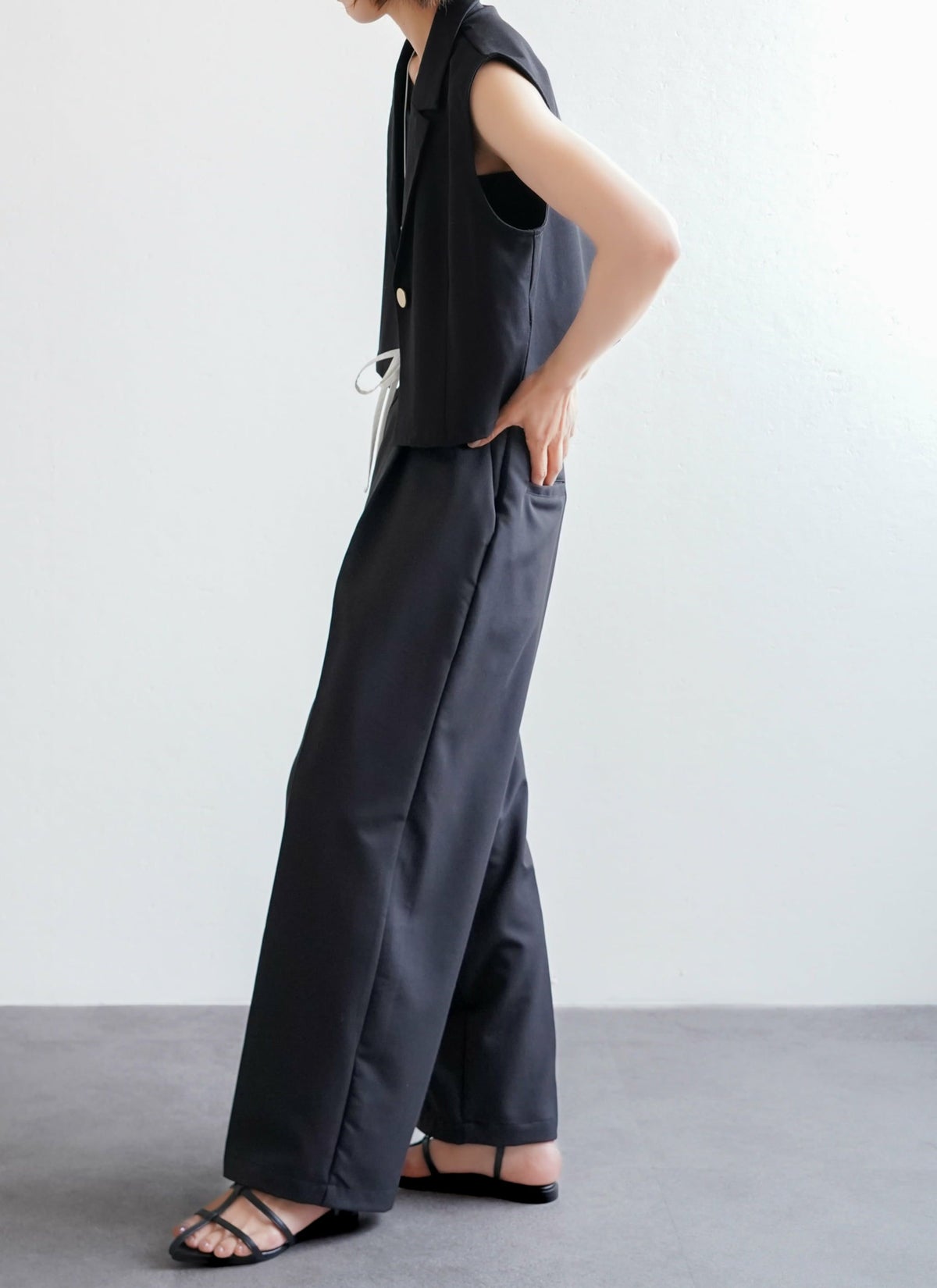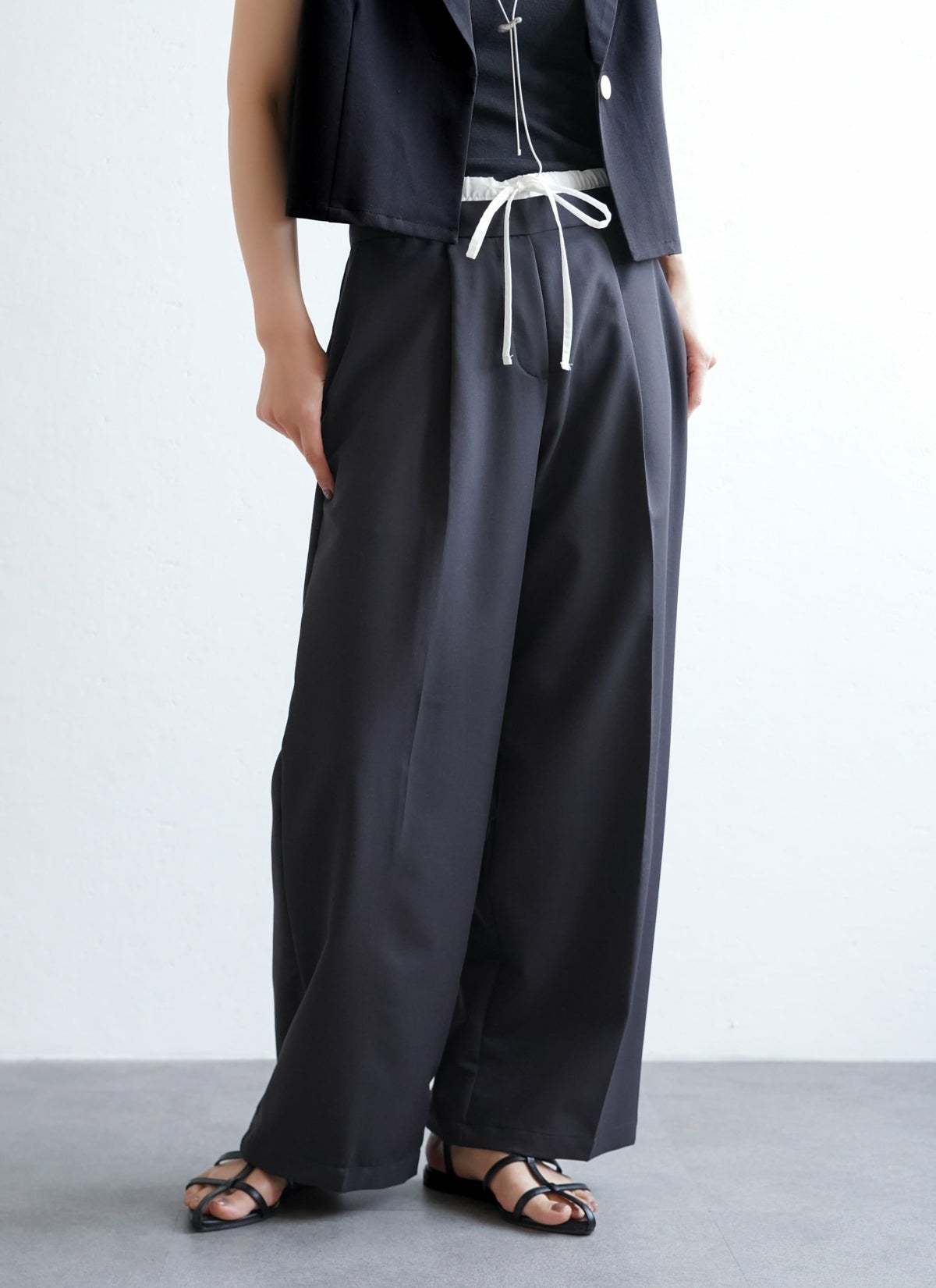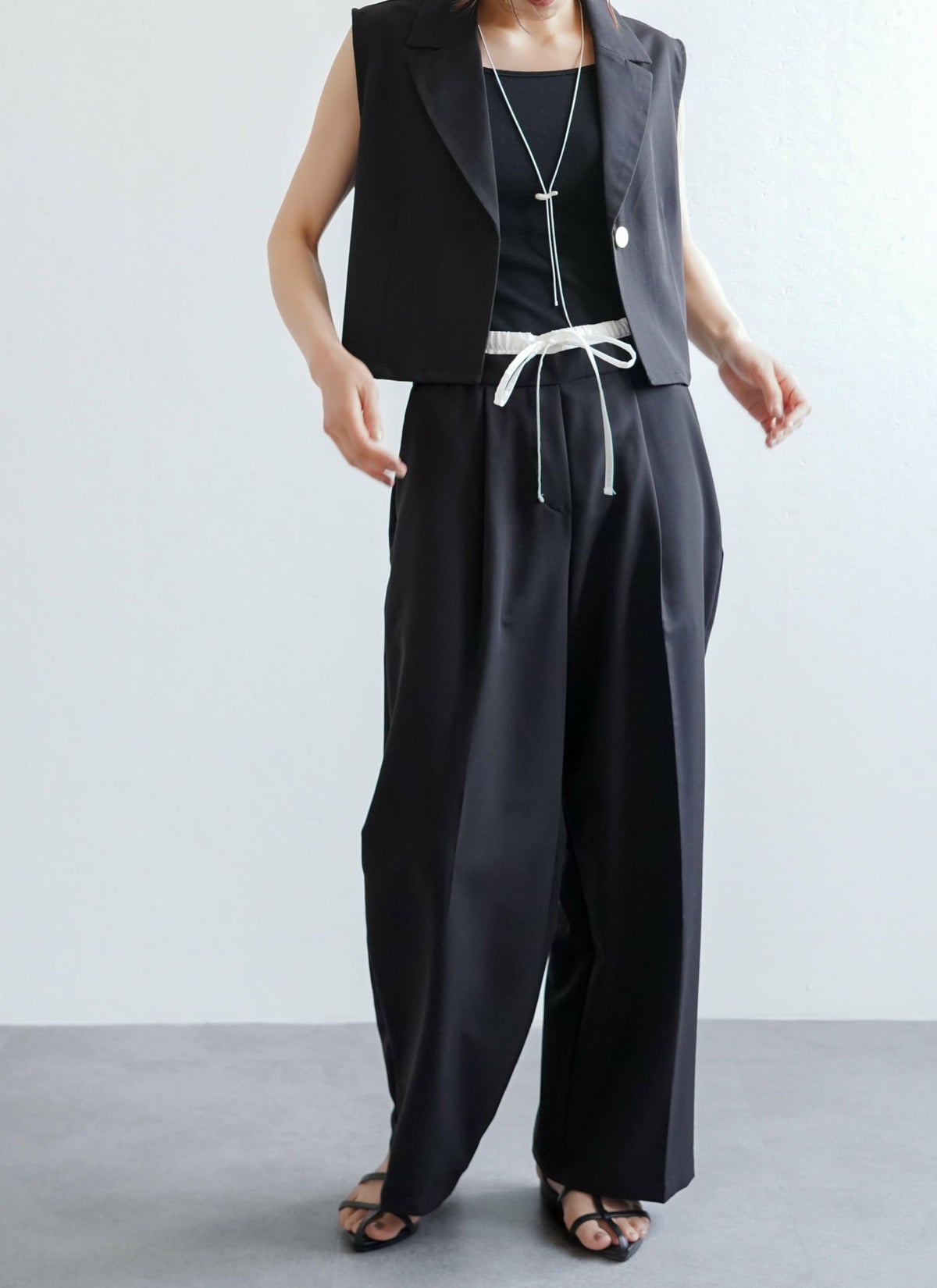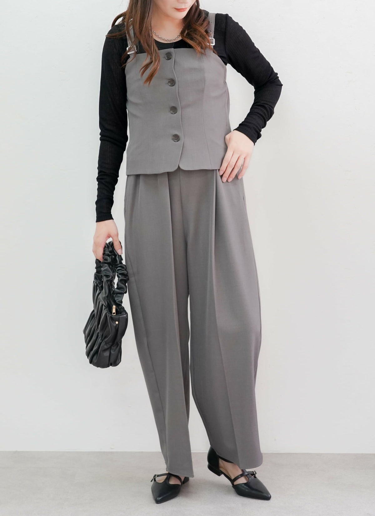 revoam【ダブルウエストデザインがトレンドライクなスラックスパンツ】 【15%OFF】ツイルダブルウエストパンツ
