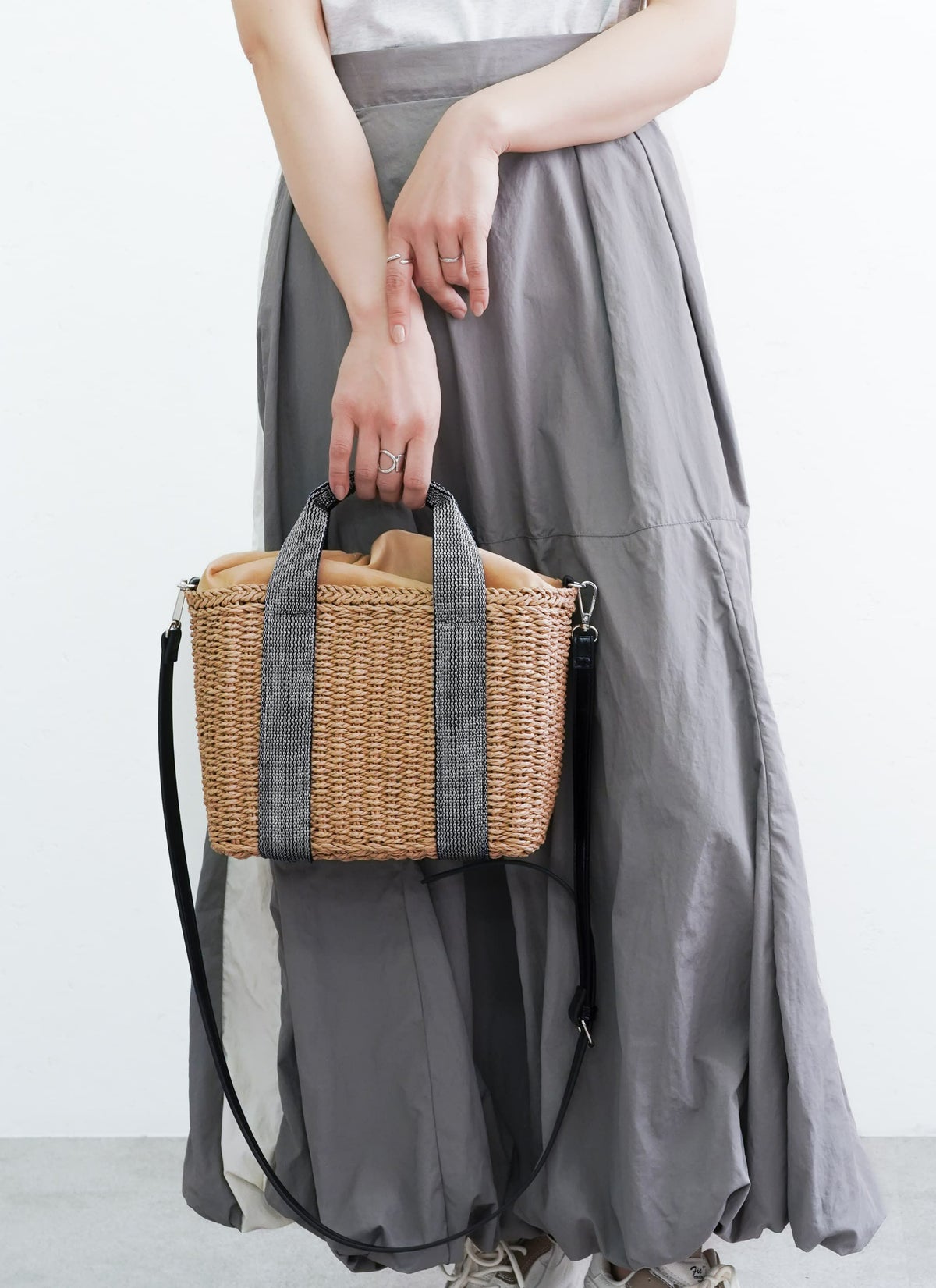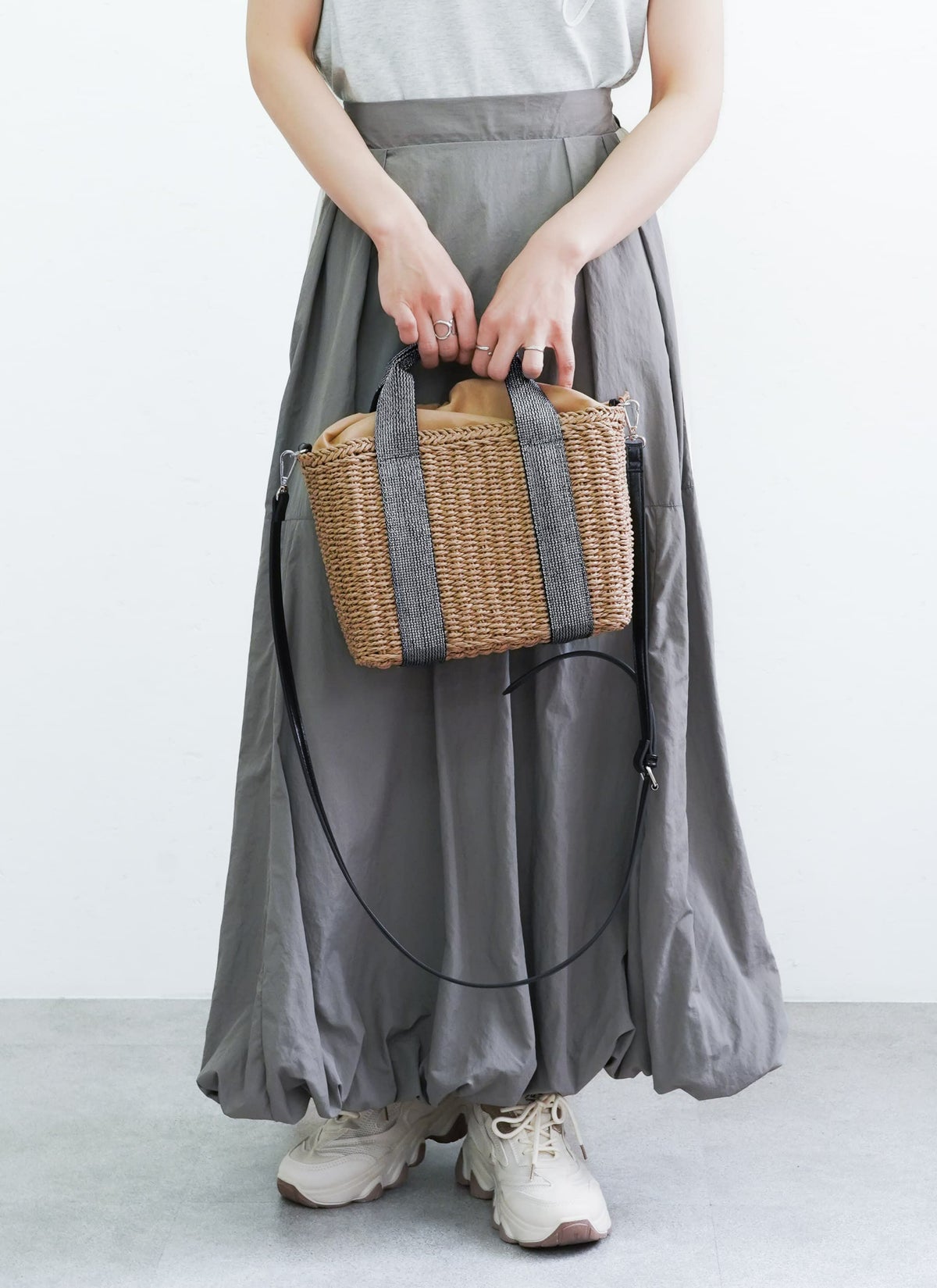 revoam【ラメテープが高見え効果抜群のカゴバッグ】 【10%OFF】雑材2wayラメテープスクエアショルダー