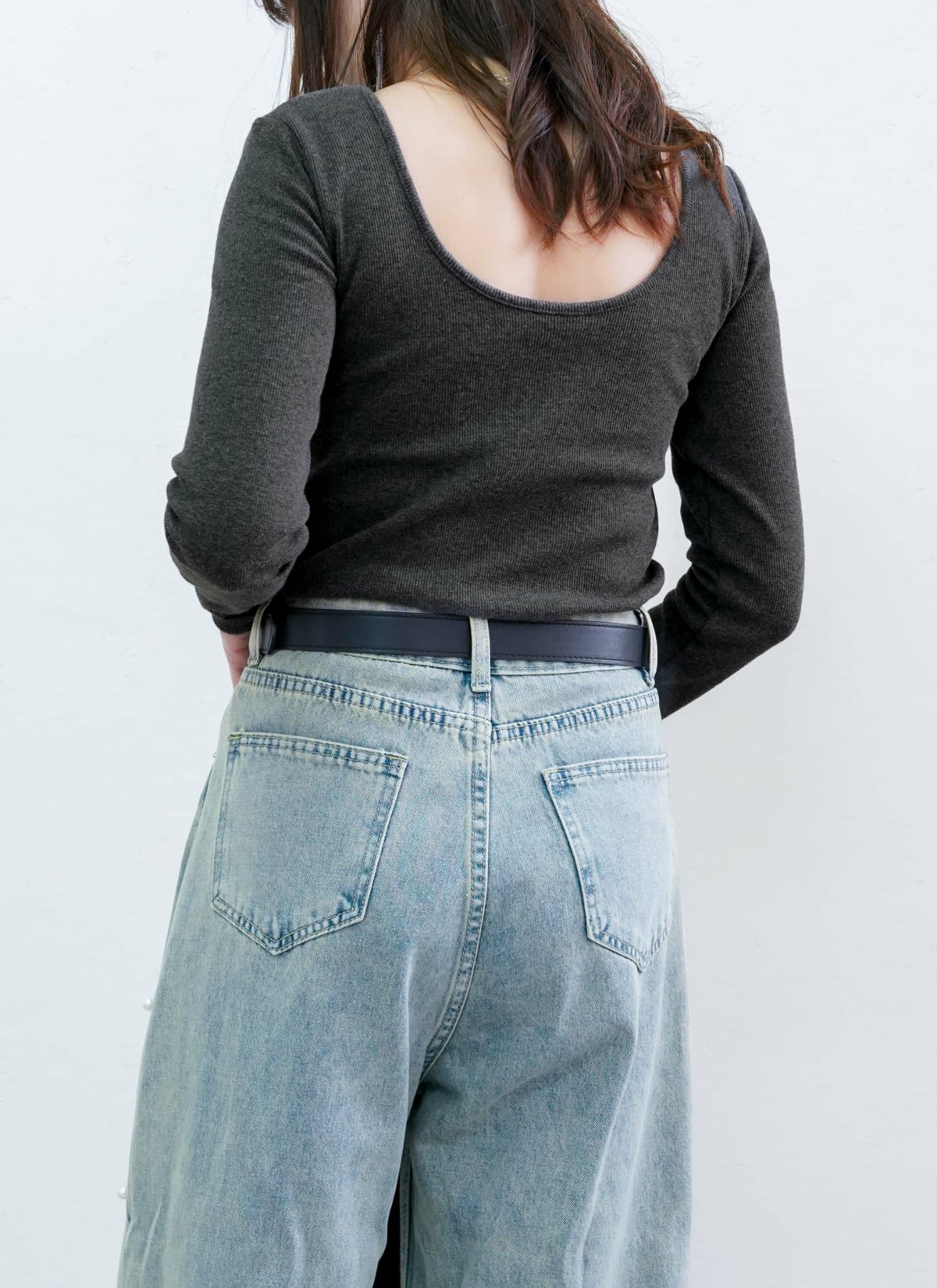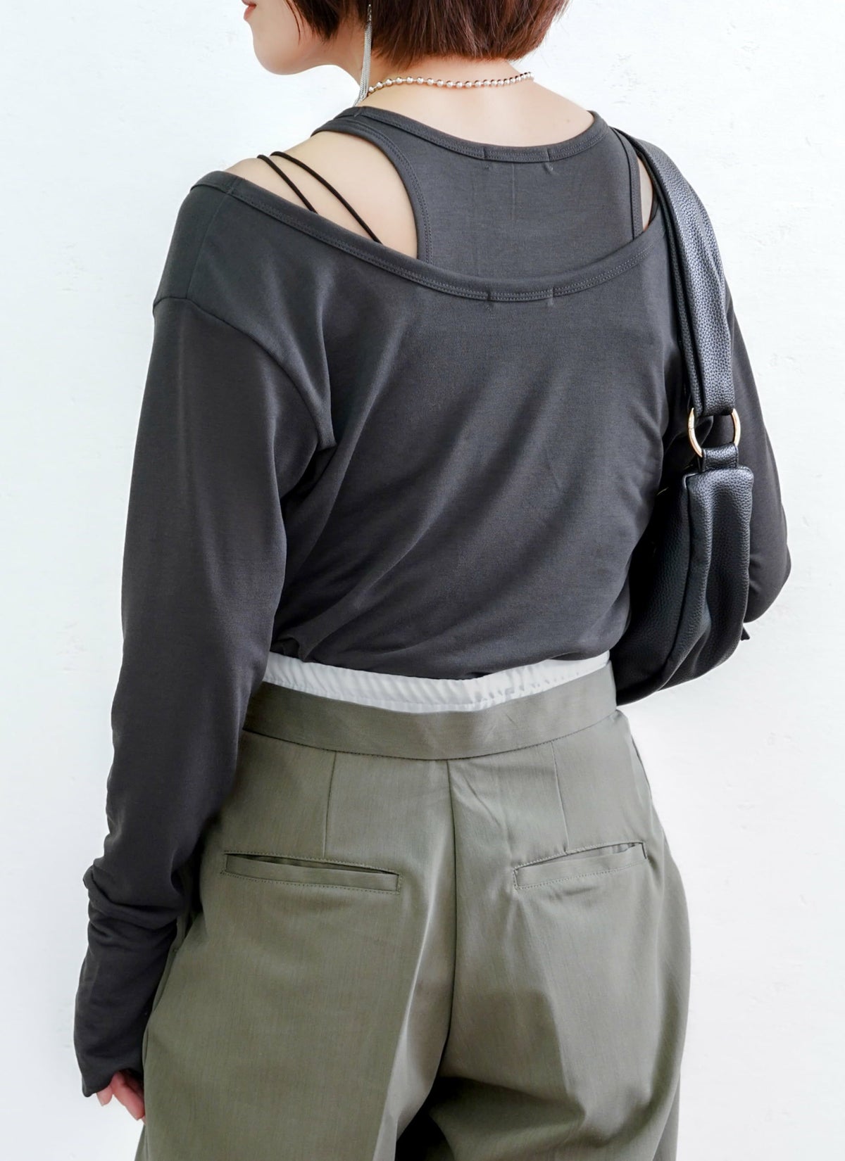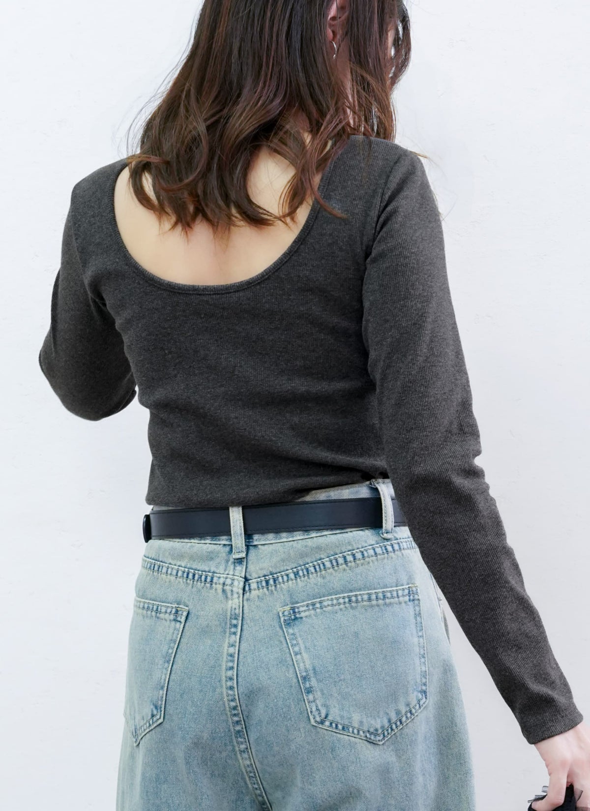 revoam【1枚でコーデが決まる、ラクしておしゃれなカップ付トップス。】 【20%OFF】バックオープンカップ付き長袖プルオーバー
