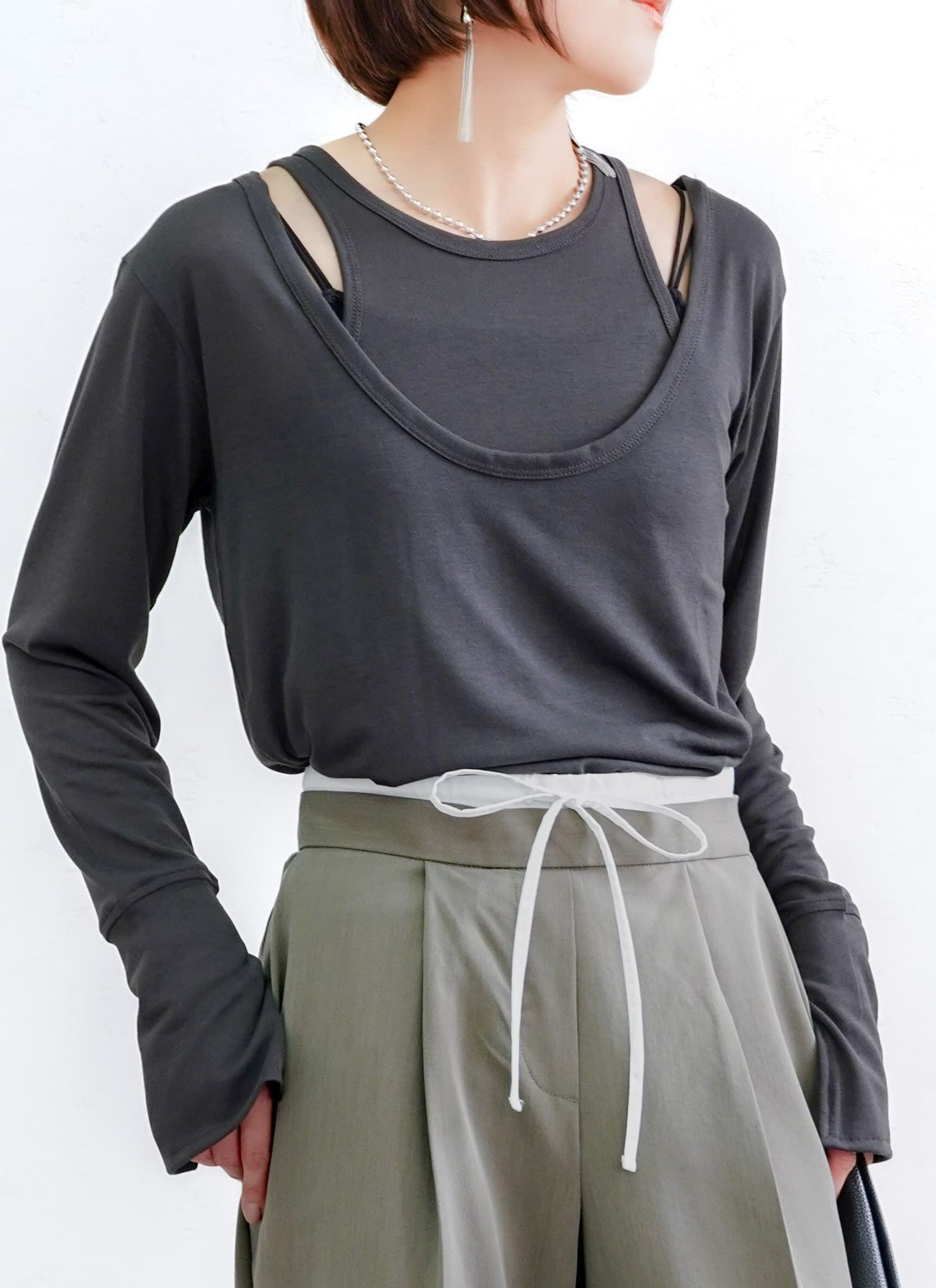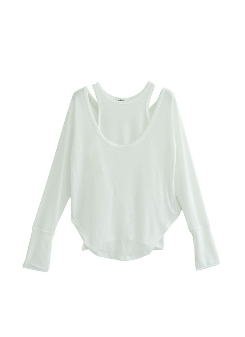 revoam【セットでトレンド感のあるレイヤードスタイルが完成するトップス】 【20%OFF】UネックタンクレイヤードTee